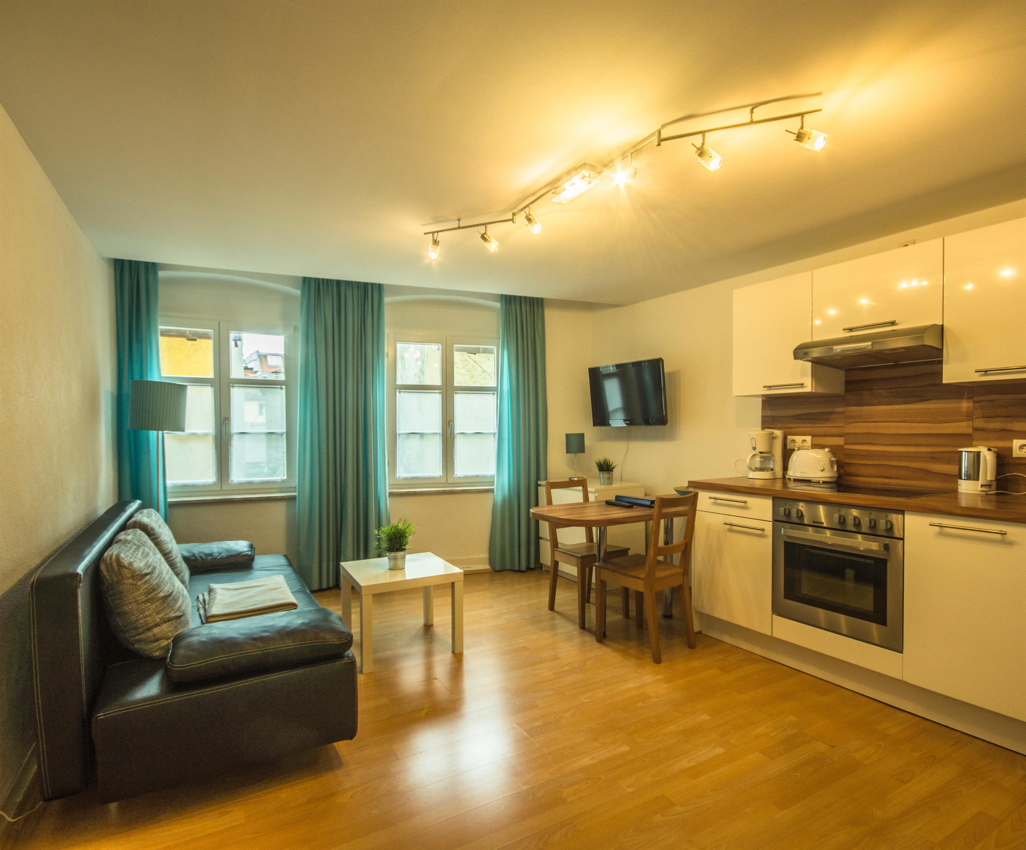 Fühlen Sie sich eingeladen, in der voll ausgestatteten Wohnküche gemütlich zu sitzen, zu kochen und zu genießen.
