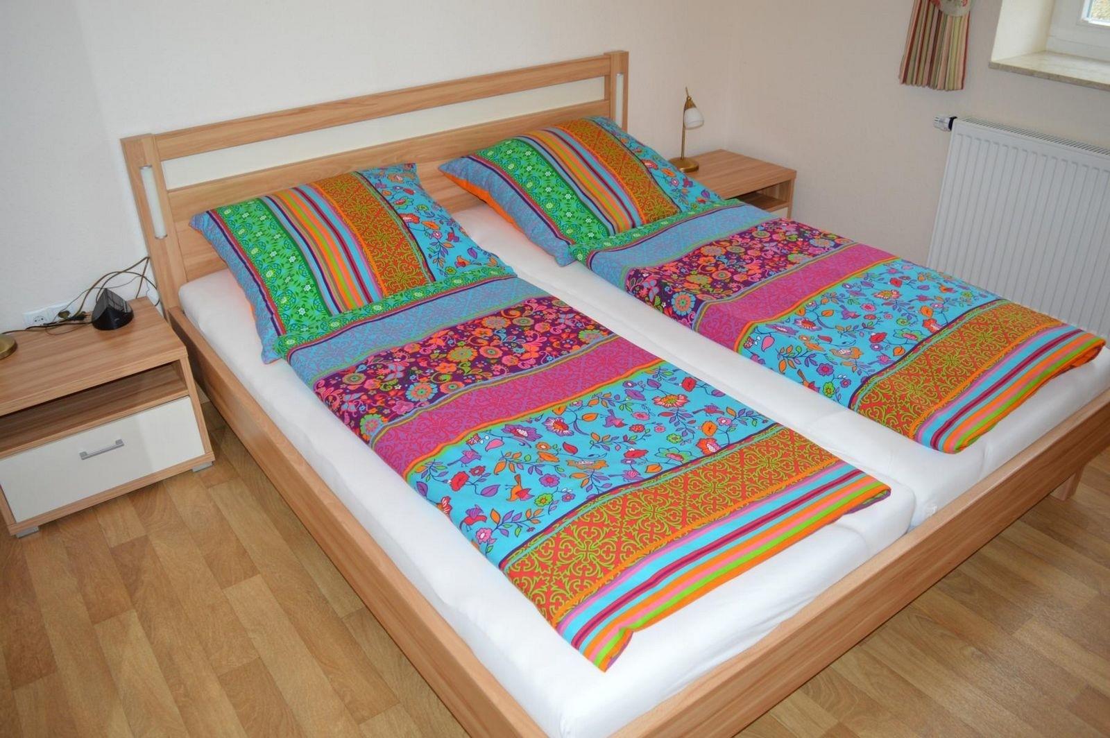 Das erste Schlafzimmer ist zur Terrasse hin ausgerichtet - mit Blick auf den idyllischen Garten. Das zweite Schlafzimmer ist mit den beiden Fenstern besonders hell und wie Schlafzimmer 1 mit einem Doppelbett und einem Kleiderschrank ausgestattet. Von diesem Schlafzimmer aus haben Sie einen herrlichen Blick auf die weitläufige Landschaft und den Sonnenaufgang bzw. Untergang. Ein Kinderbett mit dazugehöriger Ausstattung (Matratze, Bettdecke, Bettwäsche) ist vorhanden und kann auf Wunsch kostenlos dazu gestellt werden. Auch eine Babybadewanne sowie ein Babyphone stehen zur Verfügung. Zusätzliche Decken und Kopfkissen sind vorhanden bzw. können gestellt werden. In einem der Schlafzimmer haben Sie auch die Möglichkeit, Ihre Wertsachen in einem Safe sicher zu verwahren.