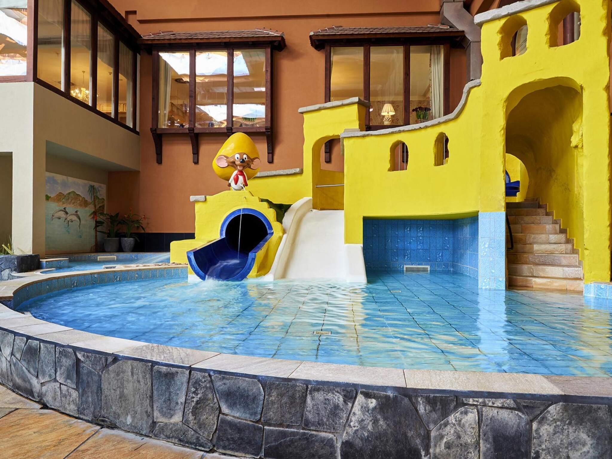 Aktiviteter i nærheden: Når det kommer til sport, er du forkælet med valg her, da der er mange indendørs og udendørs aktiviteter: fra tennis- og fodboldbaner til squashbaner, bowlingcenter, dart, petanque, minigolf, ridefaciliteter, fiskedam (mod betaling) og cykeludlejning, til badminton, bordtennis og et trampolinanlæg. Tag en tur med hestevogn eller dyk ned i badesøen med strand (1 kilometer væk). Hotellets egen golfbane, som du får greenfee-rabat på, ligger kun 6 kilometer væk. Resortet byder også på en westernby med en tipi-indianerlandsby, som med sine sæsonbestemte forestillinger og eventyrlige overnatninger er en rigtig sjov faktor for gæster i alle aldre.