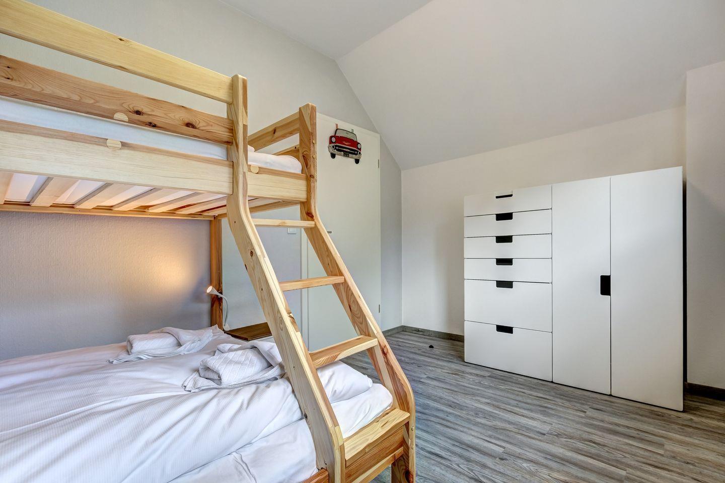 Genießen Sie den lichtdurchfluteten Wohn- und Essbereich mit einer gemütlichen Sitzgruppe, der Ihnen ein besonderes Urlaubsambiente bietet. Direkter Zugang zur Terrasse ermöglicht entspannte Momente im Freien. Die separate, modern und vollausgestattete Küche lässt keine Wünsche offen. Zwei vollwertige Schlafzimmer sorgen für erholsame Nächte: das erste mit komfortablem Doppelbett und das zweite mit einem Hochbett für drei Personen.