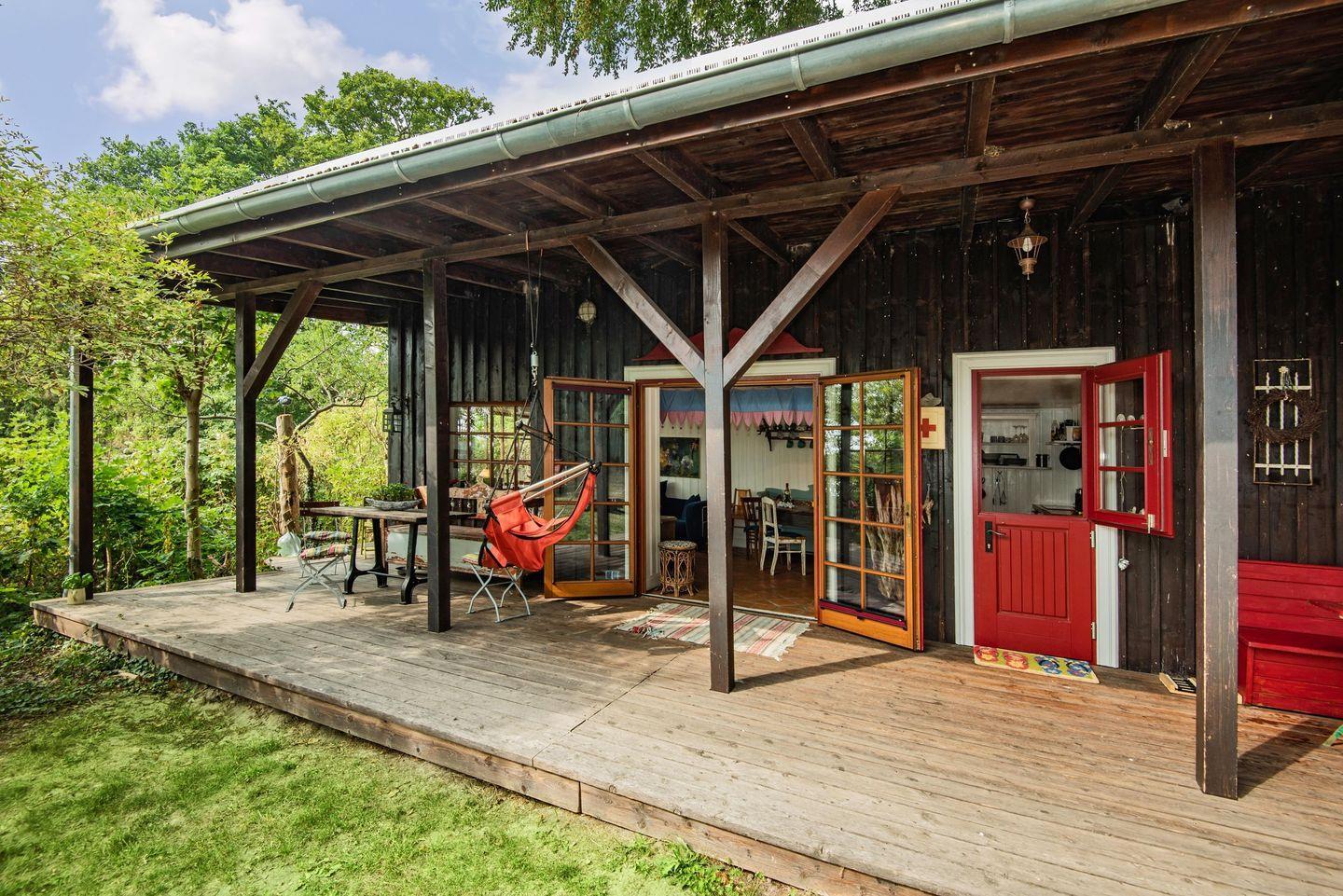 Ideal für Familien! Südexponiert mit Blick auf den Kölpinsee liegt verborgen und phantasieumwoben ein ganz eigenes Ferienhaus. Im Herzen wärmt ein Lehmofen, dessen Feuer den kältesten Oststürmen trotzt. Es gibt die Wahl: Einschlafen unter dem Wagenhimmel oder Aufwachen mit Blick auf den See. Eine Wohltat bei Hitze oder Sommerregen: eine große überdachte Holzterrasse mit mehreren Sitznischen.