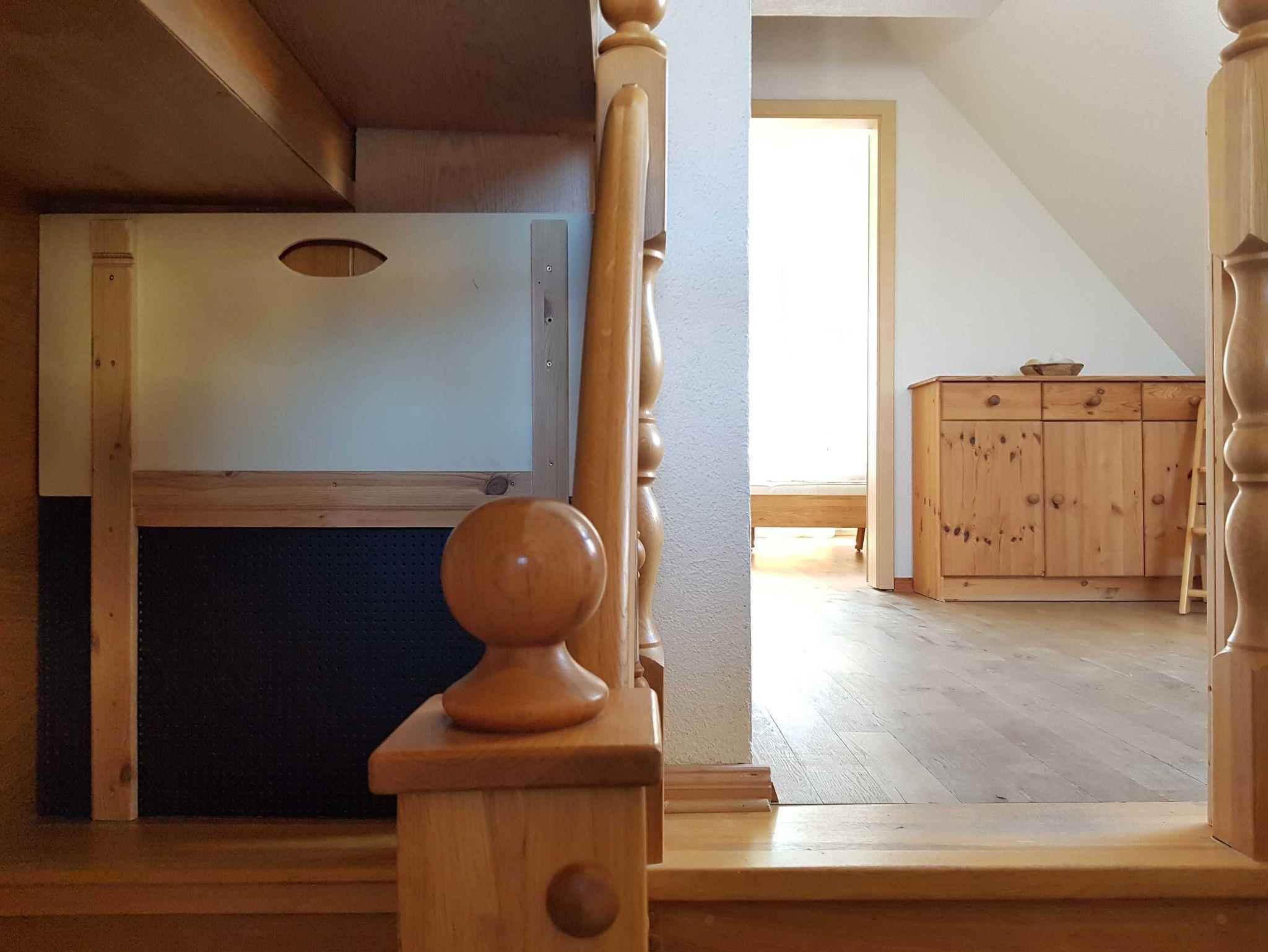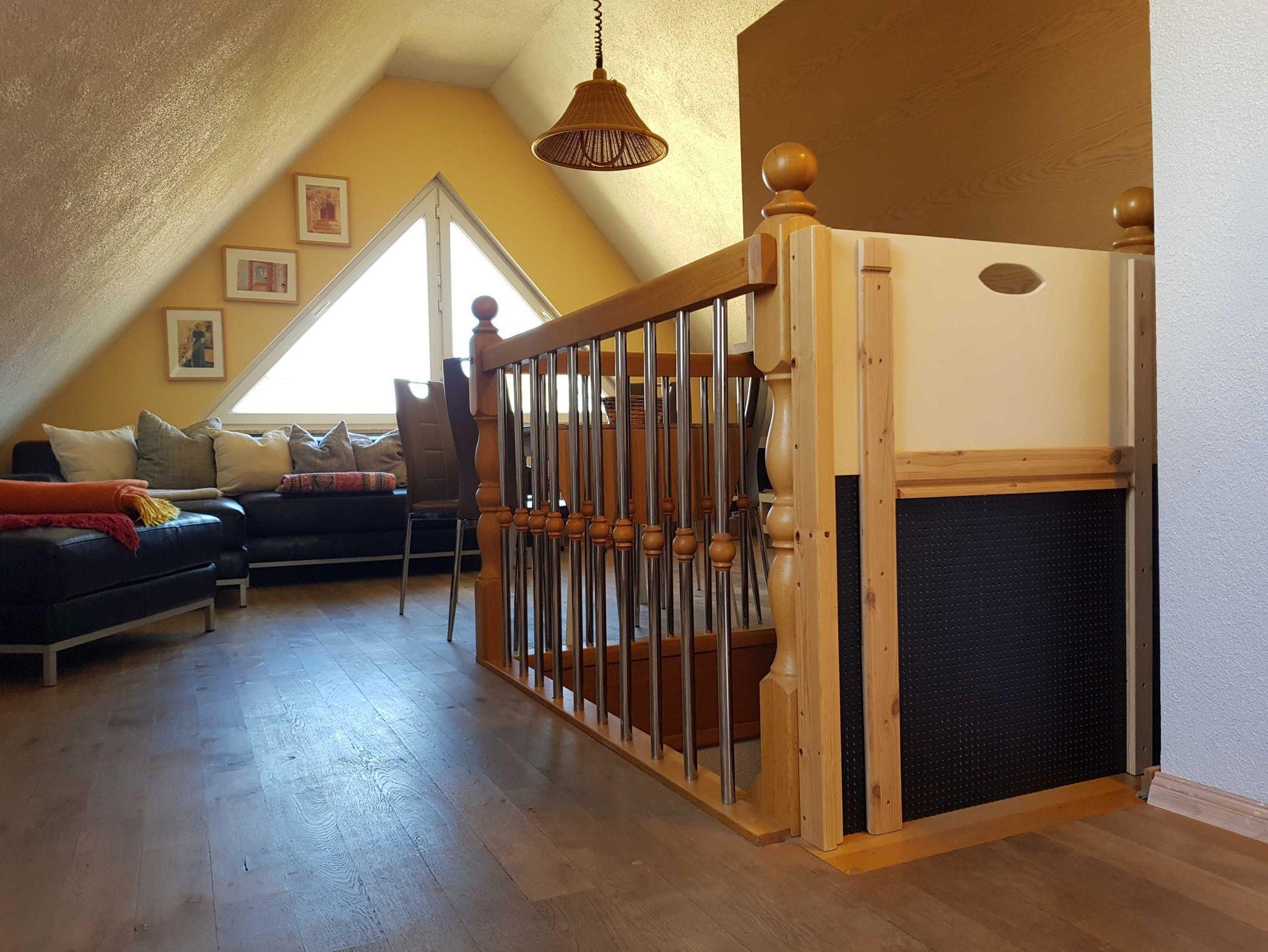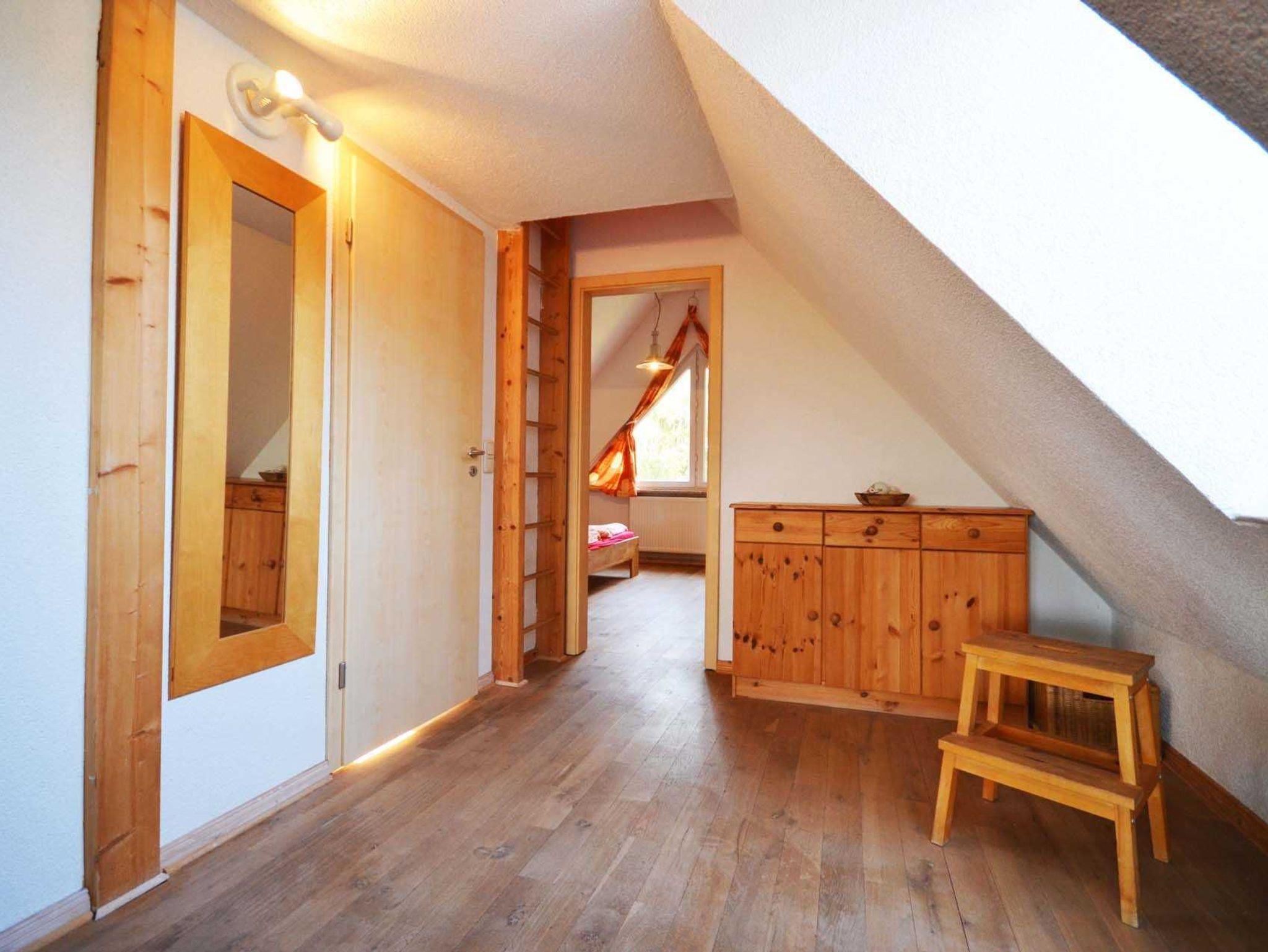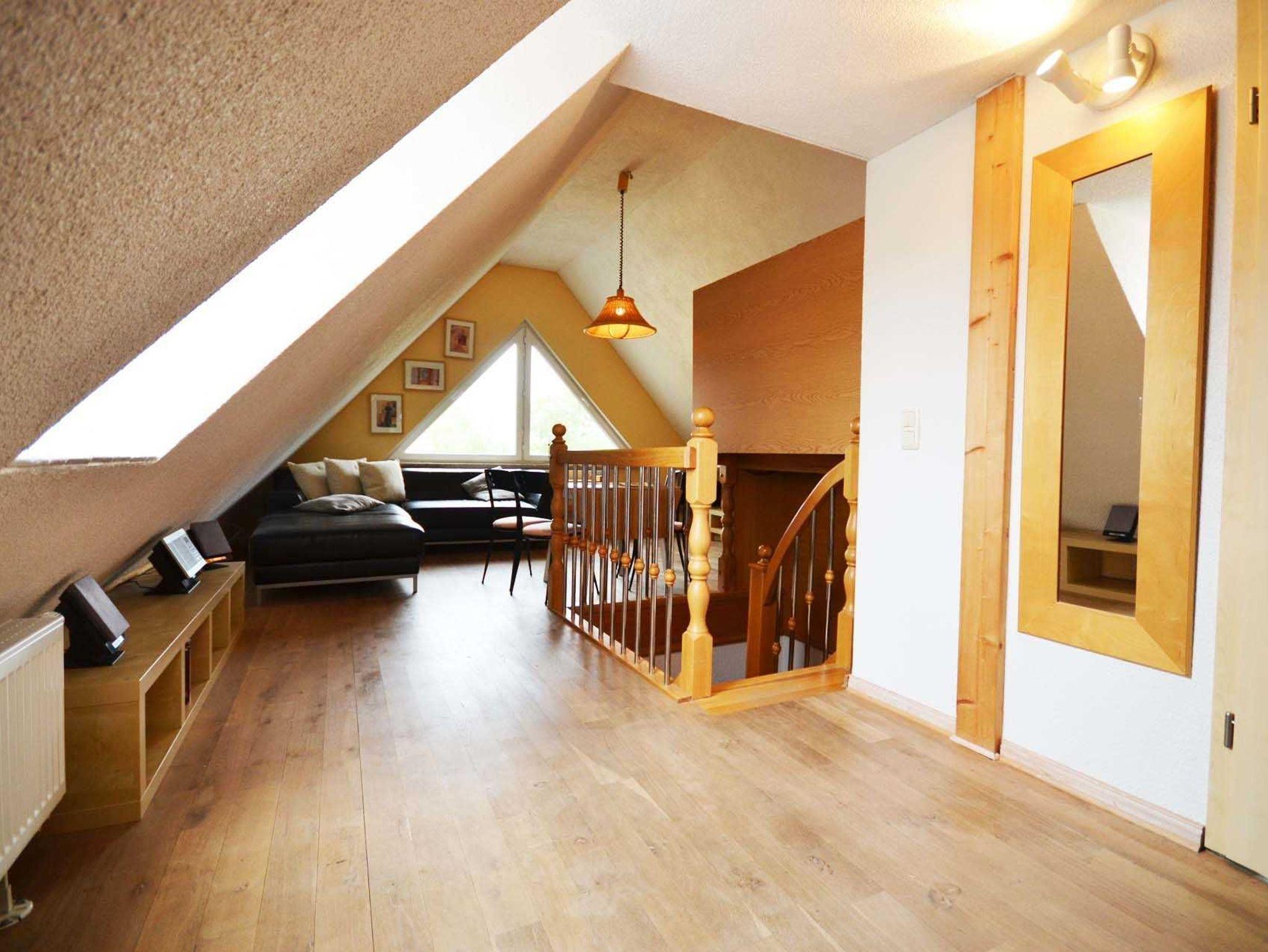 • Der Hauseingang führt Sie direkt in das Dachgeschoss (Wendeltreppe) mit großen Fenstern mit Wald- und Gartenblick.