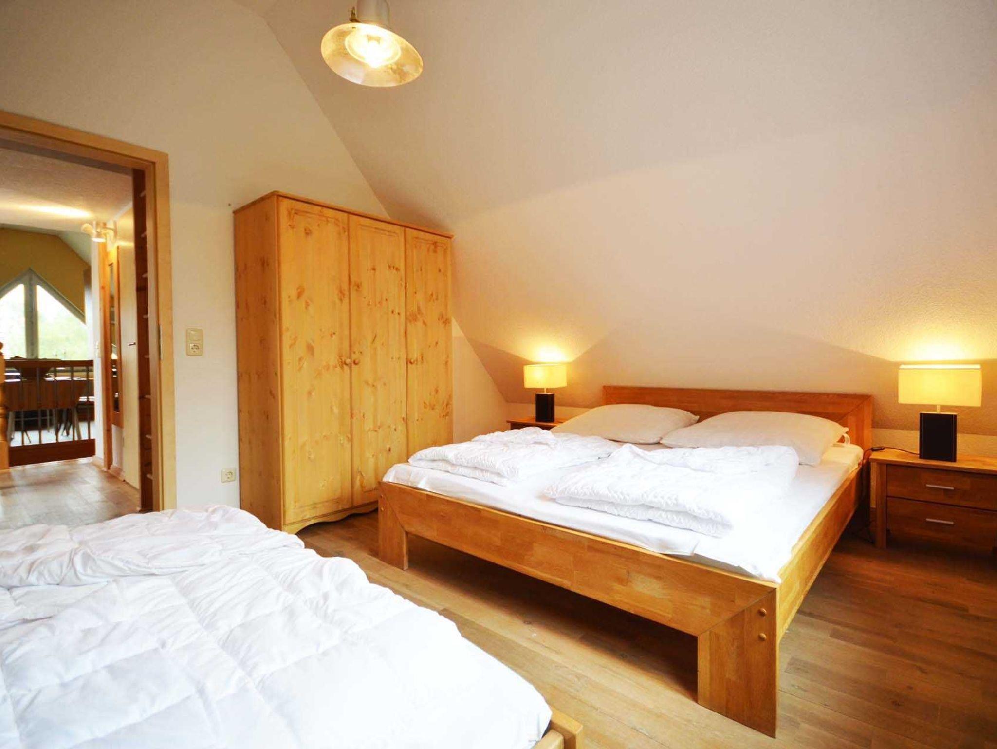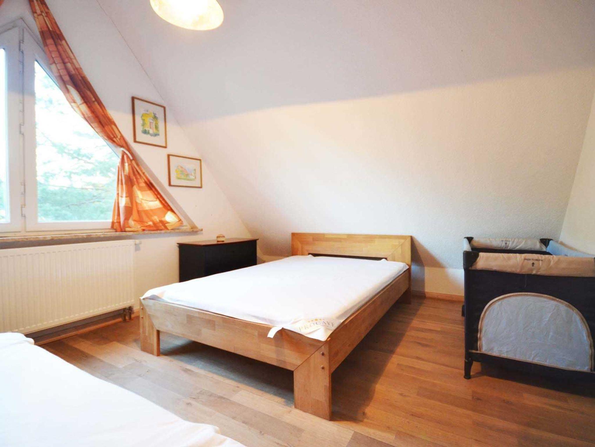 • Das Schlafzimmer verfügt über zwei Doppelbetten mit einer Größe von 160x200 cm und 140x200 cm. Zusätzlich steht darin ein Babybett und ein 3-türiger Kleiderschrank.