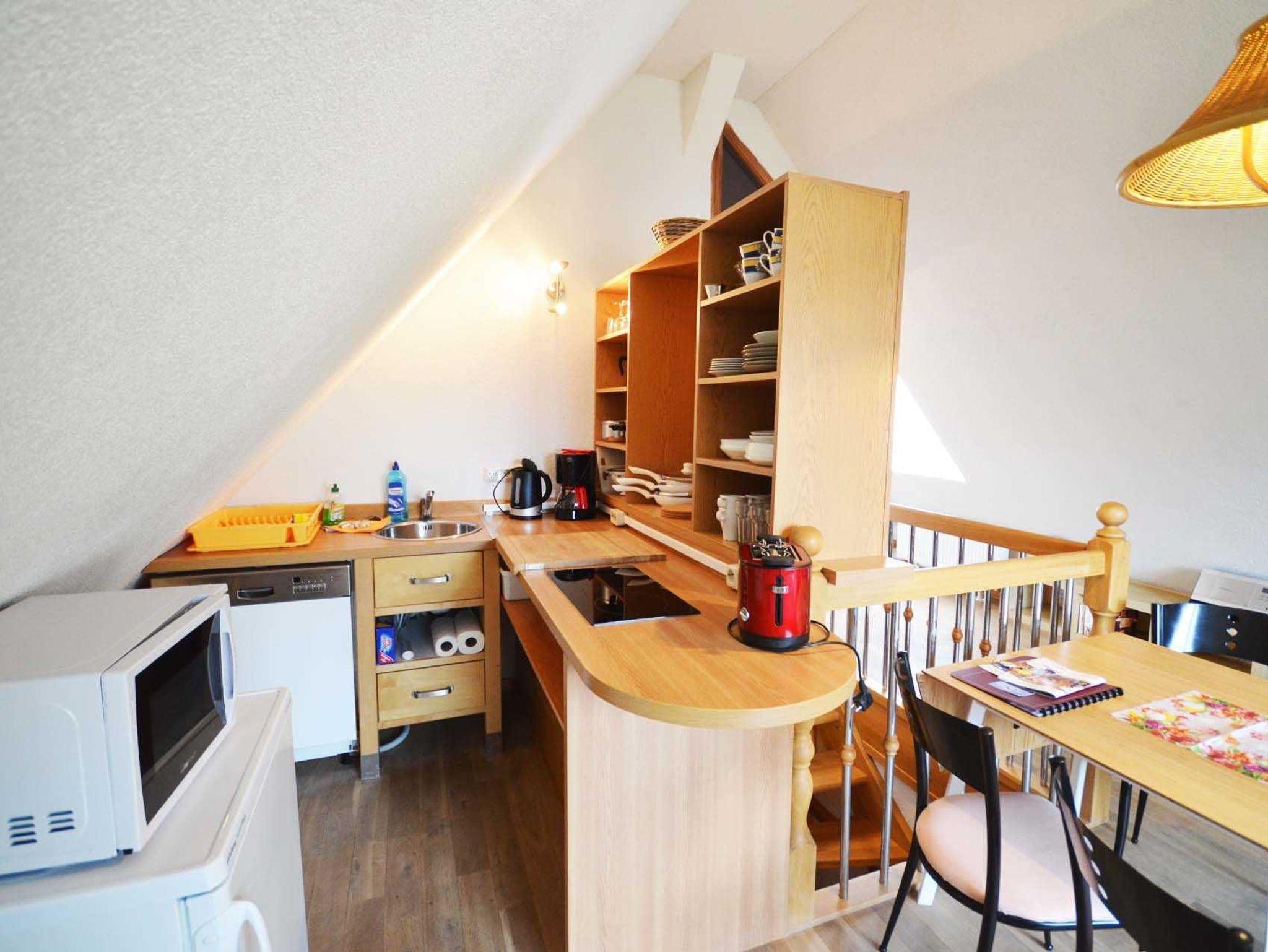 • Küche inkl. Spülmaschine, 2 Kochplatten (Ceranfelder), Kühlschrank mit Eisfach, Wasserkocher, Kaffeemaschine, Toaster, Esstischgarnitur mit 4 Stühlen.
