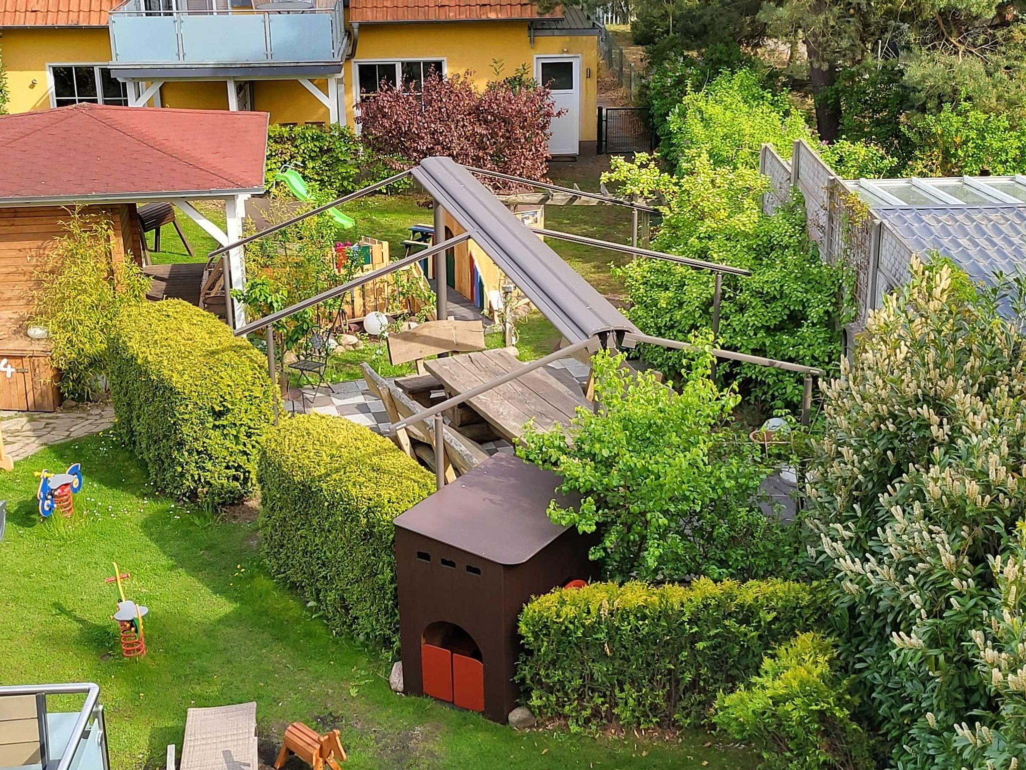 • Garten zur Nutzung mit den vielen Spielsachen, wie der Kinderküche, der Spielhäuser, der Fahrgeräten, über 800 Bücher, über 100 Tischspiele usw., wie auch die Möglichkeit zur Nutzung der Außensauna im Pavillon.