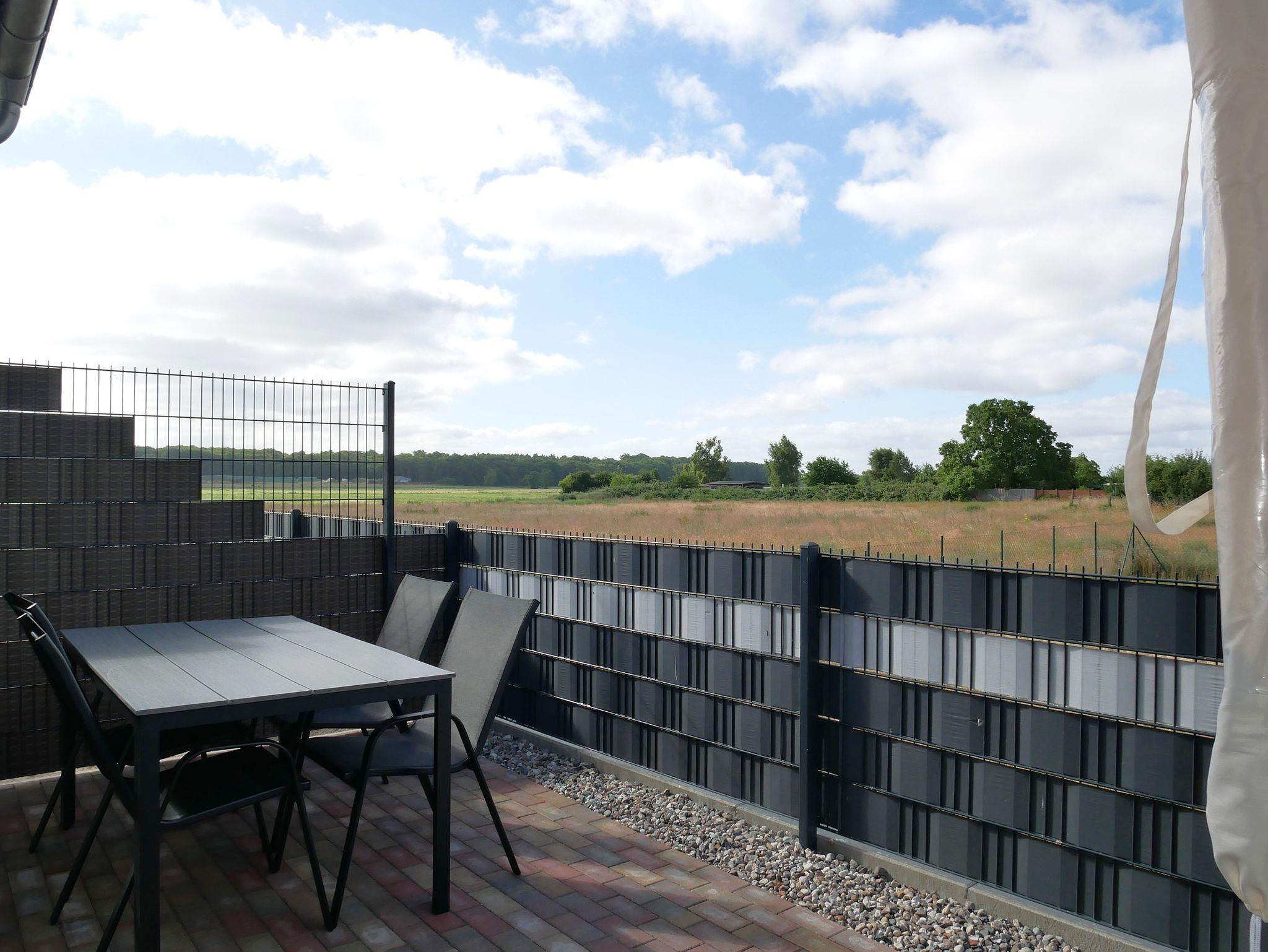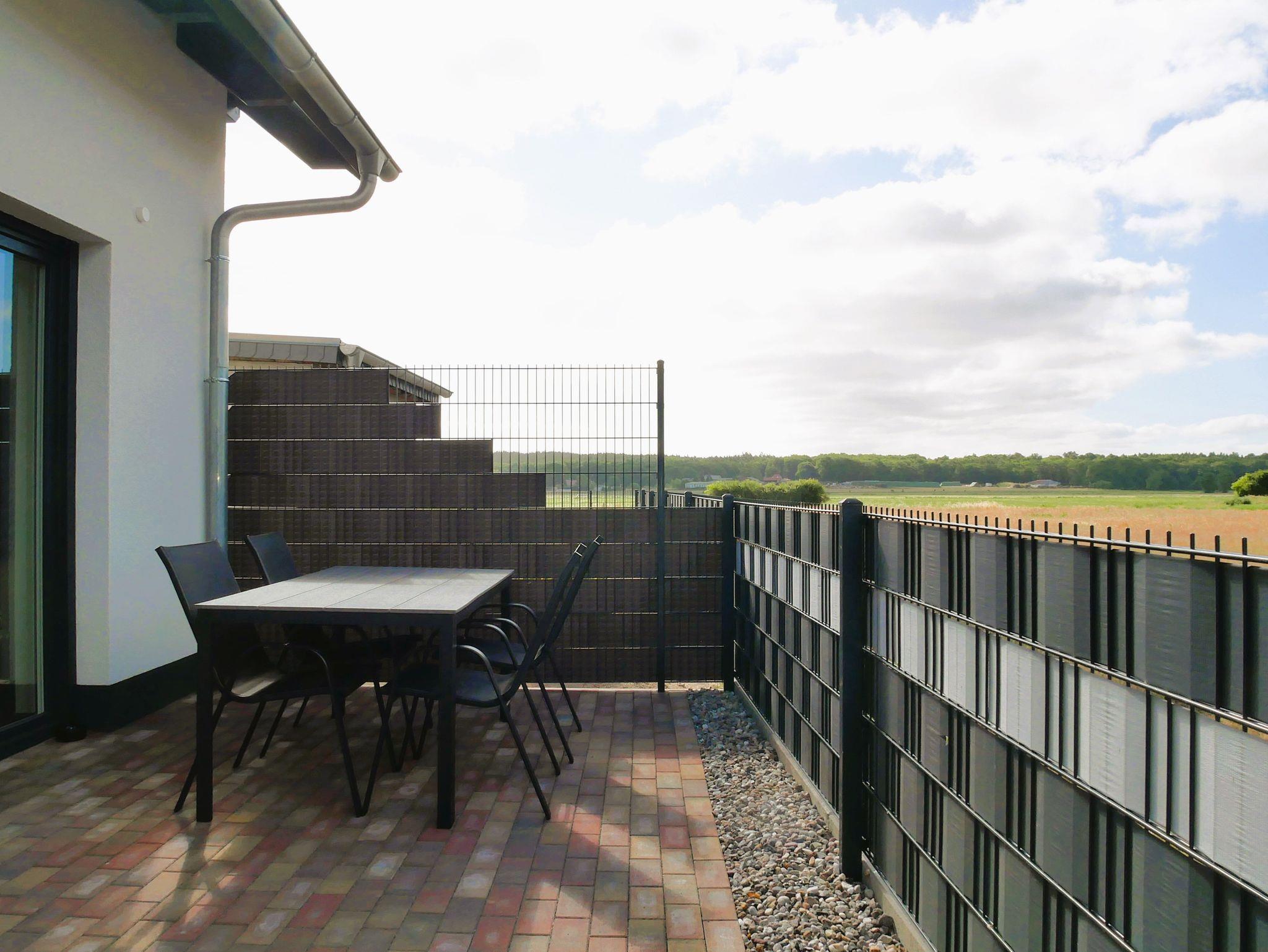Besonderes Highlight ist die voll eingezäunte Terrasse, die mit Gartenmöbeln und einem Sonnenschirm ausgestattet ist ? perfekt für entspannte Stunden an der frischen Luft.