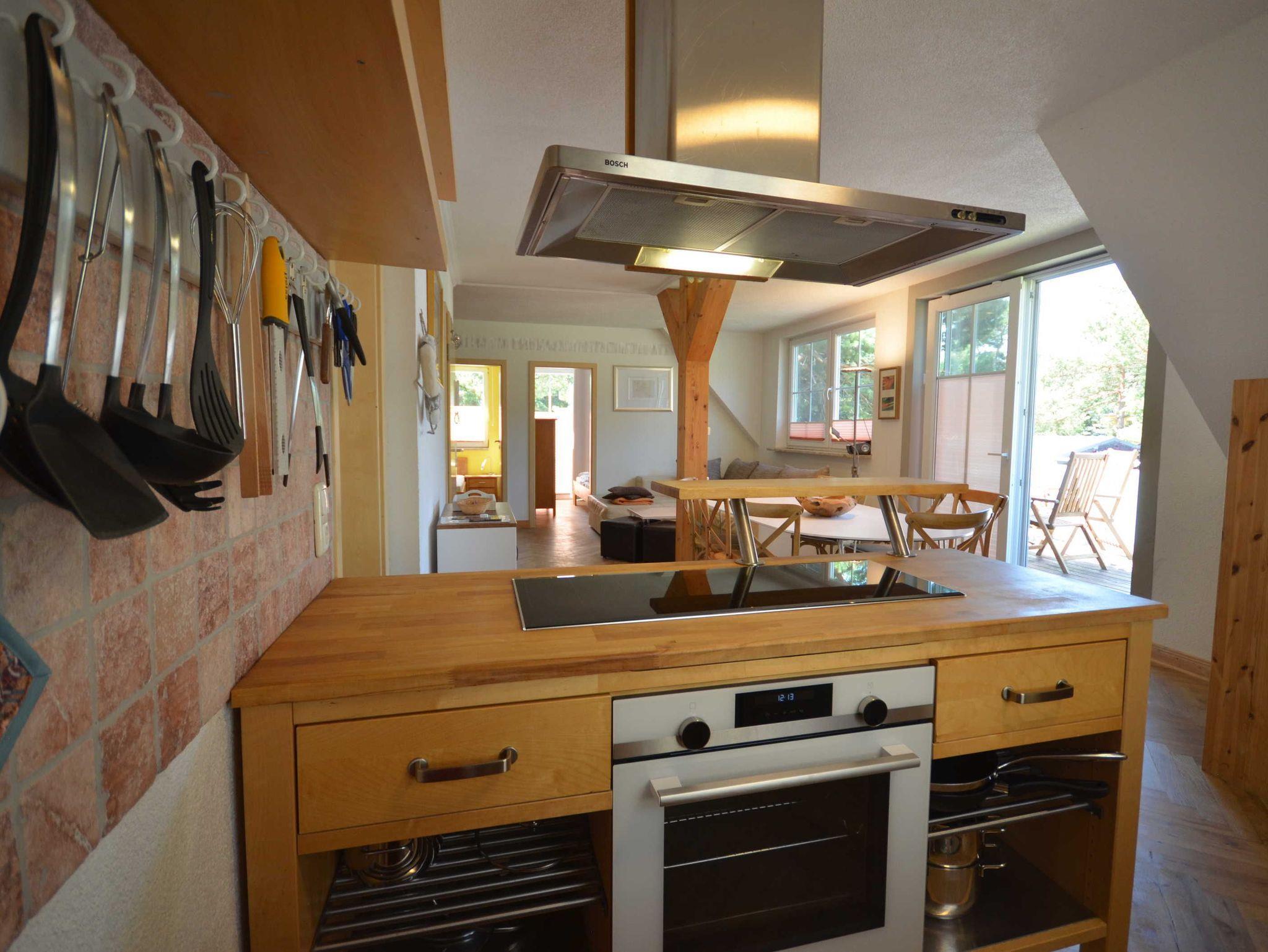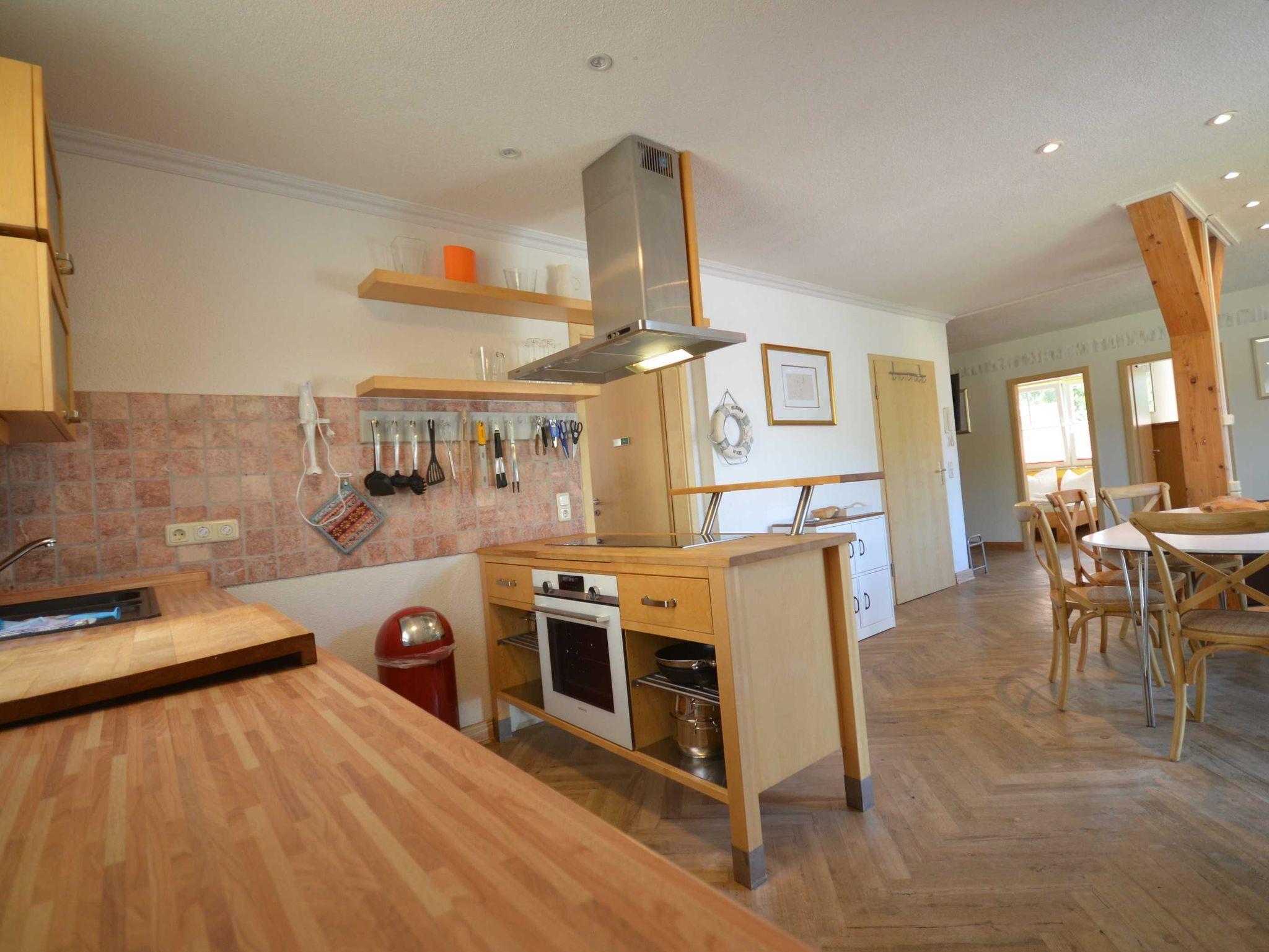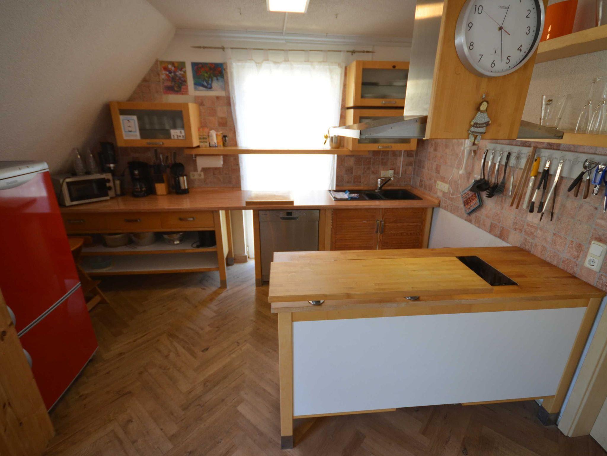 • Küche inkl. Spülmaschine, 4 Kochplatten (Ceranfelder), Backofen, großer Kühlschrank mit großem Kühlfach, Wasserkocher, Kaffeemaschine, Toaster, Esstischgarnitur mit 8 Stühlen.