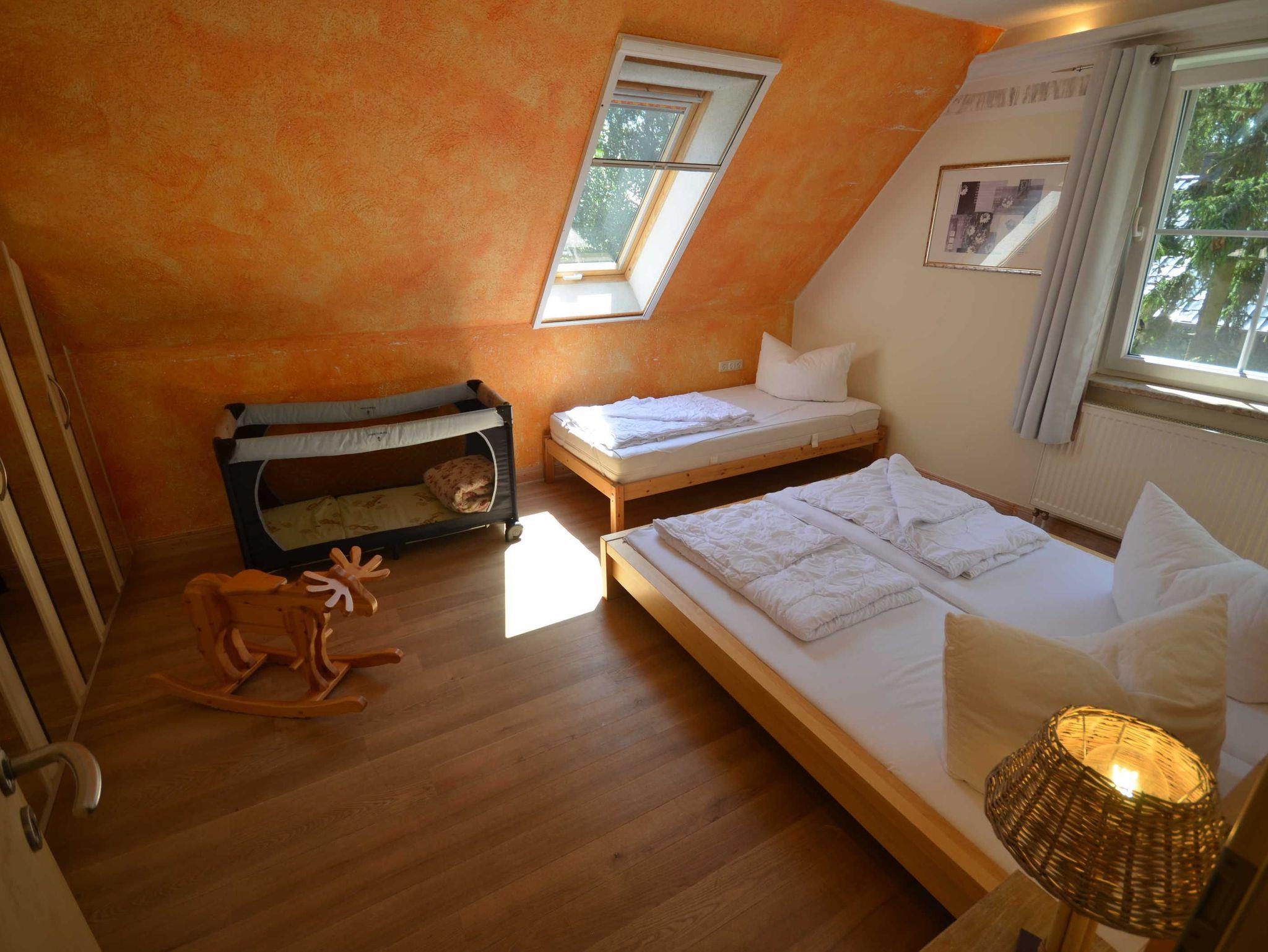 • Schlafzimmer 1 ist mit einem Doppelbett mit einer Größe von 160 x 200 cm, wie auch ein Einzelbett mit 90 x 200 cm, in dem auch ein bereits vorhandenes Babybett Platz findet. Großer Spiegelkleiderschrank.