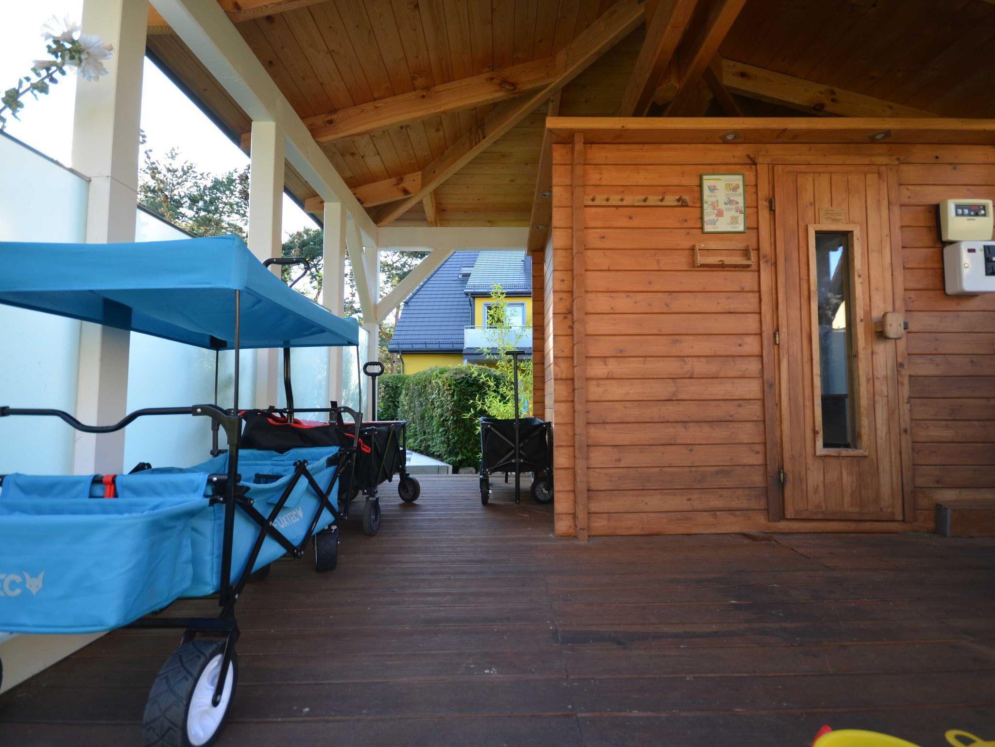 • Bollerwagen mit einer eigenen Bollerwagengarage für jede Wohnung! Perfekt für den Weg zum Einkaufen, zum Strand, zum Spazierengehen usw.