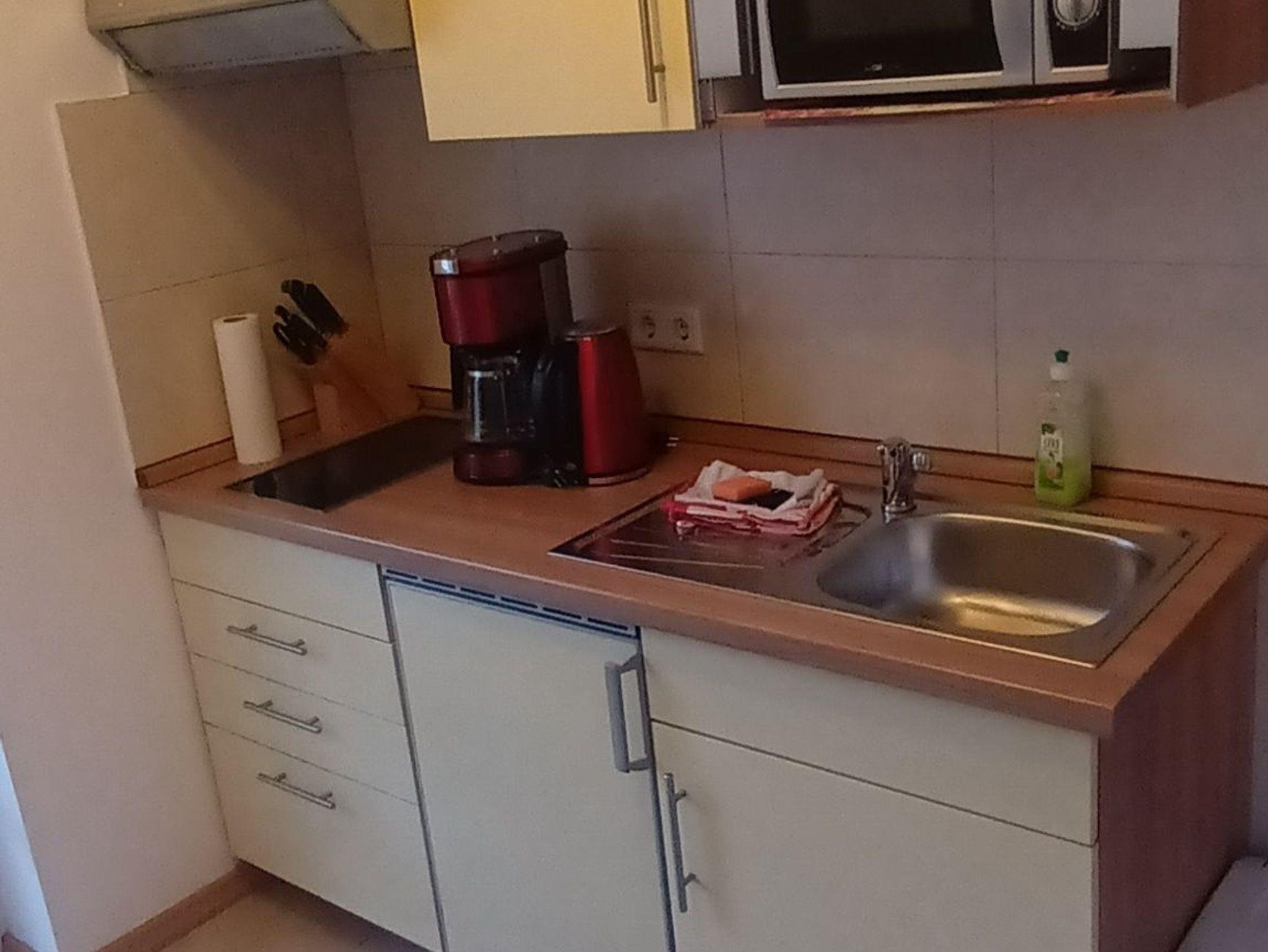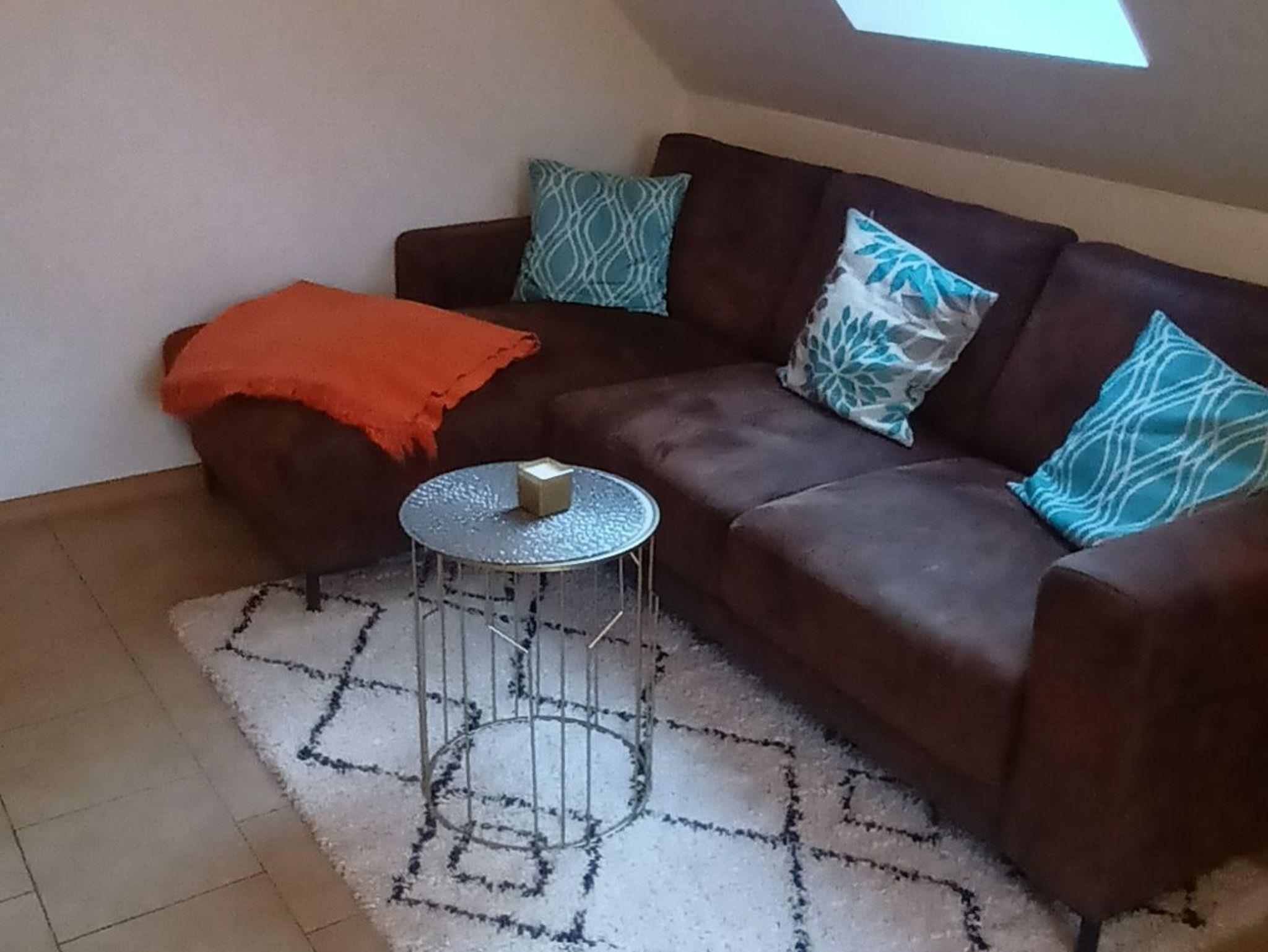 Die gemütliche Wohnung besteht aus einem Wohnzimmer mit integrierter Küche und zwei separaten Schlafzimmern. Das eine Schlafzimmer mit Doppelbett dient als Durchgangszimmer für das kleinere Schlafzimmer mit einem Tandembett.