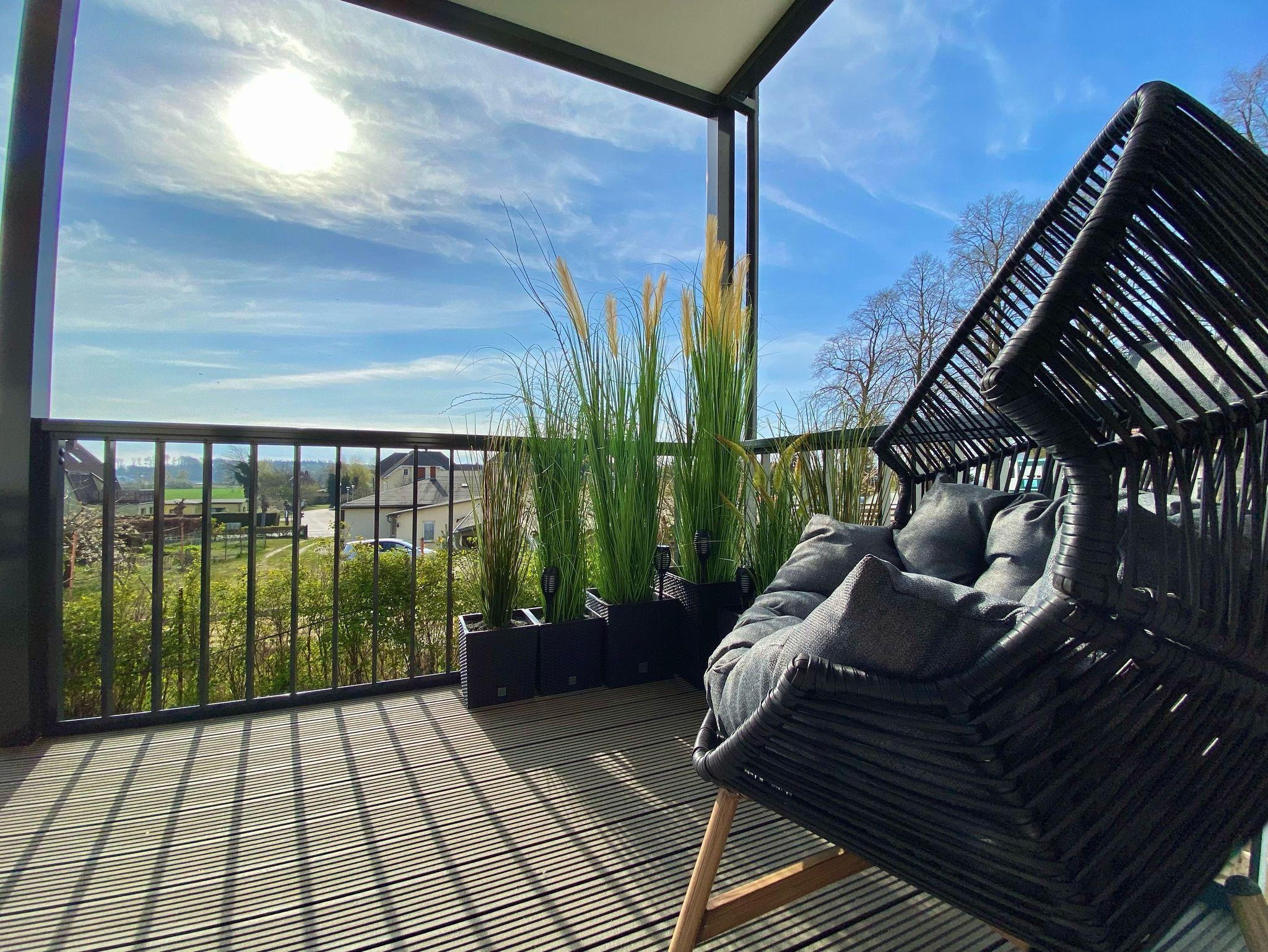 Lassen Sie sich morgens von der Sonne wecken und genießen Sie Ihr Frühstück auf dem 10 m² großen Balkon oder im Essbereich des Wohnzimmers.