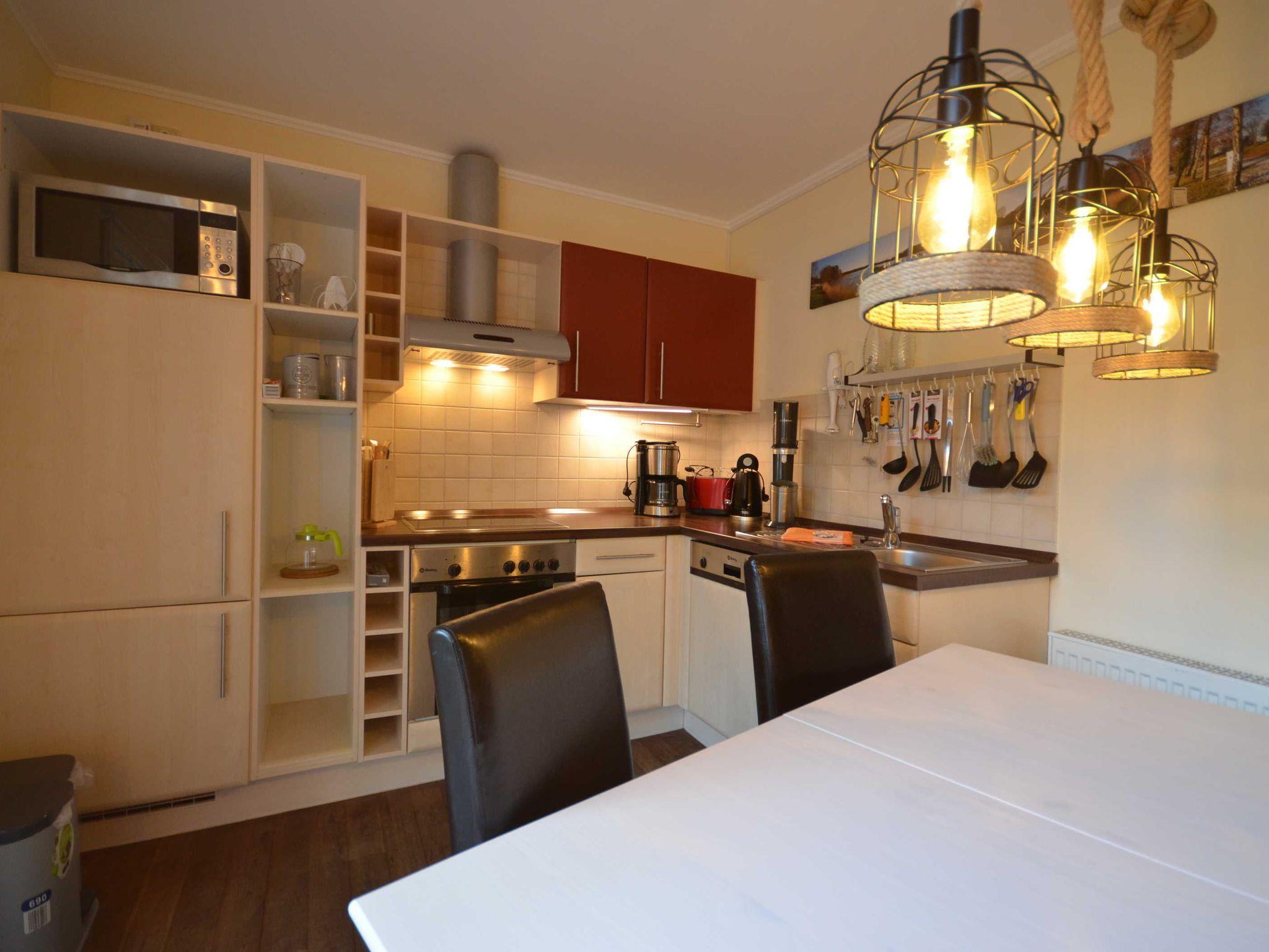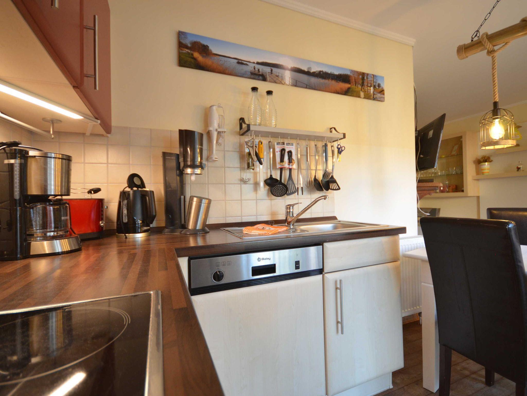 • Küche inkl. Spülmaschine, Herd mit Ceranfeld, Dampfabzugshaube, Kühlschrank mit Eisfach, Wasserkocher, Kaffeemaschine, Toaster, Esstischgarnitur mit Stühlen