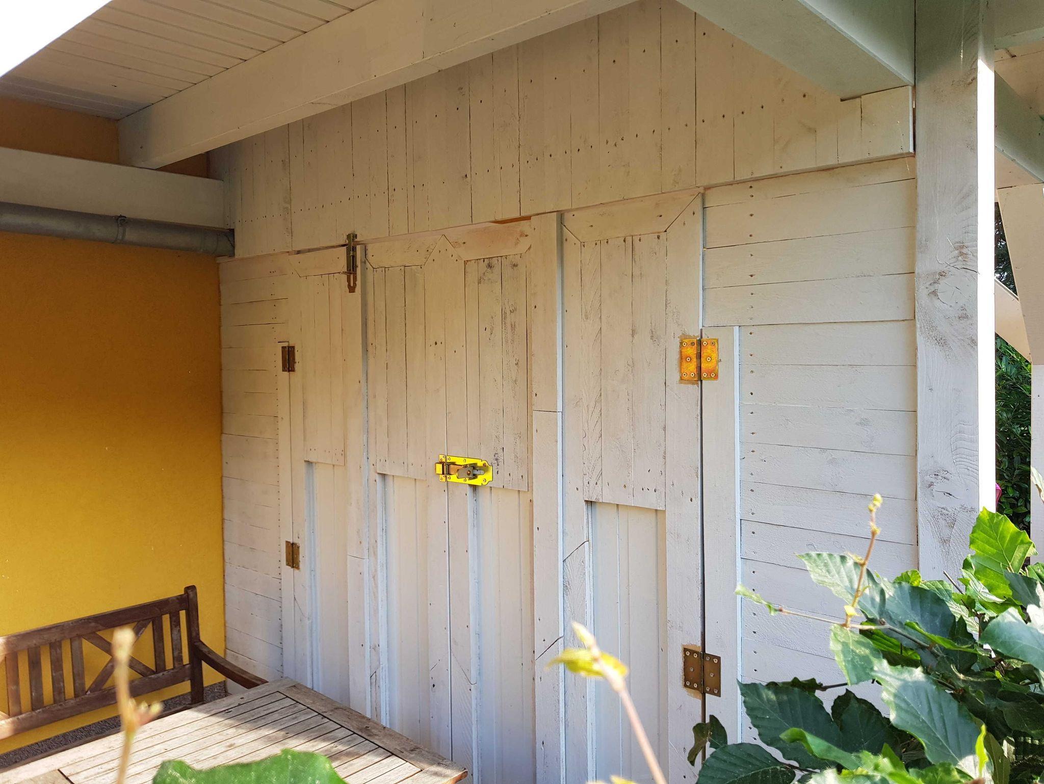 • Der Schuppen wurde für einen gemeinsamen Bereich freigegeben. Darin werden bis zu 100 Brettspiele für fast alle Altersklassen zur Verfügung stehen, über 800 Bücher für viele Altersklassen, vor allem Kinder- und Jugendbücher, Spiele für draußen und nützliche Dinge wie weitere Sonnenliegen, Bollerwagen, Sonnenschirme usw.