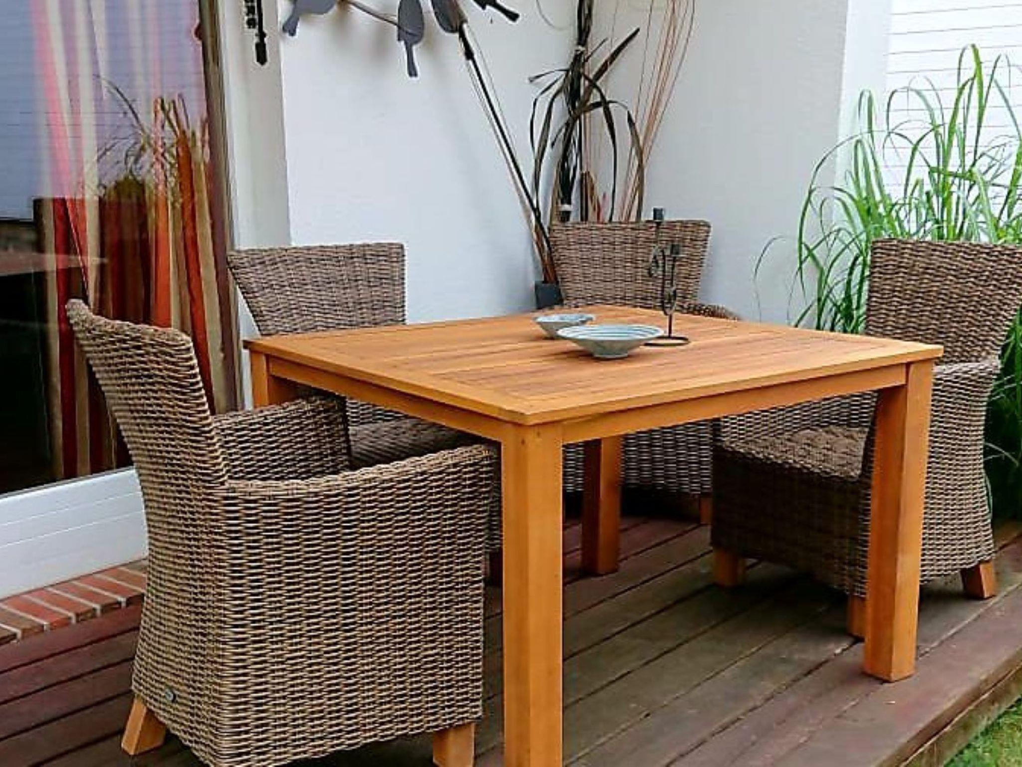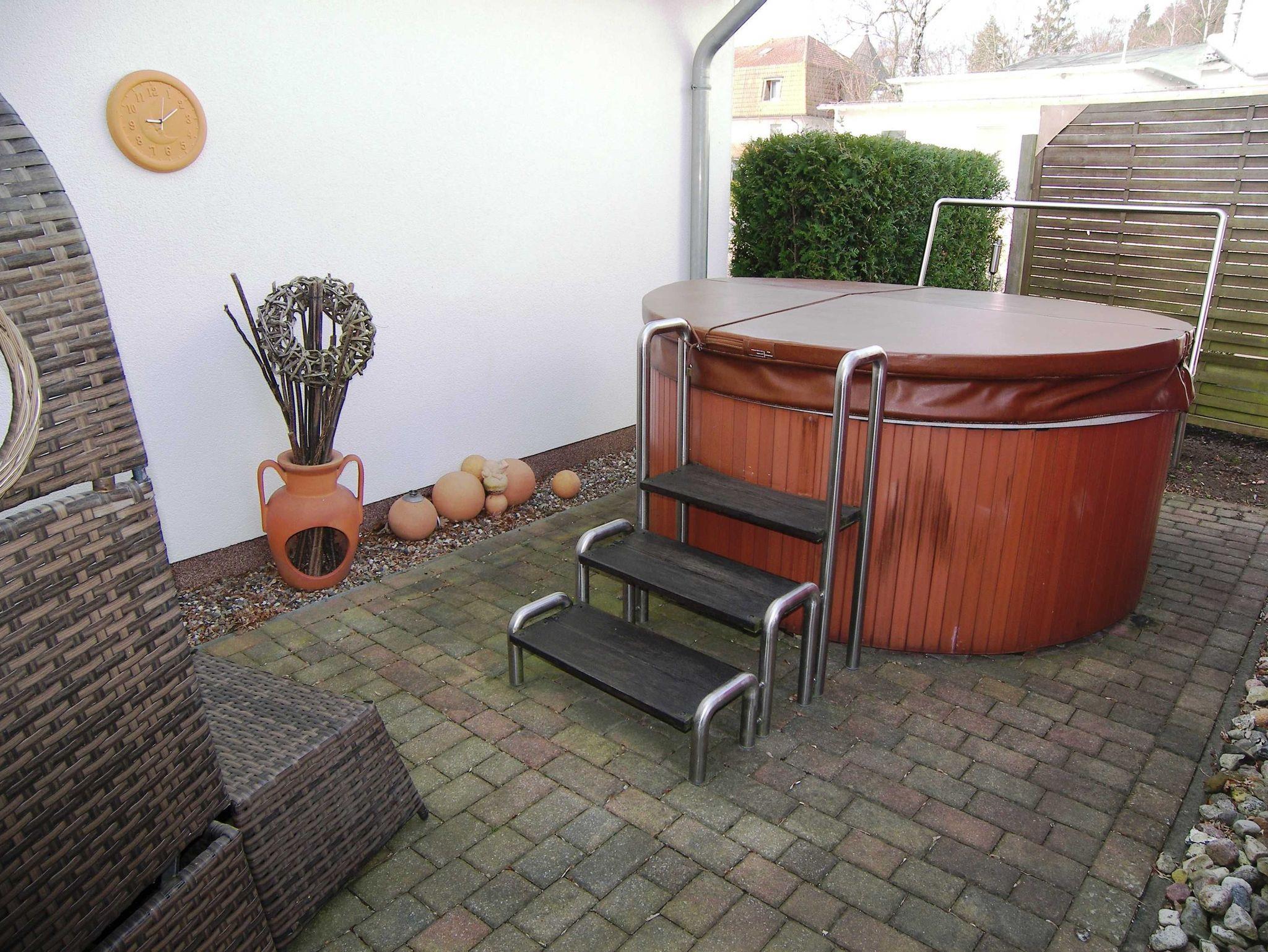 Auf der schönen, möblierten Terrasse steht Ihnen ein Grill sowie ein Strandkorb im Garten zur Verfügung. Ein Parkplatz sowie W-LAN sind kostenfrei vorhanden. Die Sauna und der kleine Whirpool im Garten können auf Anfrage gegen Gebühr genutzt werden. Ein Babybett & ein Hochstuhl können zur Verfügung gestellt werden.