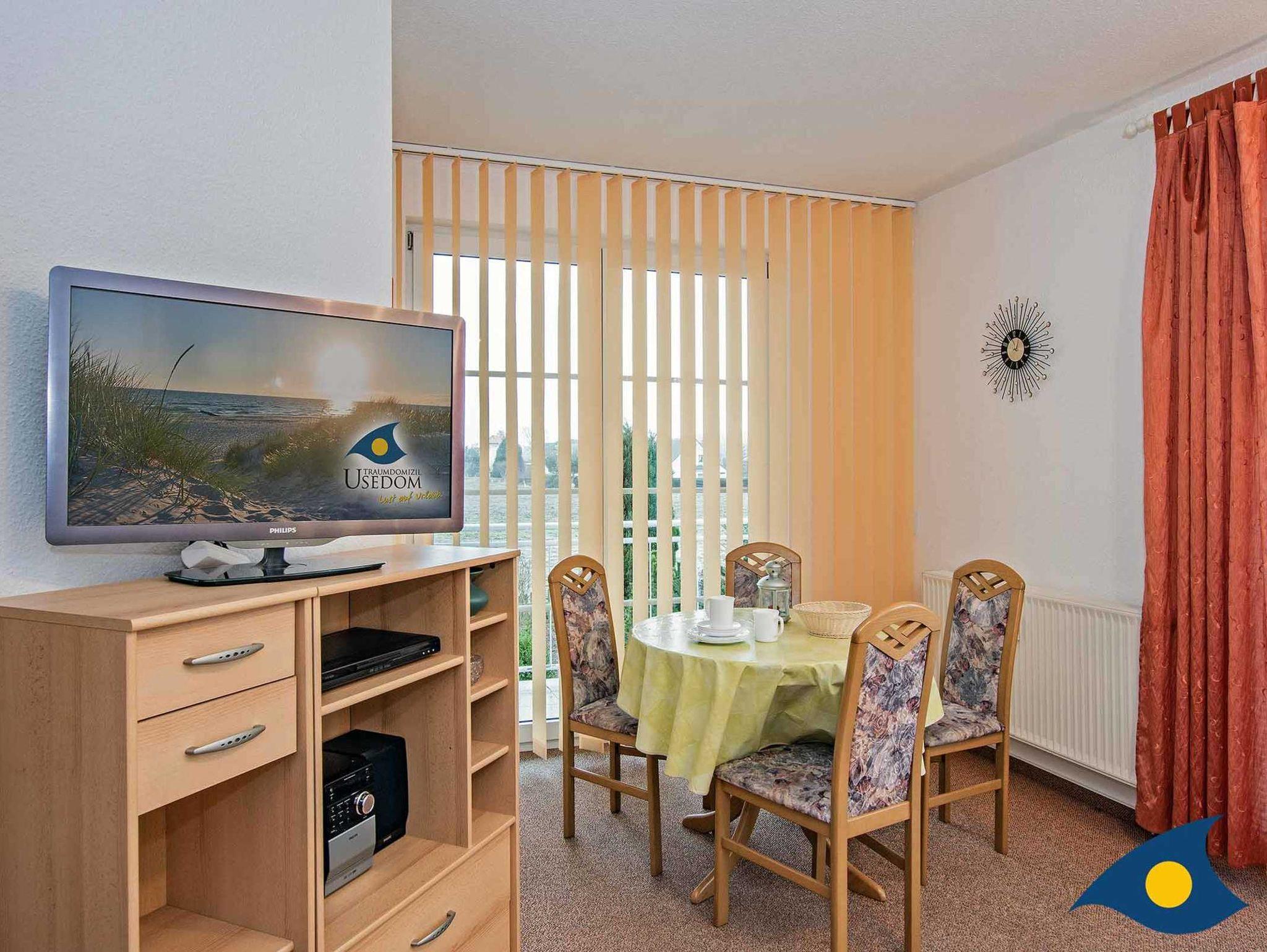 Ob zu Zweit oder in Familie, das in der ersten Etage der Villa gelegene Zwei-Zimmer-Appartment garantiert Ihnen einen entspannten Urlaub auf der sonnenreichsten Insel Deutschlands. Der helle Wohnraum verbindet Gemütlichkeit mit der im Urlaub gewünschten Zweckmäßigkeit. Sowohl der Essbereich wie auch die bequeme Couchecke bieten 4 Personen Platz zum Essen, Spielen oder Relaxen. Mit einem HD-Flachbild-Fernseher, DVD-Player und einer kleinen Musikanlage steht Ihnen das nötige Equipment zur Verfügung.