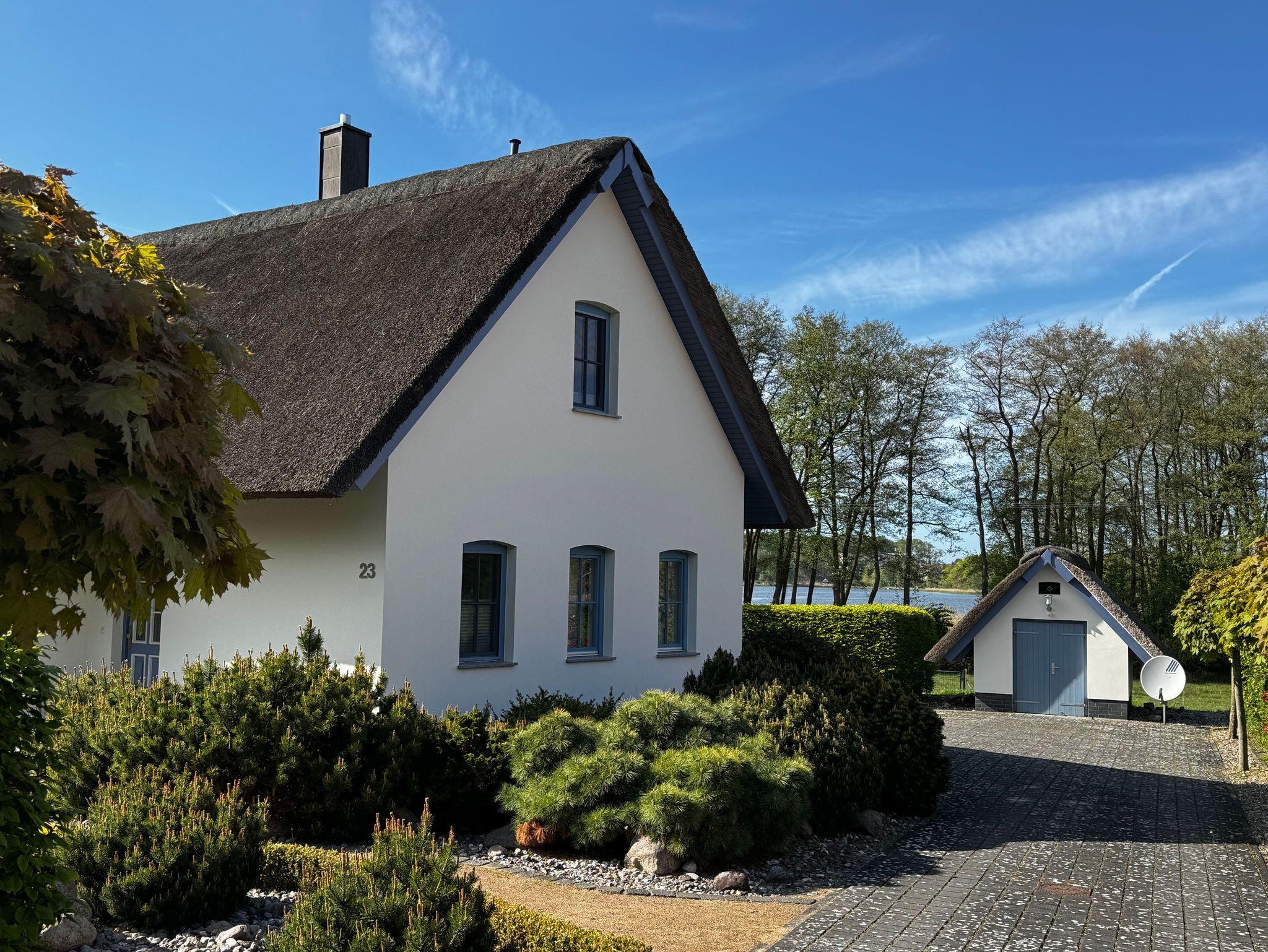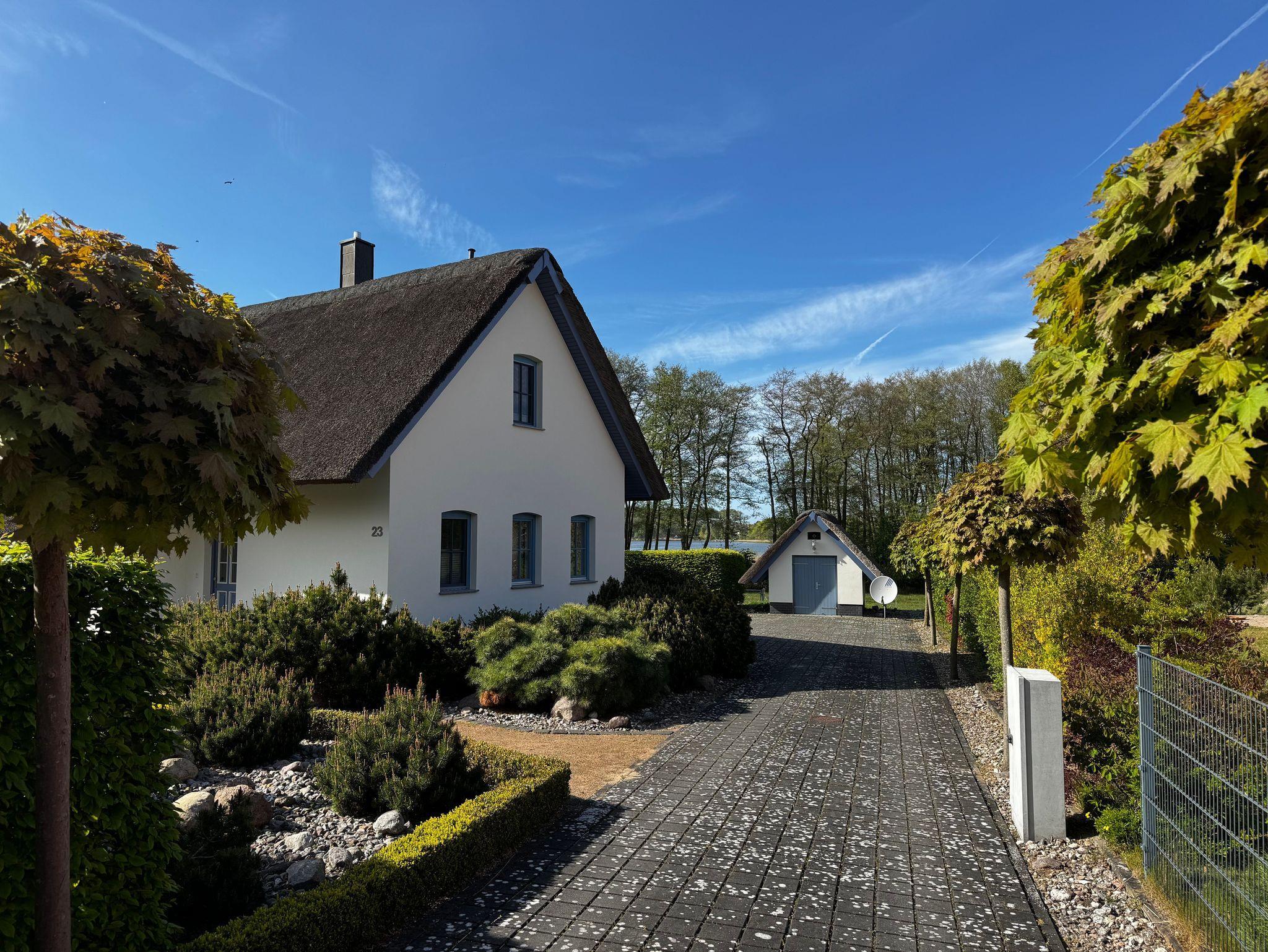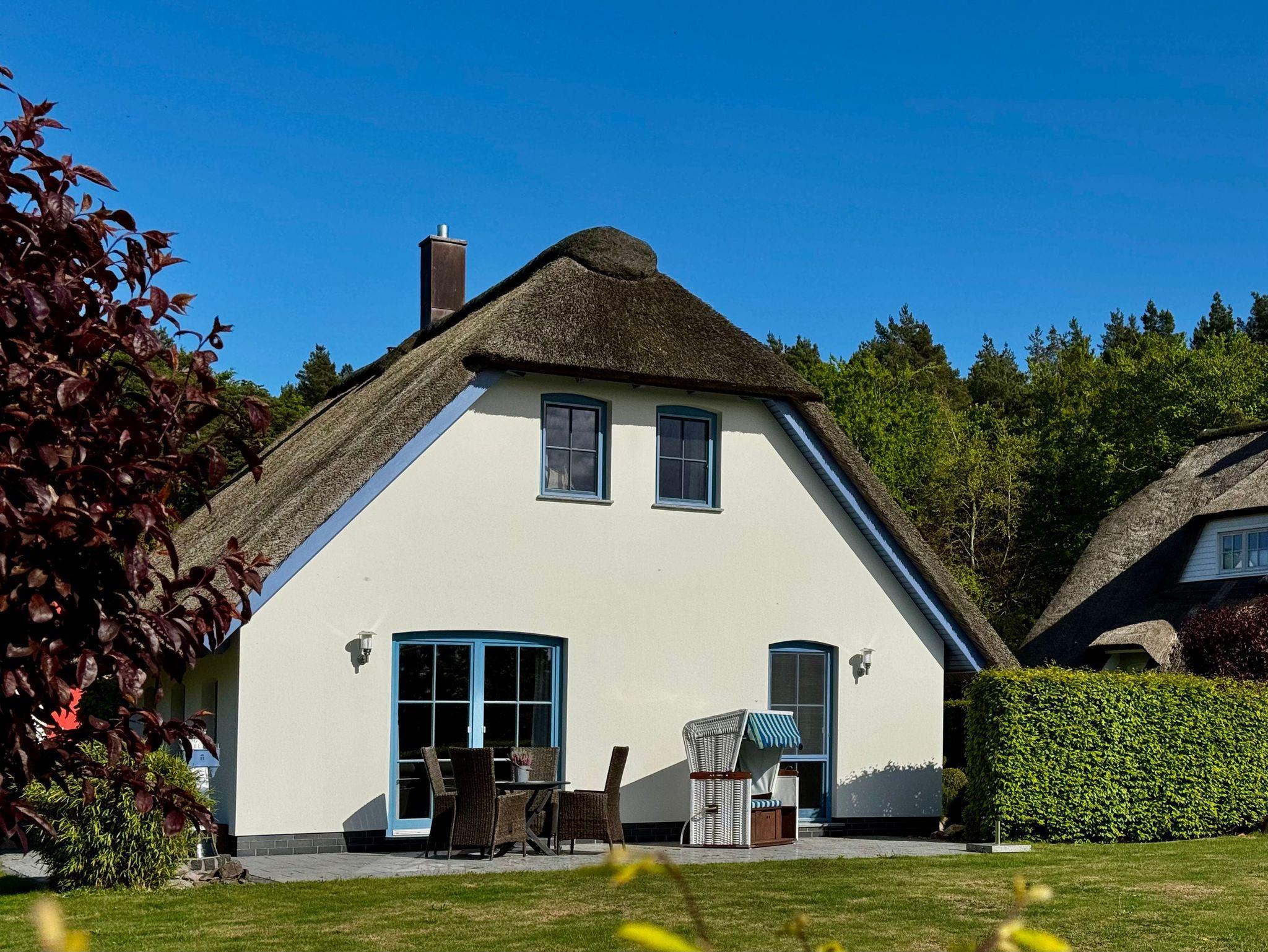 Dieses freistehende reetgedeckte Ferienhaus mit 110qm Wohnfläche wurde auf einem großzügigen und liebevoll gestaltetem Grundstück errichtet. Urlaubserleben und Komfort spiegeln sich in stilvoller Einrichtung im Wohn-und Eßbereich mit Kamin, den 2 Schlafzimmern, 2 Bädern und der idyllischen Sonnenterrasse wieder.