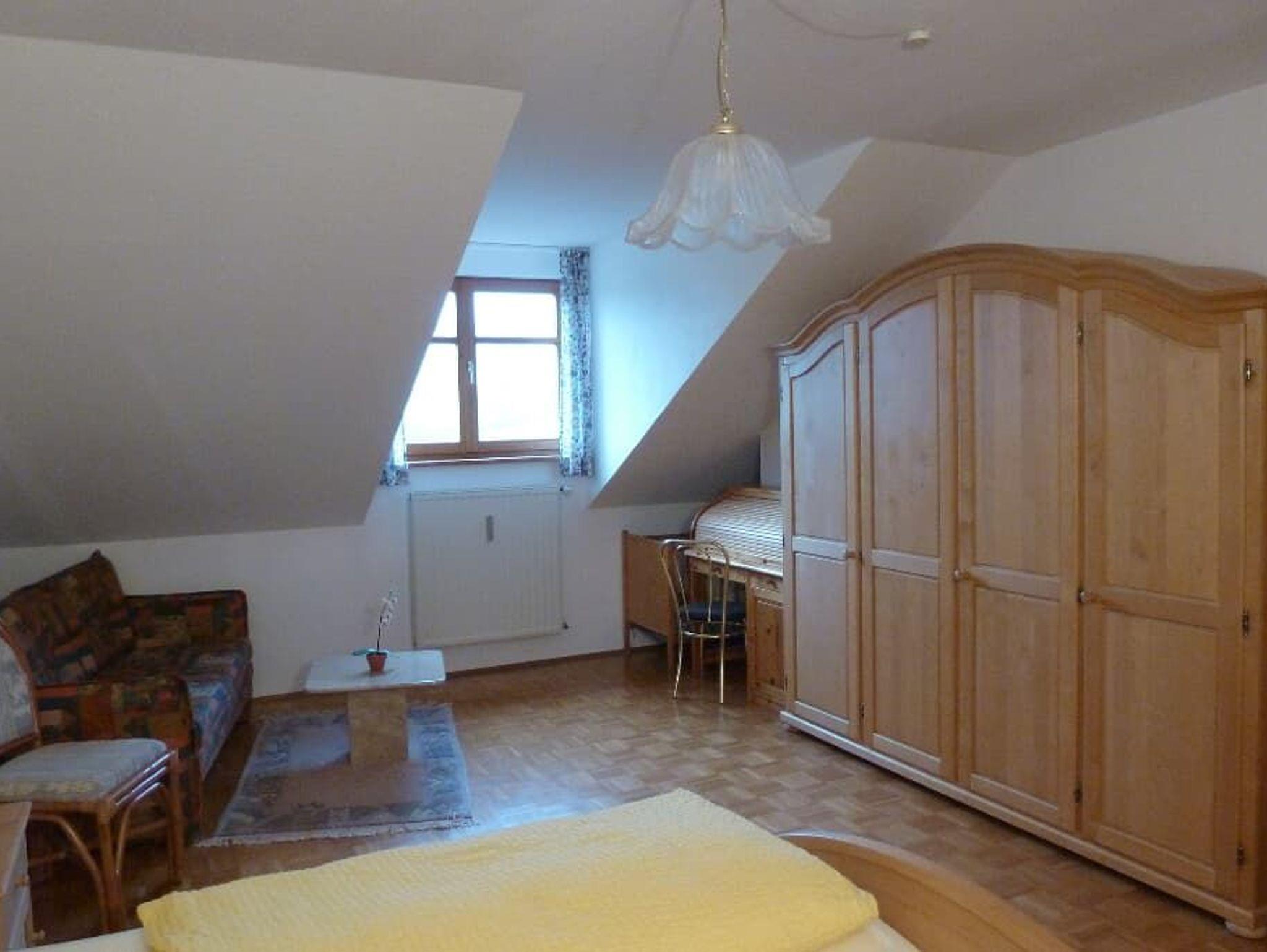 Apartment Nr.17, 2.OG, Balkon, zusätzlich im SZ ein Etagenbett, WZ mit Schlafcouch Herzlich Willkommen im Appartementhaus Osserblick! Die Maisonettewohnung mit Blick auf den Berg Osser ist für maximal vier Personen geeignet. Das Appartement ist 64 Quadratmeter groß und verfügt im Dachgeschoss über ein großes Schlafzimmer mit Doppelbett, einem Sofa und einem zusätzlichen Etagenbett. Das Wohn-/Esszimmer im unteren Bereich ist mit einem Schlafsofa und einem Flat-TV ausgestattet. Der Essbereich mit Platz für vier Personen befindet sich neben der Küchenzeile. Diese ist mit einem Herd mit Backofen, Wasserkocher, Kaffeemaschine und einem Kühlschrank eingerichtet. Das Badezimmer befindet sich auf Ebene des Wohnbereiches und verfügt über Badewanne und WC. Vor dem Haus steht ein Stellplatz für Ihren Wagen bereit. Das Besondere an dieser Wohnung ist der Balkon mit wunderschönem Ausblick auf Berg und Tal. Das WLAN können Sie gerne kostenfrei benutzen. Die gemeinschaftlich genutzte Sauna im Haus kann gegen Gebühr genutzt werden.