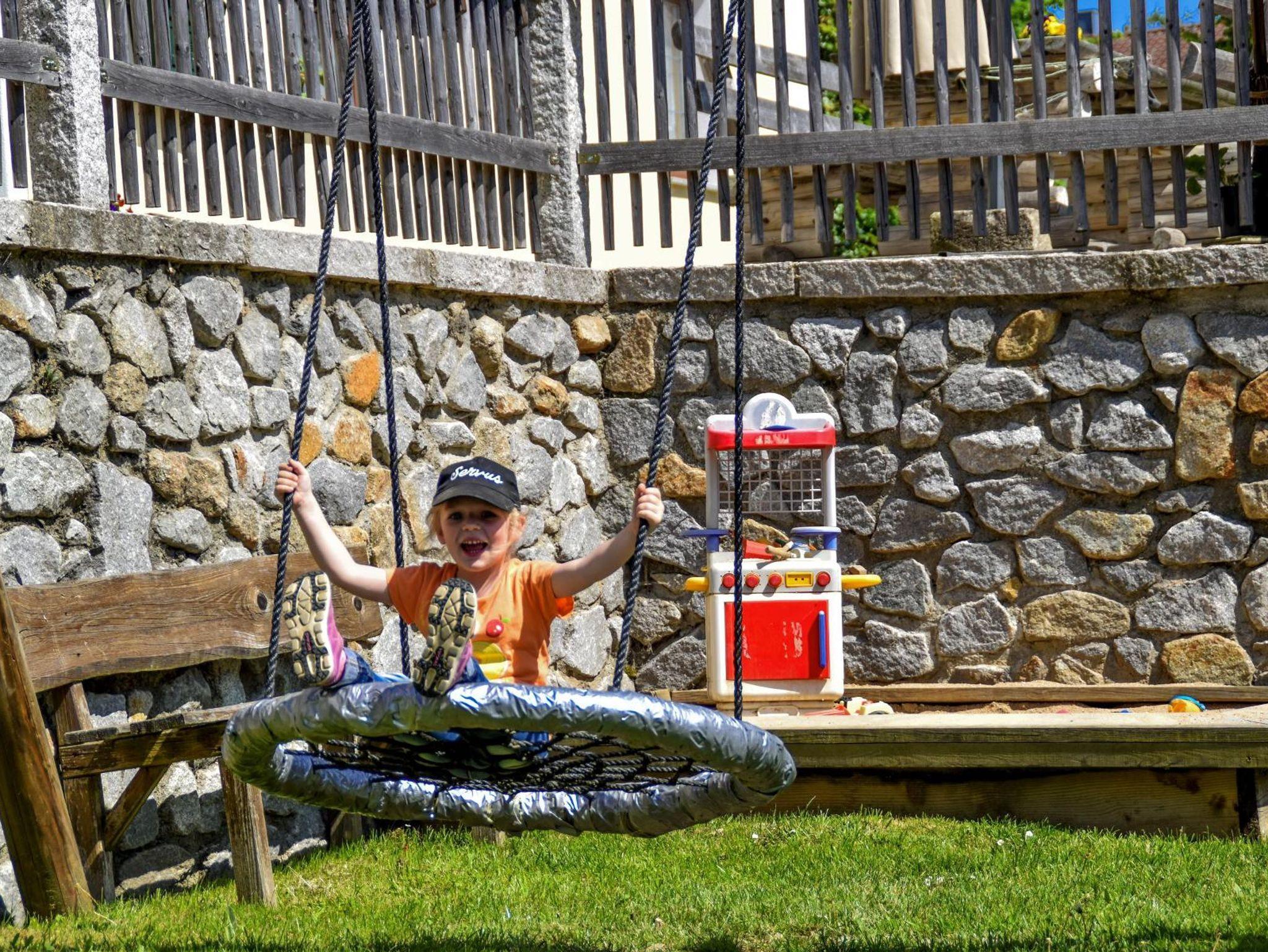 Spielgeräte wie Schaukel, Rutsche, Trampolin, Sandkasten,