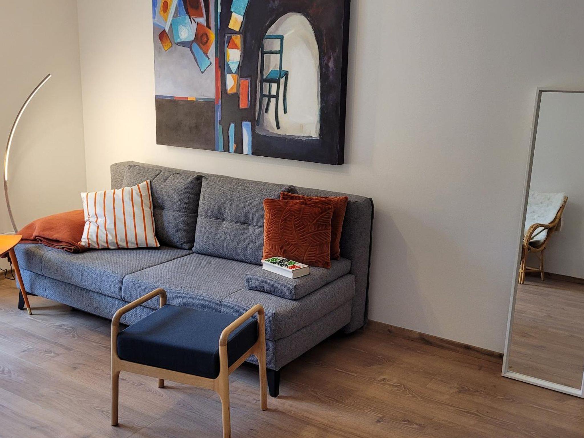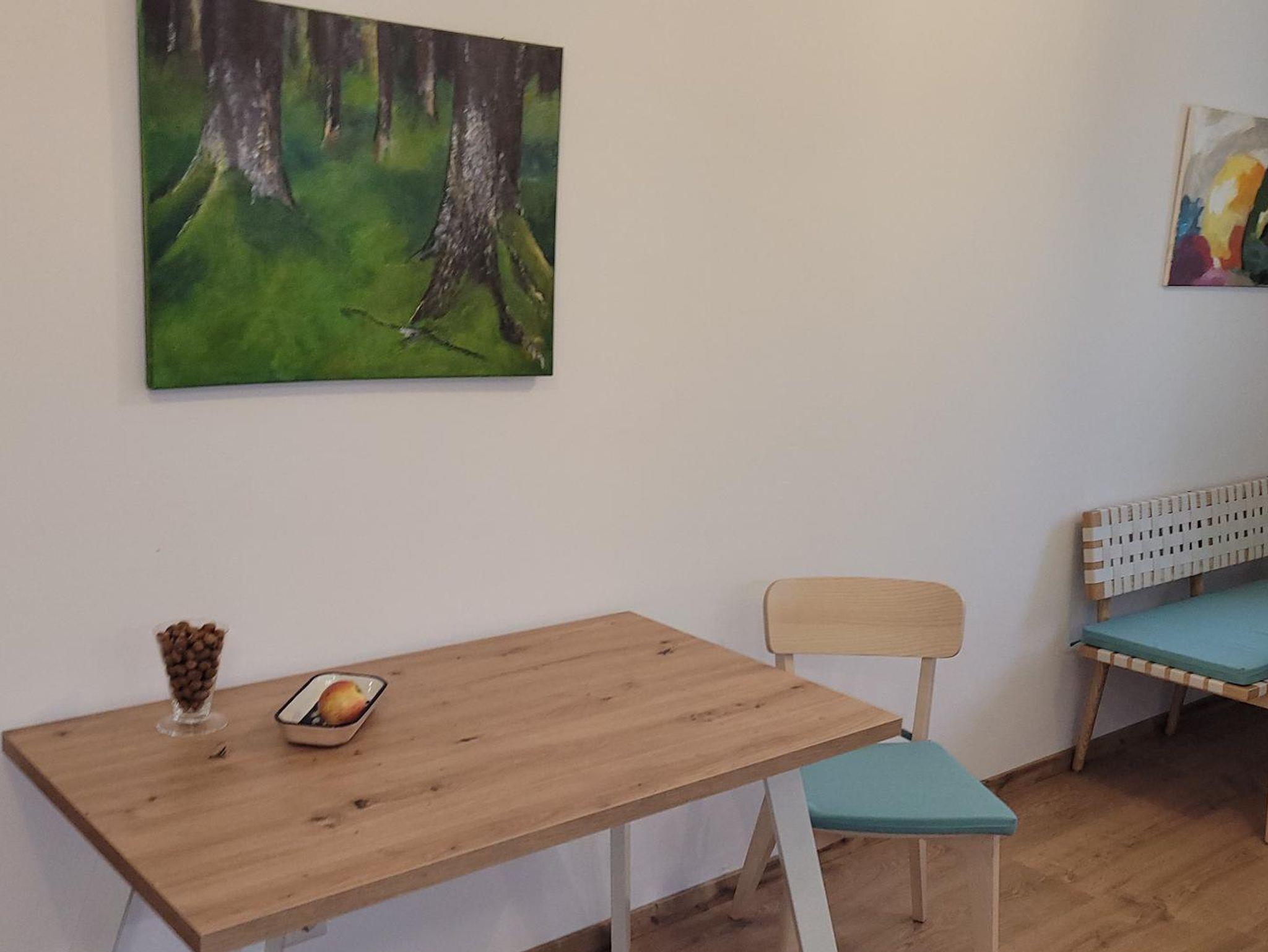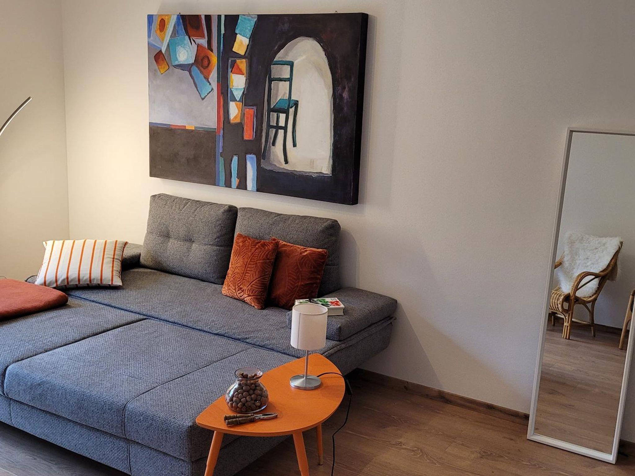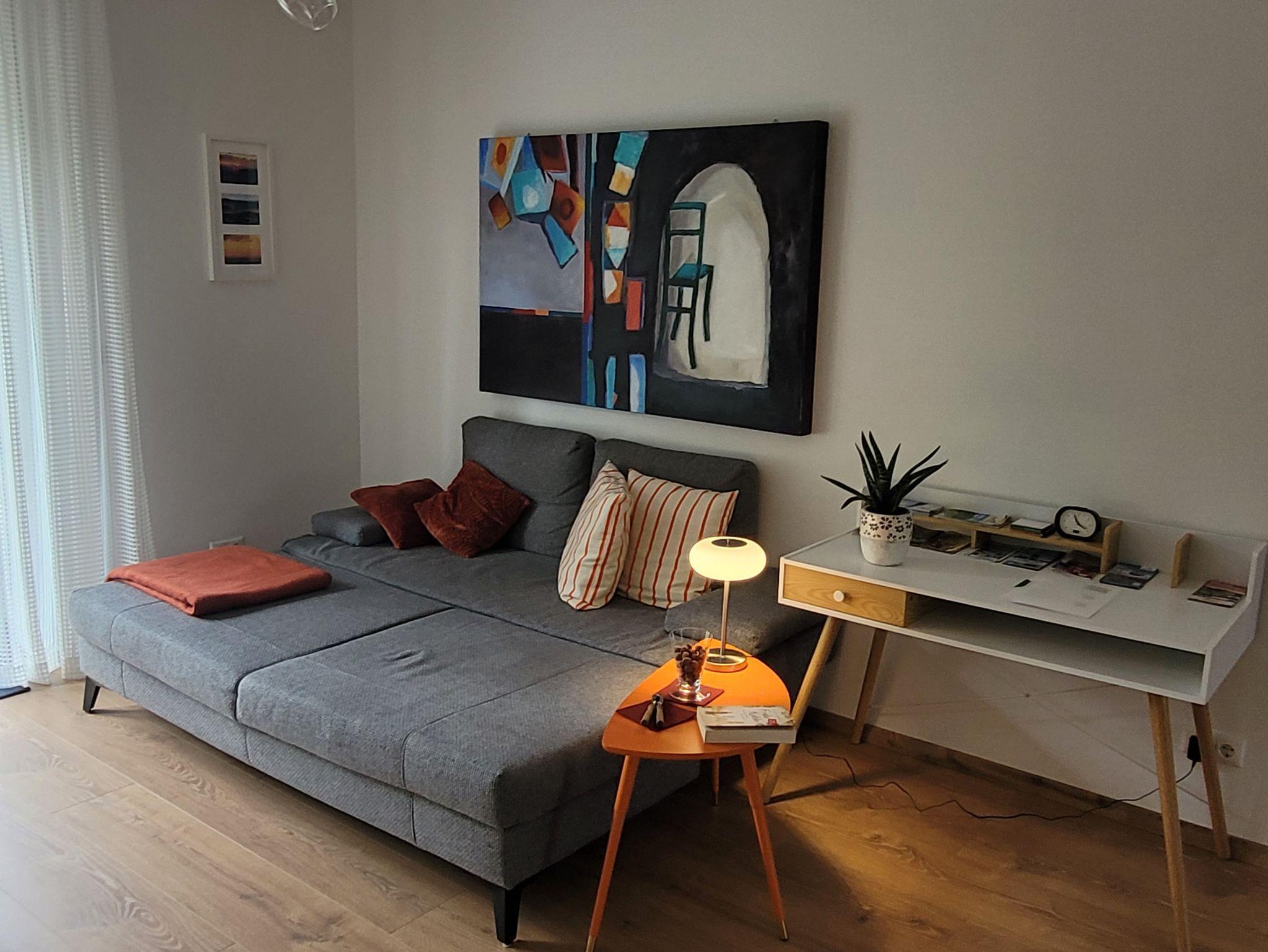 Die großzügigen Räumlichkeiten (insgesamt ca. 85 m2), die puristische Einrichtung und klare Formensprache der Möbel, die ausschließlich selbst gemalten Wandbilder, die Betten aus Massivholz in den beiden Schlafzimmerern tun ihr restliches, damit Sie hier Ihren persönlichen „Lieblingsplatz“ finden.