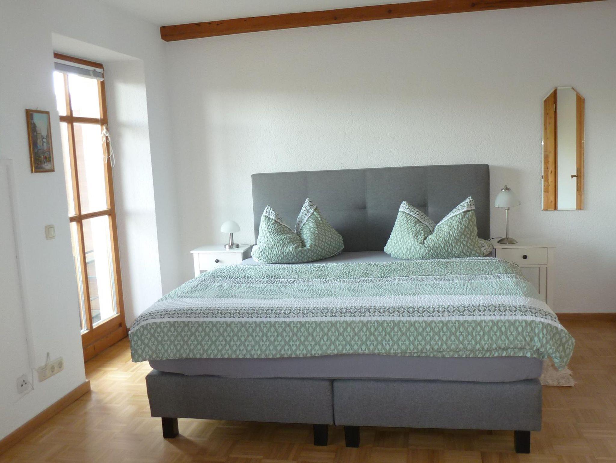 Modern eingerichtetes Appartement mit sep. Koch-und Essbereich, Herd mit Backofen, Boxspringbett 1,80x2,00m, Du/WC, großer Balkon mit Panoramablick Richtung Lam und Osser, 1.OG