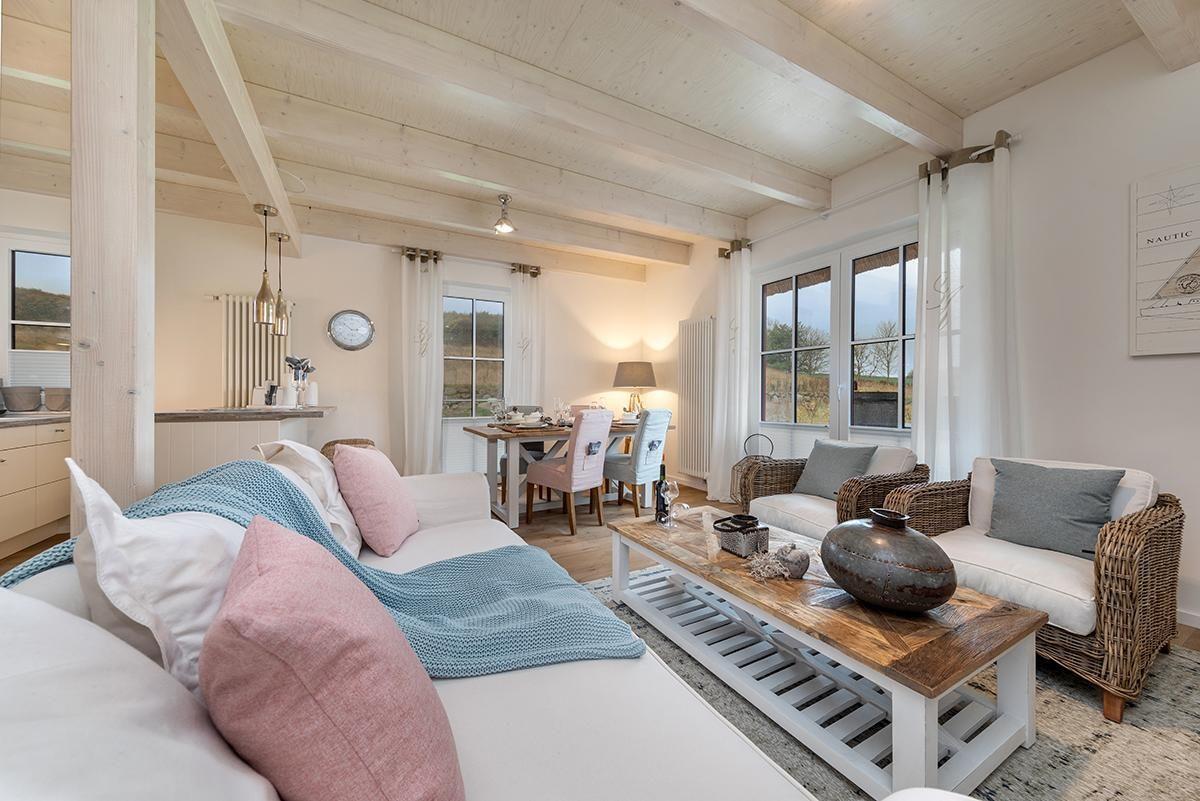 Das neue 5-Sterne-Designhaus Freyh II mit Reetdach und Komplettausstattung im Stil von Riviera Maison für gehobene Ansprüche überzeugt durch eine umfassende Ausstattung und Komfort.