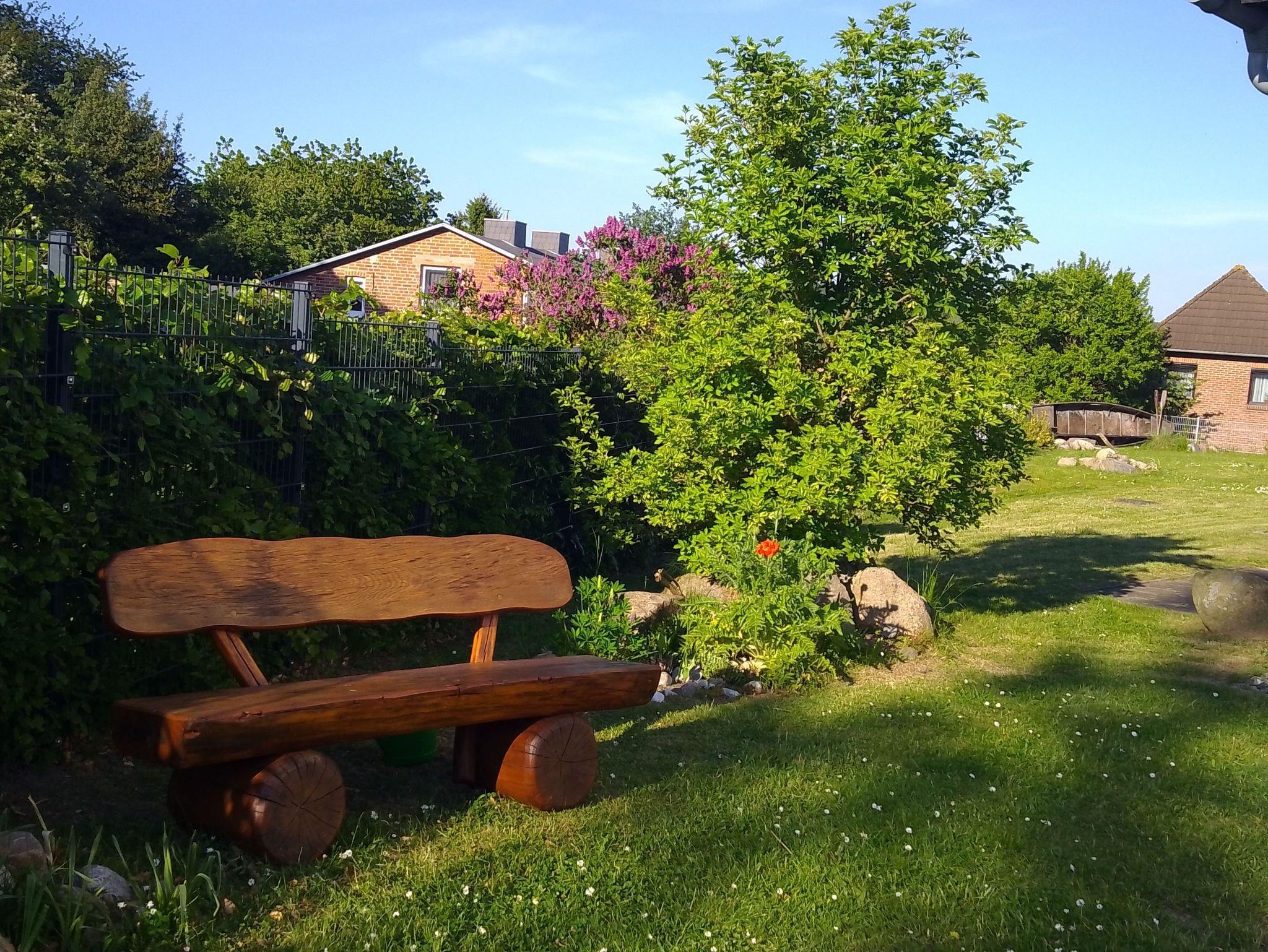 Dem Wohnzimmer ist eine gut ausgestattete Küchenzeile und ein Essplatz angeschlossen sowie ein Schlafsofa für bis zu 2 Personen.Im Schlafzimmer steht ein Doppelbett (1,80x2,00). Der Garten hinter den beiden Ferienhäusern steht allen Gästen gemeinsam zur Verfügung. Gartenmöbel im Treppenhaus und im Keller können genutzt werden.