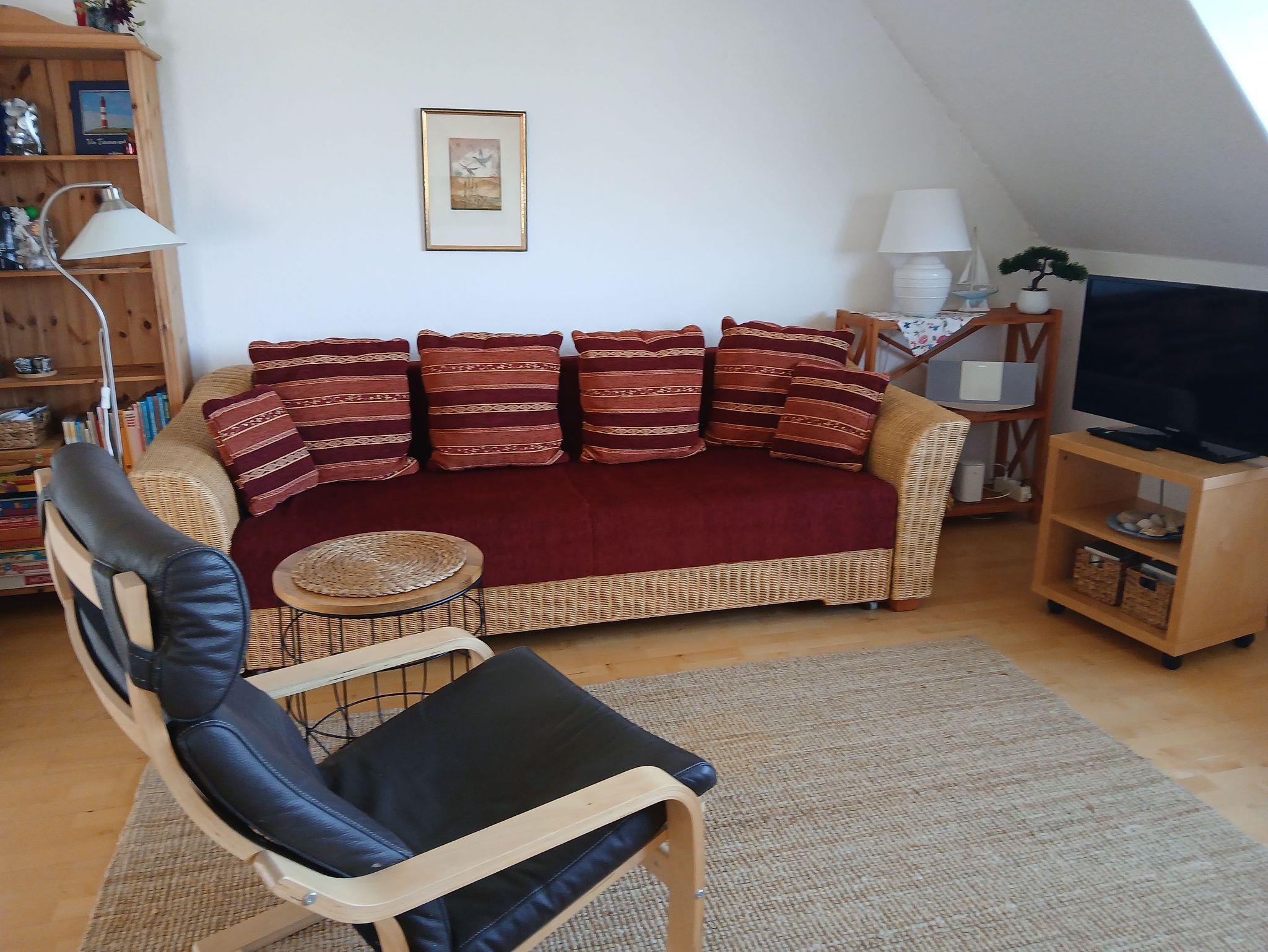 Im Wohnzimmer können 1-2 Personen auf dem Schlafsofa (1,30 x 2,00) schlafen.