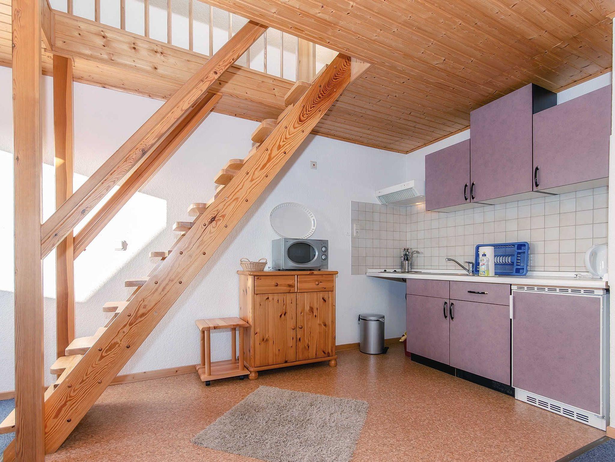 * Über eine steile Treppe im Wohnzimmer erreicht man den