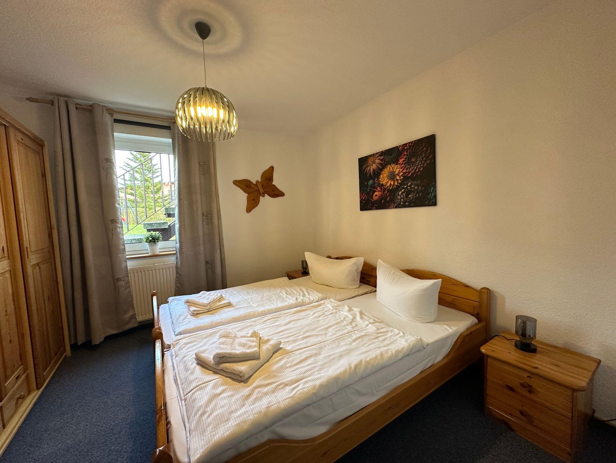 Schlafzimmer mit Doppelbett zwei getrennt stehenden Betten,