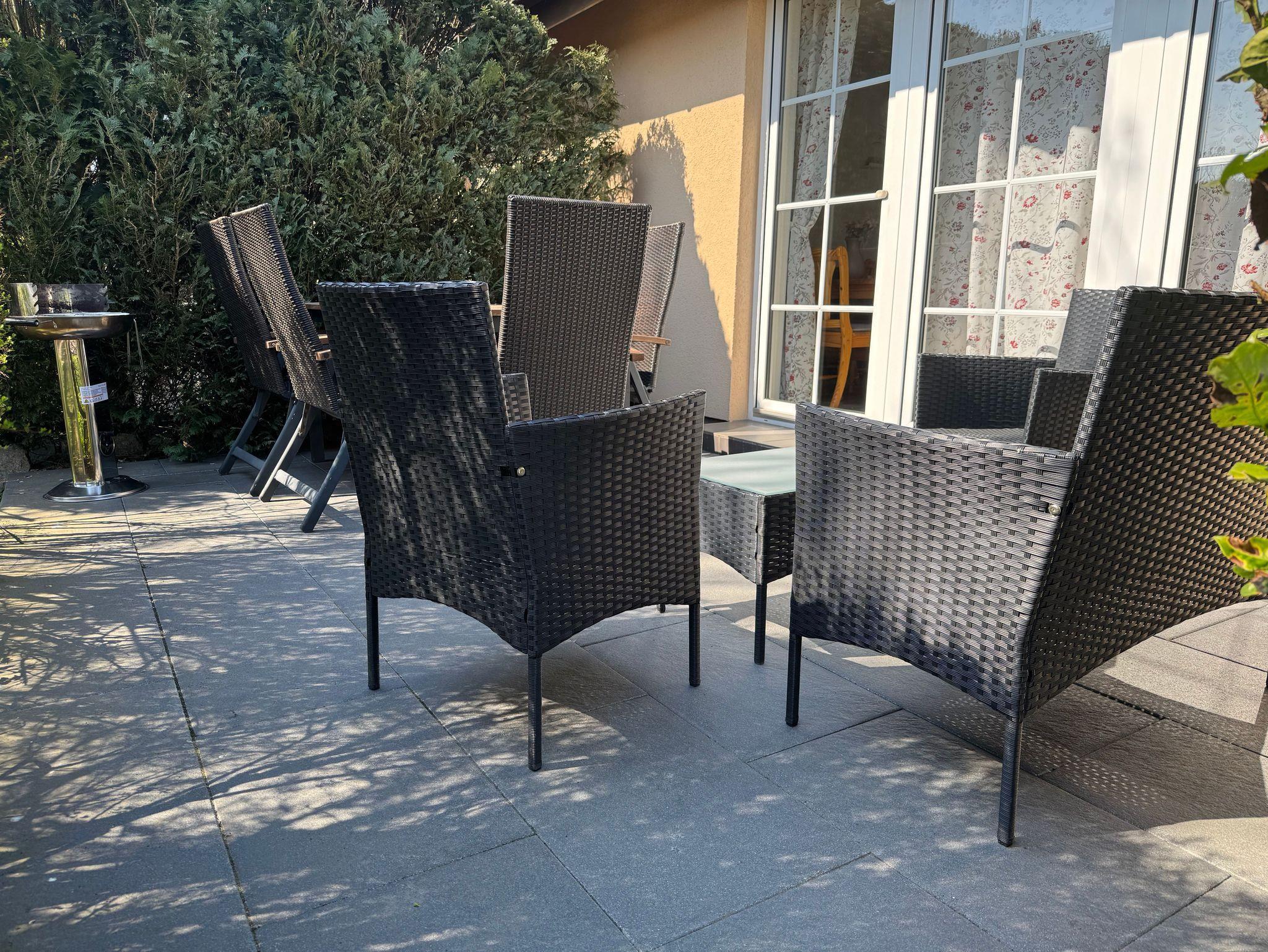 Eingangsbereich ist eine kleine möblierte Terrasse vorgelagert