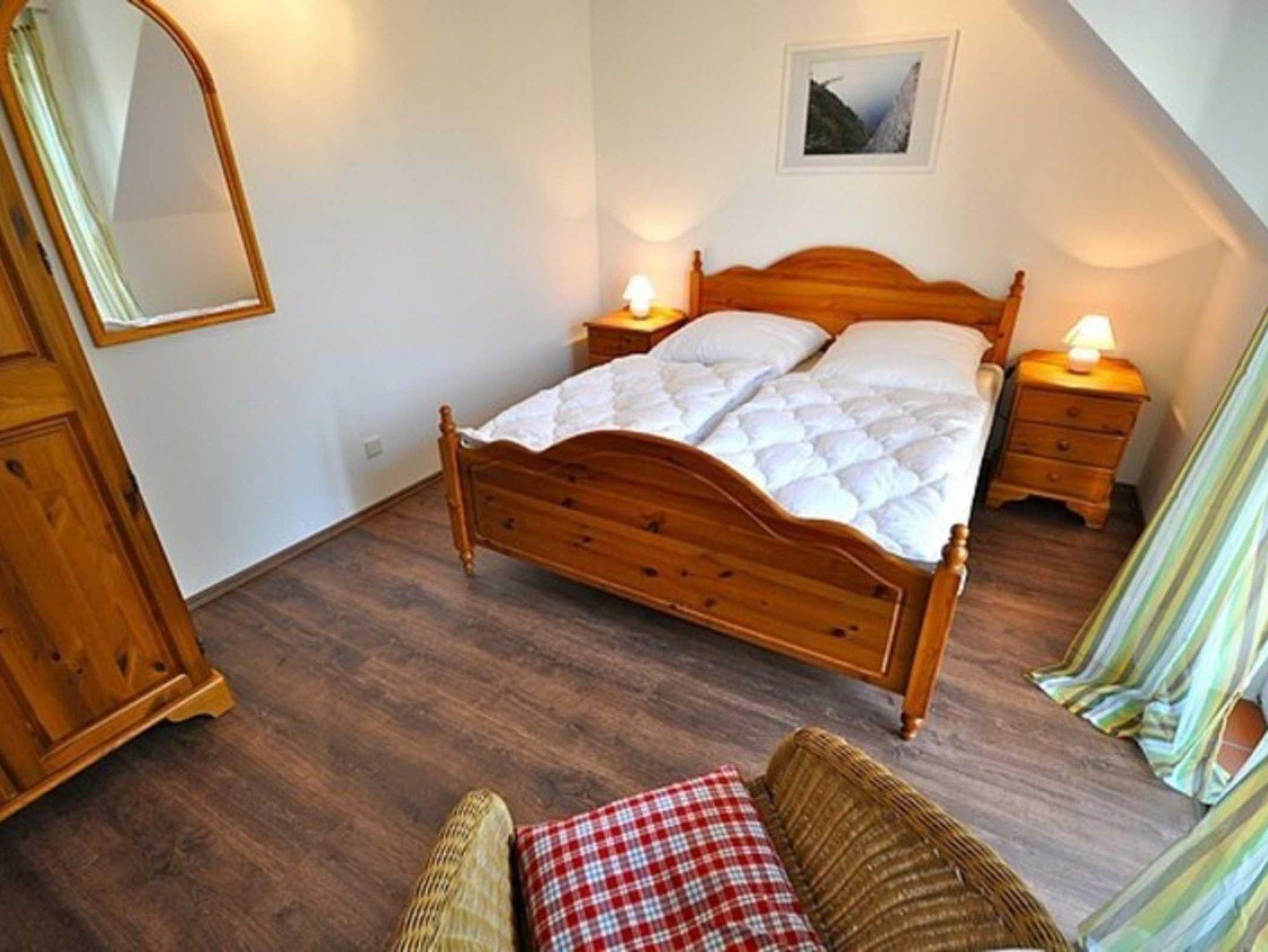 Für die beiden Ferienwohnungen Victoriasicht und Königsstuhl, die sich im Obergeschoß des Hauses befinden, liegt das zweite Schlafzimmer im offenen Dachgeschoß. Die beiden im Erdgeschoß befindlichen Wohnungen Herthasee und Murmelsee befindet sich das zweite Schlafzimmer im Souterrain und ist ebenfalls innerhalb der Wohnung über eine Treppe vom Flur aus zu erreichen.
