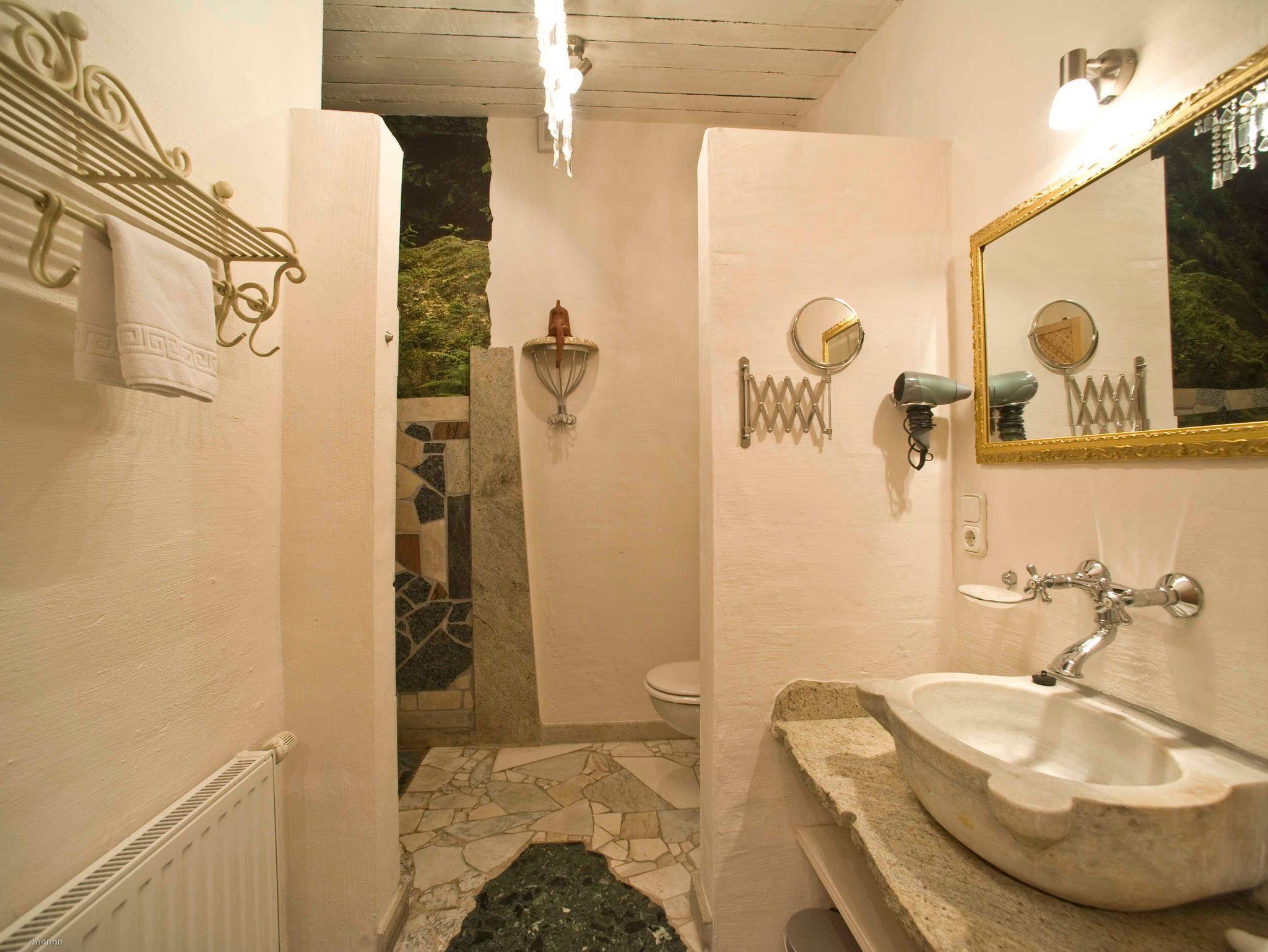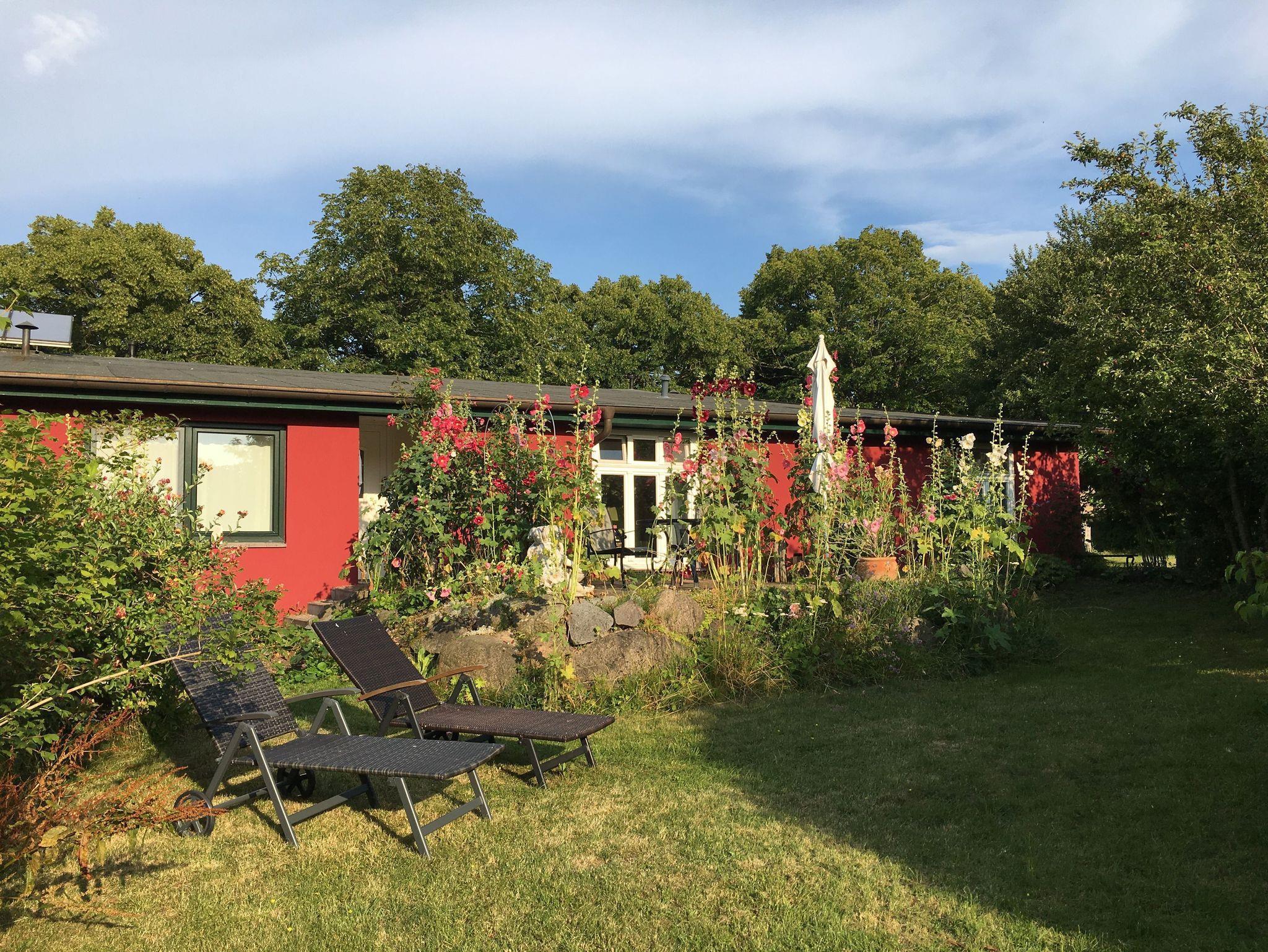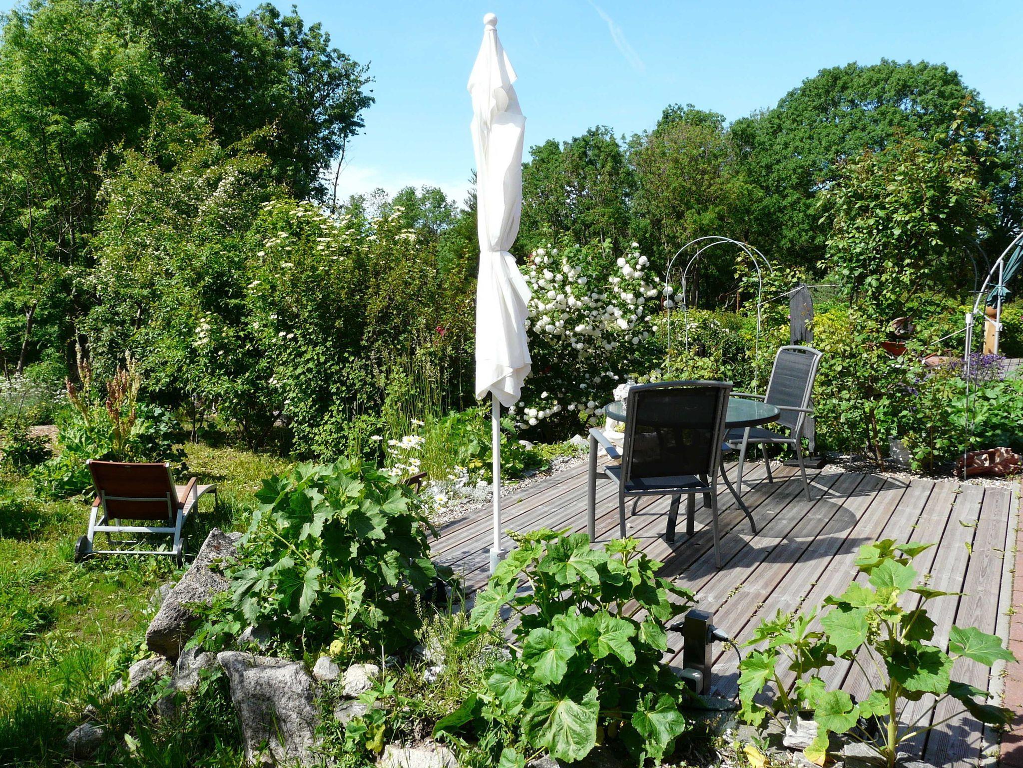 Zu jeder Wohnung gehört eine Außenterrasse mit Gartenmöbeln, Sonnenschirm und Grillmöglichkeit. Darüber hinaus finden Sie bei uns einen großen Natur- und Nutzgarten, in dem Sie neben vielfältig angelegten Beeten auch noch Wegrandblumen und Heilpflanzen sowie verschiedene Ruhezonen mit Sitzgruppen und Liegen zum Entspannen finden. Manchmal ganz offensichtlich, bisweilen recht versteckt können Sie im Garten Kunstobjekte des Hausherren entdecken und bei Gefallen käuflich erwerben.