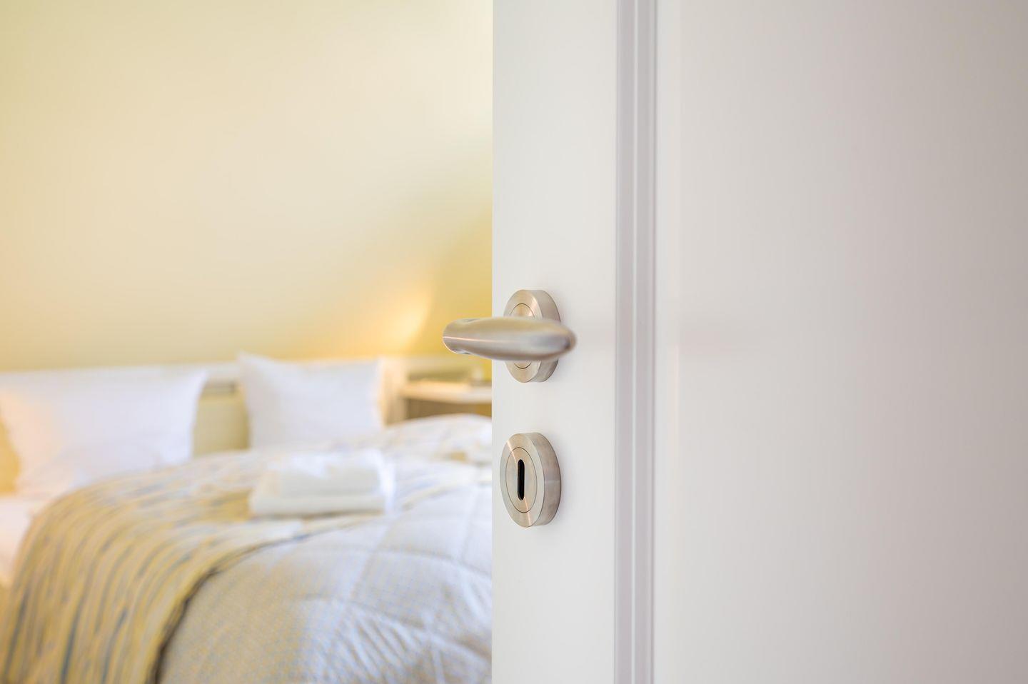 Zwei Schlafzimmer im Obergeschoss. Das erste Schlafzimmer bestückt mit einem Doppelbett 1,80m x 2,00m, das zweite Schlafzimmer mit zwei getrennten Betten 0,90 m x 2,00 m.