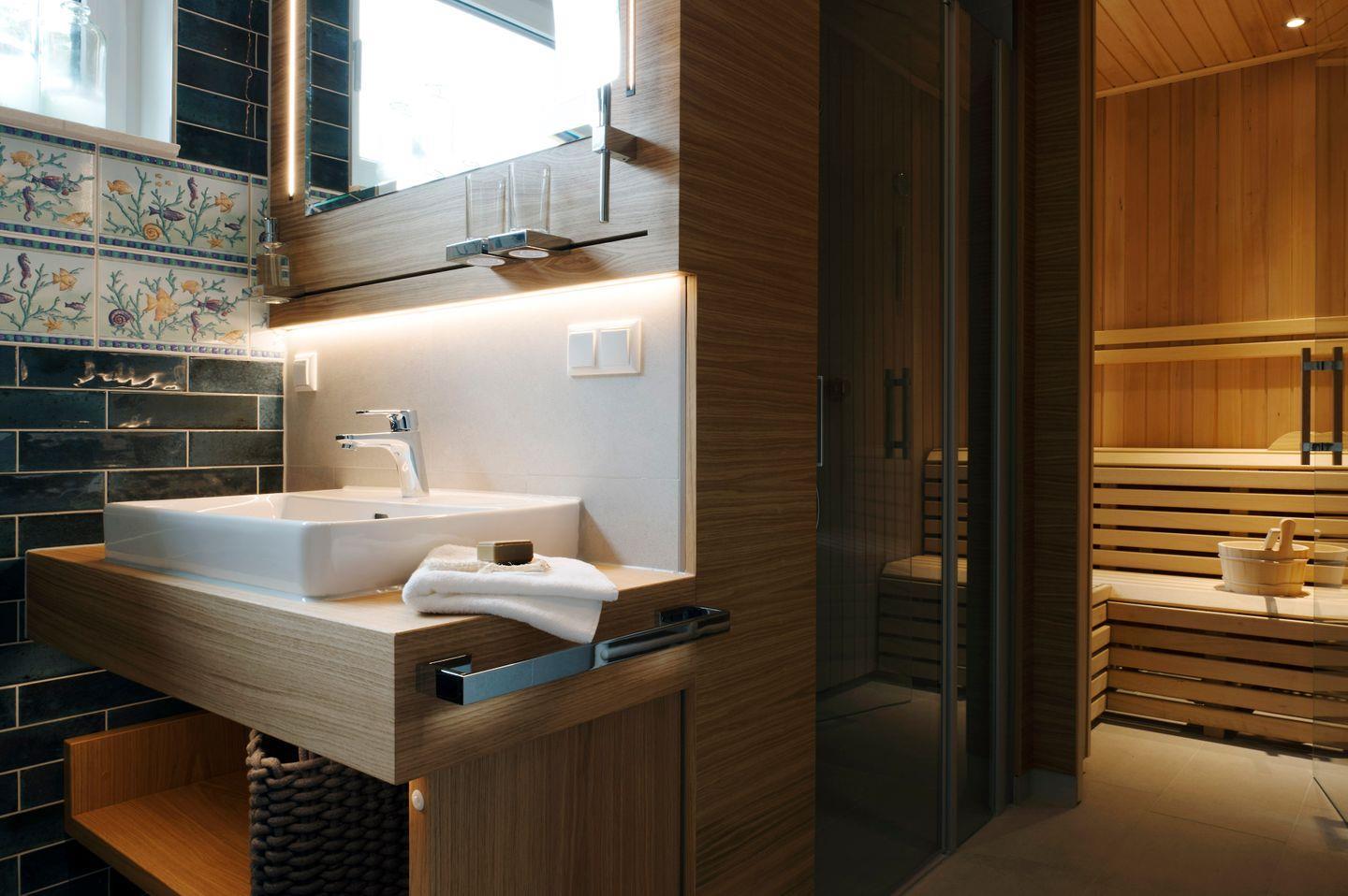 Luxusliving an der Schlossallee: Das durch Tischlereinbauten großzügig geschaffene Raumangebot offeriert eine verblüffende Weite im Apartment. Passend zum High-Class-Wohlfühlanspruch liegt die Lohme Luxury Living - L3 an der ruhigen Schlossallee und verfügt über ganz besondere Detailfeatures: Garderobe mit intelligent gelöstem Stauraum. Wohnzimmer mit 48 Zoll Smart-TV, GigaTV über DSL und kostenlosem WLAN. Küchenausstattung mit Premium-Marken. Bequemer Stauraum mit beleuchteten Schränken und Schubladen. Lamellenoptik in Flur und Wohnzimmer. Handgefertigte finnische Sauna für pures Wohlbefinden direkt am Bad. Nachhaltig. Akustisch schallisoliert. Perfektion in allen Bereichen!