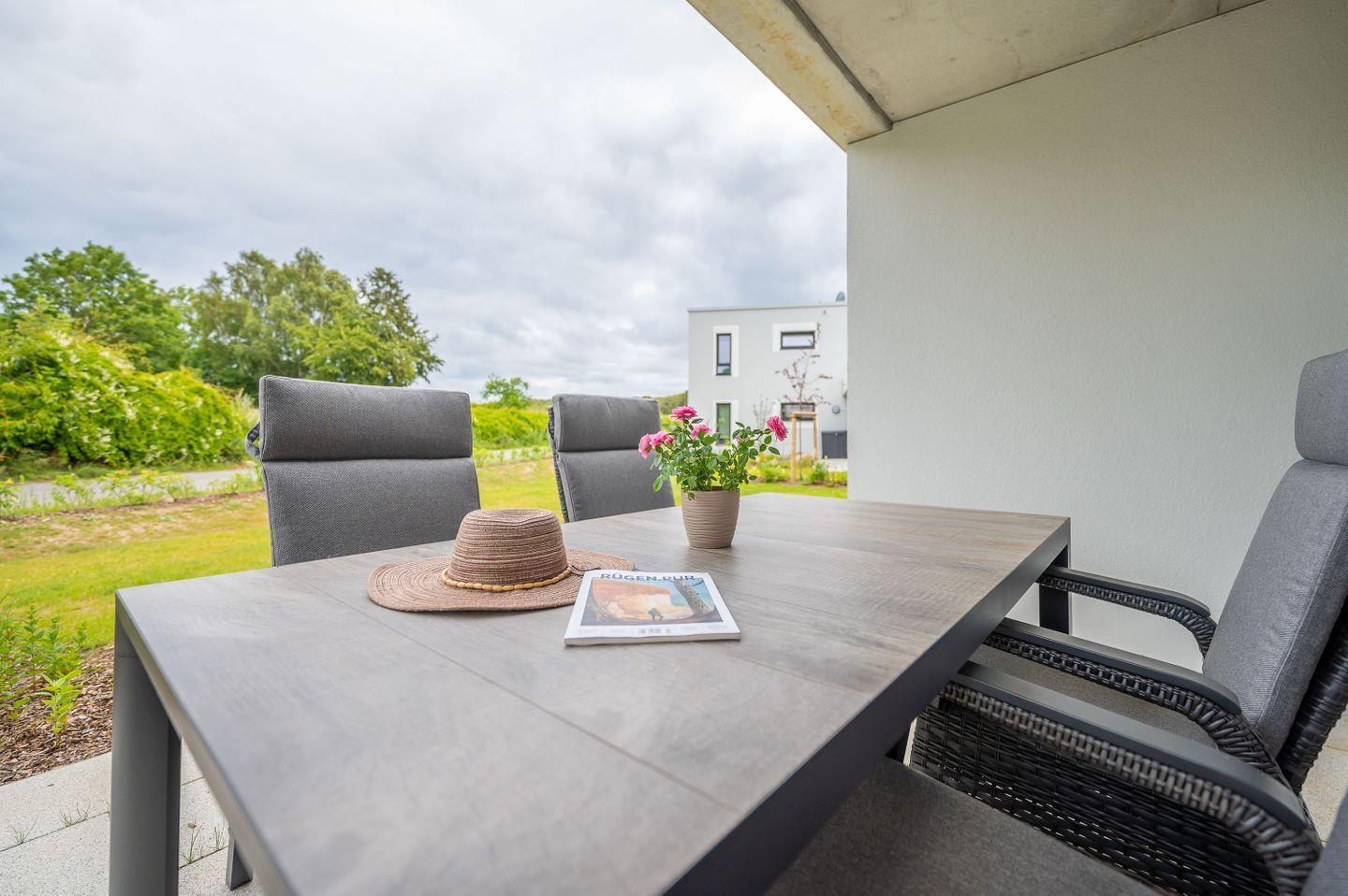 Sie erwartet ein modernes und lichtdurchflutetes 2-Raum-Ferienappartment mit einer Wohnfläche von ca. 58 qm zzgl. großzügiger und überdachter Sonnenterrasse. Das Appartement bietet Platz für 2 Personen. Von der ca. 20 qm großen Sonnenterrasse inkl. Grundstück werden Sie mit einem einzigartigen Blick auf das historische Schloss Ranzow (heute Privathotel) und den dazugehörigen Golfplatz sowie den wundervollen Nationalpark Jasmund verwöhnt. Hunde sind nicht erlaubt.