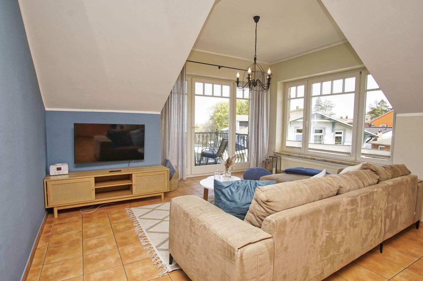 WOHNEN // Wohnraum mit Essbereich, Sitzgarnitur mit bequemer Couch, Flachbild-TV, Balkon ++