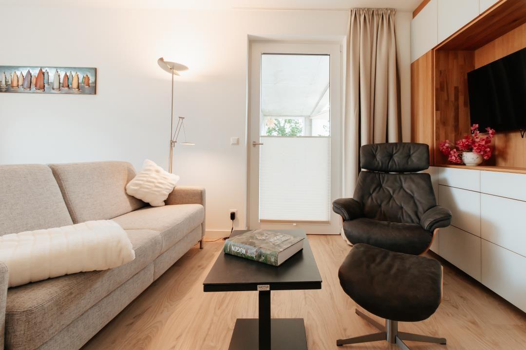 Willkommen auf Rügen! Das stilvolle Appartement Kranich im Bauhausstil liegt ruhig in Lohme, nur 200?m vom Golfplatz Schloss Ranzow entfernt. Genieße modernes Wohnen mit Terrasse, Garten und hochwertiger Ausstattung – ideal für Paare, kleine Familien und deinen Hund!