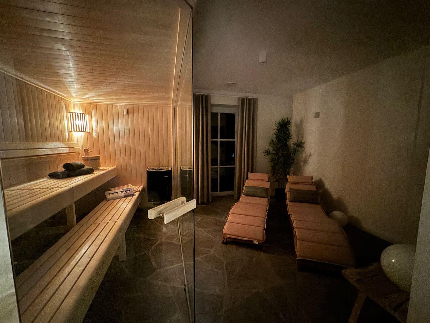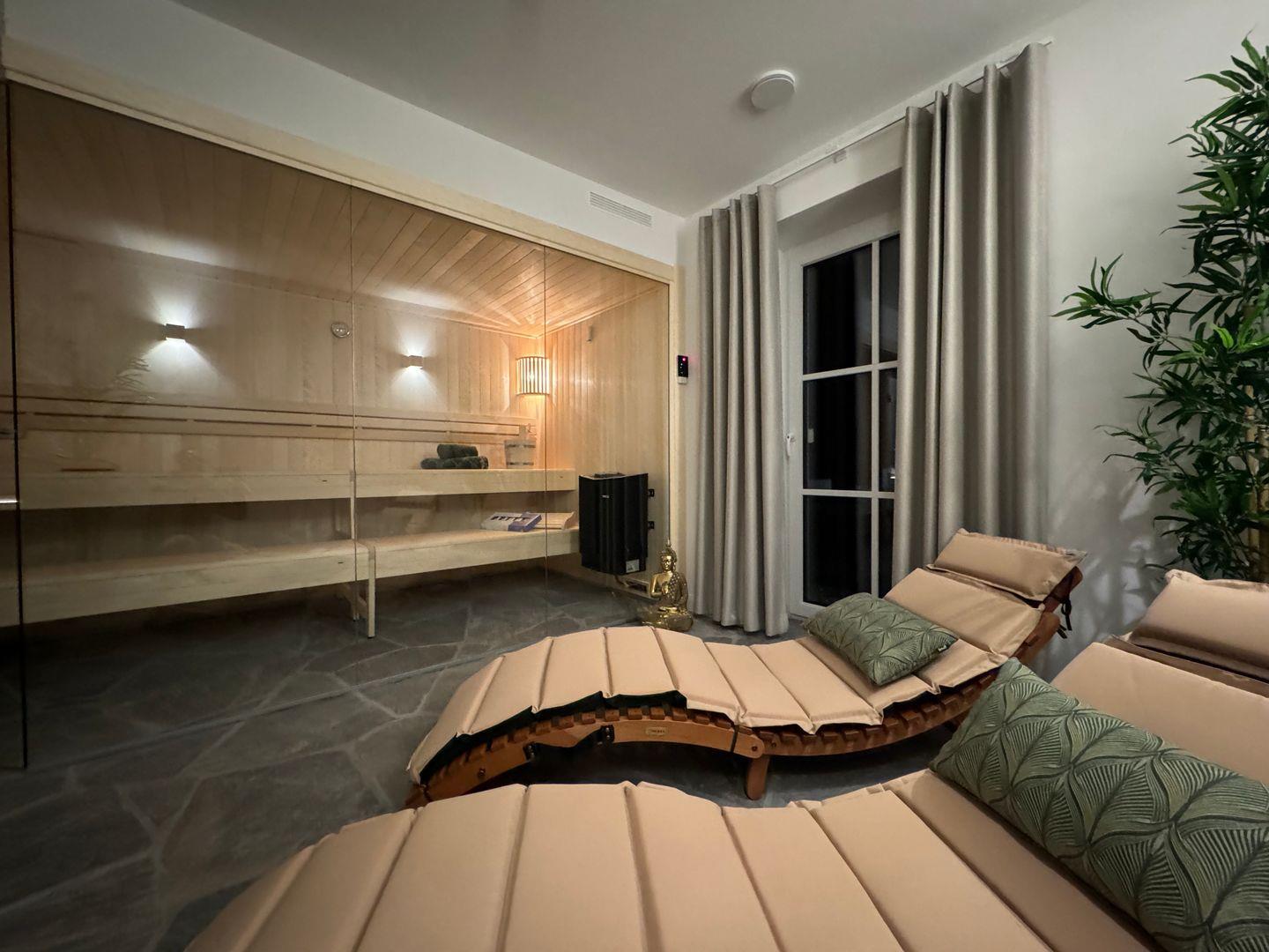 Das Masterbad im Obergeschoss begeistert mit stilvoller Wellnessdusche und hochwertiger Ausstattung. Ein weiteres Highlight ist der private Wellnessbereich im Souterrain mit Saunasuite, Regenwalddusche, Ruhebereich und Außendusche – perfekt für entspannte Stunden zu zweit oder nach sportlichen Aktivitäten.