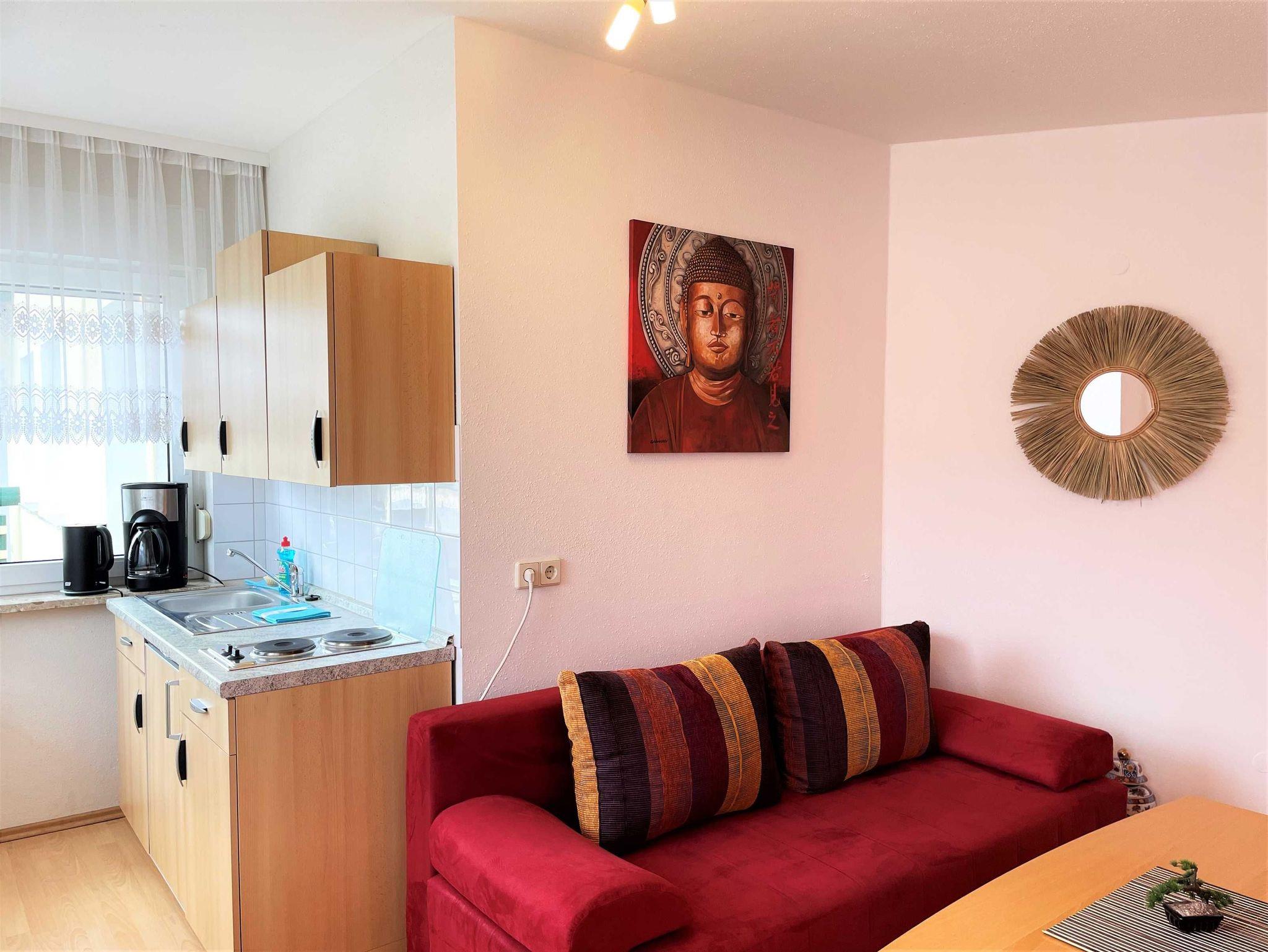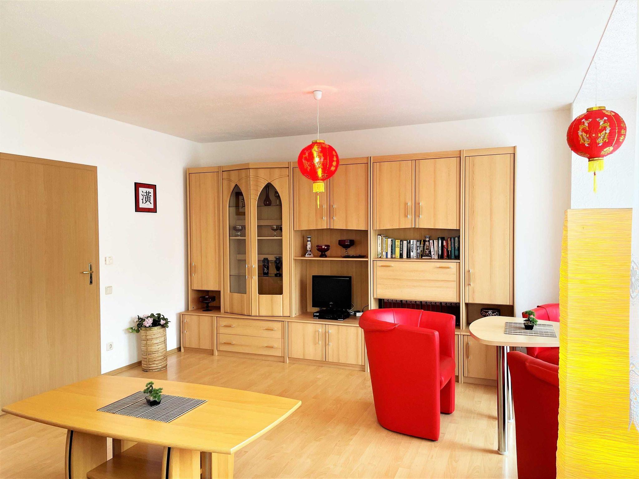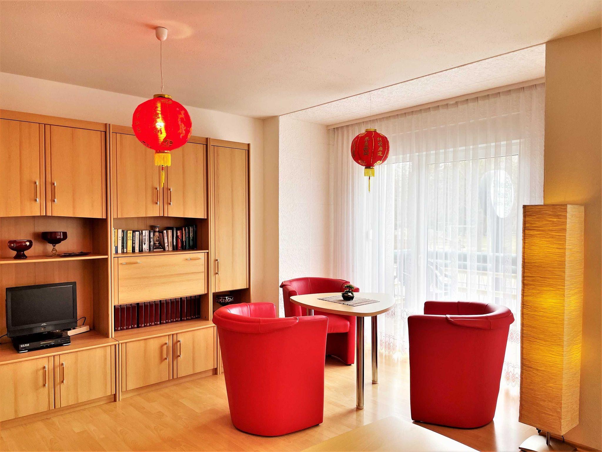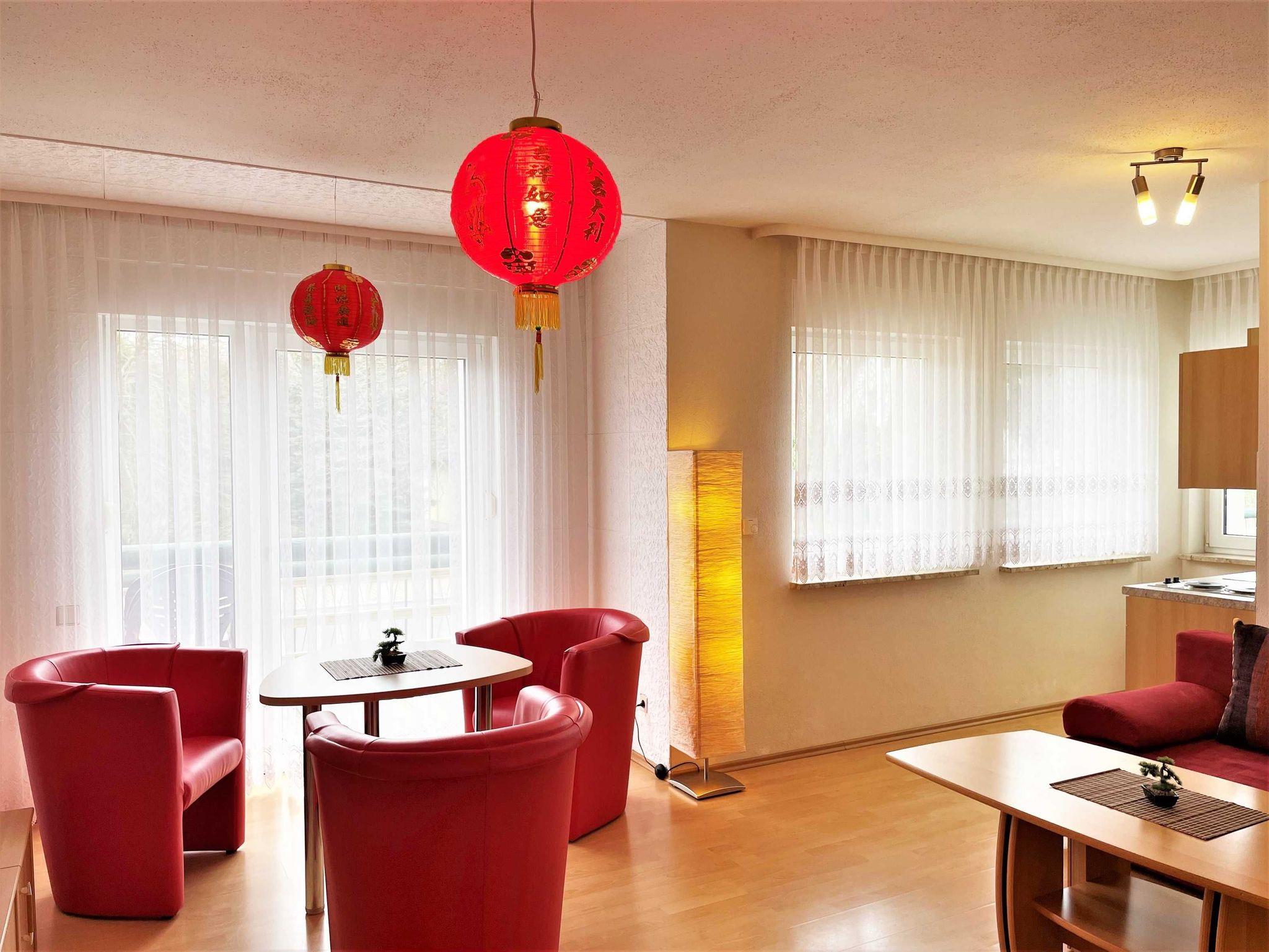 Die Wohnungen sind alle mit Wohnzimmer, Küche, Bad, Schlafzimmer und berrierefreien Bad, sowie einem Balkon ausgestattet. Auf Nachfrage können Kinderhochstuhl und Babybett zur Verfügung gestellt werden. Im Außenbereich lädt ein Grillplatz zum gemütlichen Ausklang des Tages ein. In direkter Nähe zum Haus können SIe kostenfrei parken.