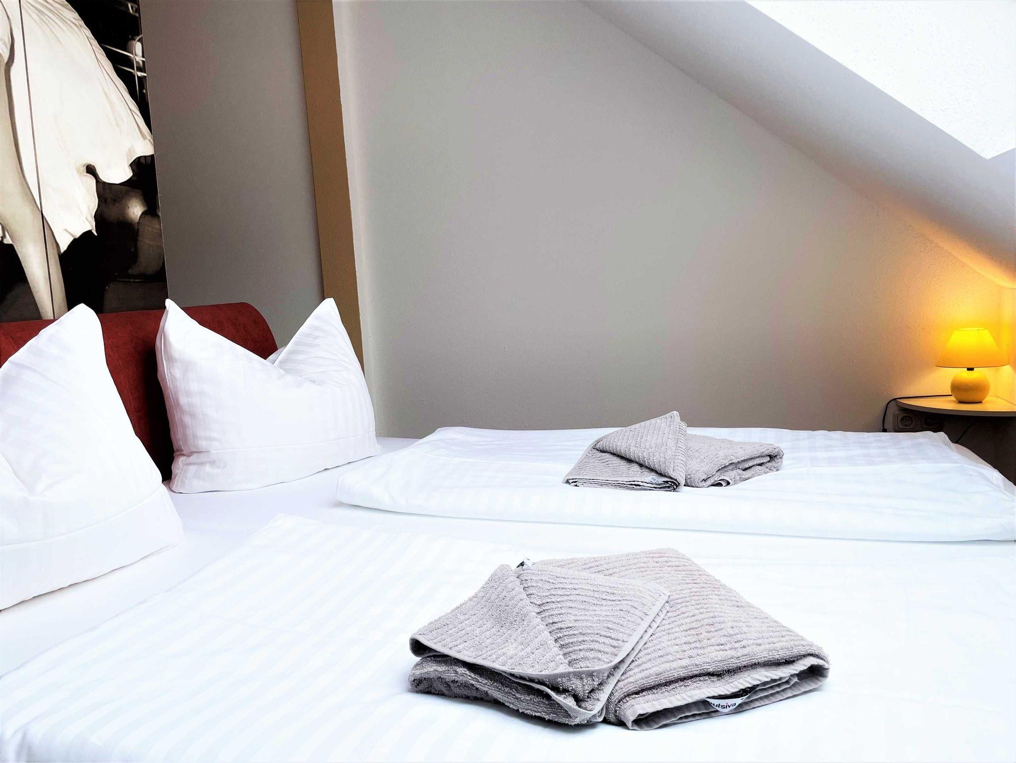 Die Wohnungen sind alle mit Wohnzimmer, Küche, Bad, Schlafzimmer und berrierefreien Bad, sowie einem Balkon ausgestattet. Auf Nachfrage können Kinderhochstuhl und Babybett zur Verfügung gestellt werden. Im Außenbereich lädt ein Grillplatz zum gemütlichen Ausklang des Tages ein. In direkter Nähe zum Haus können SIe kostenfrei parken.