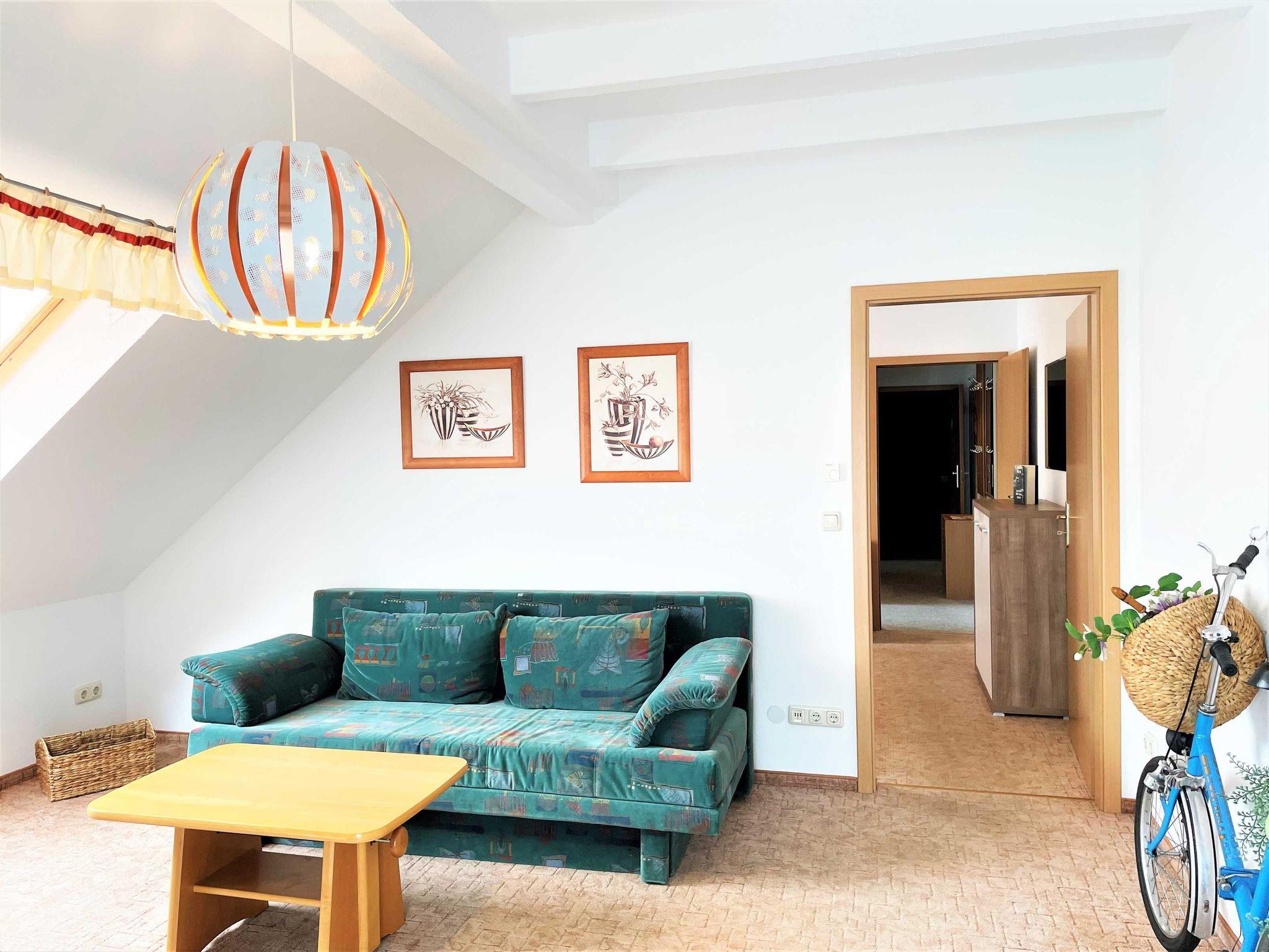 Die gemütlichen 52 qm großen 2-Zimmer-Nichtraucherferienwohnung befindet sich im Obergeschoss des Silberseehauses. Der helle Wohnbereich lädt mit einem Schlafsofa zum Entspannen ein und bietet Platz für bis zu zwei weitere Gäste.
