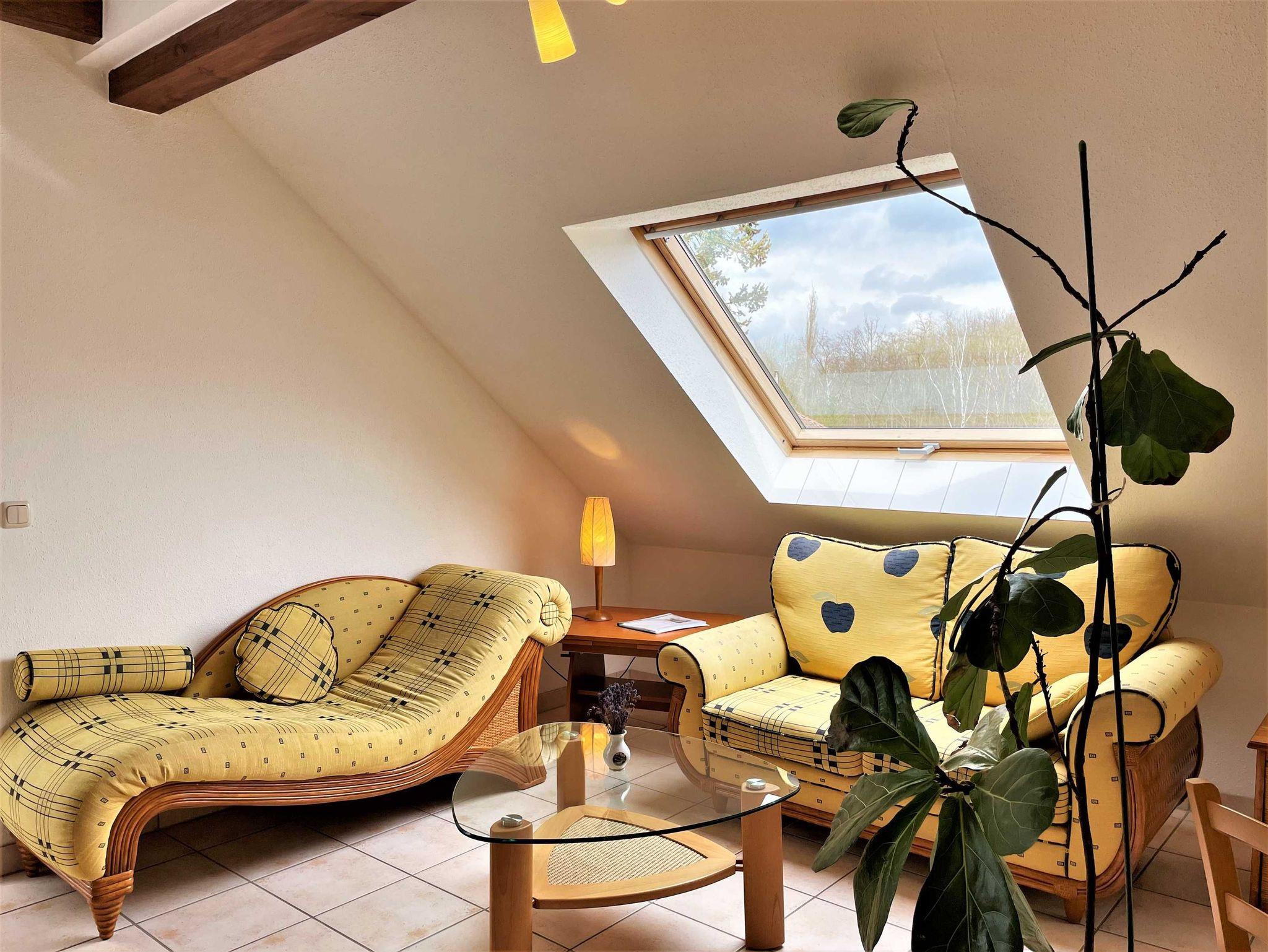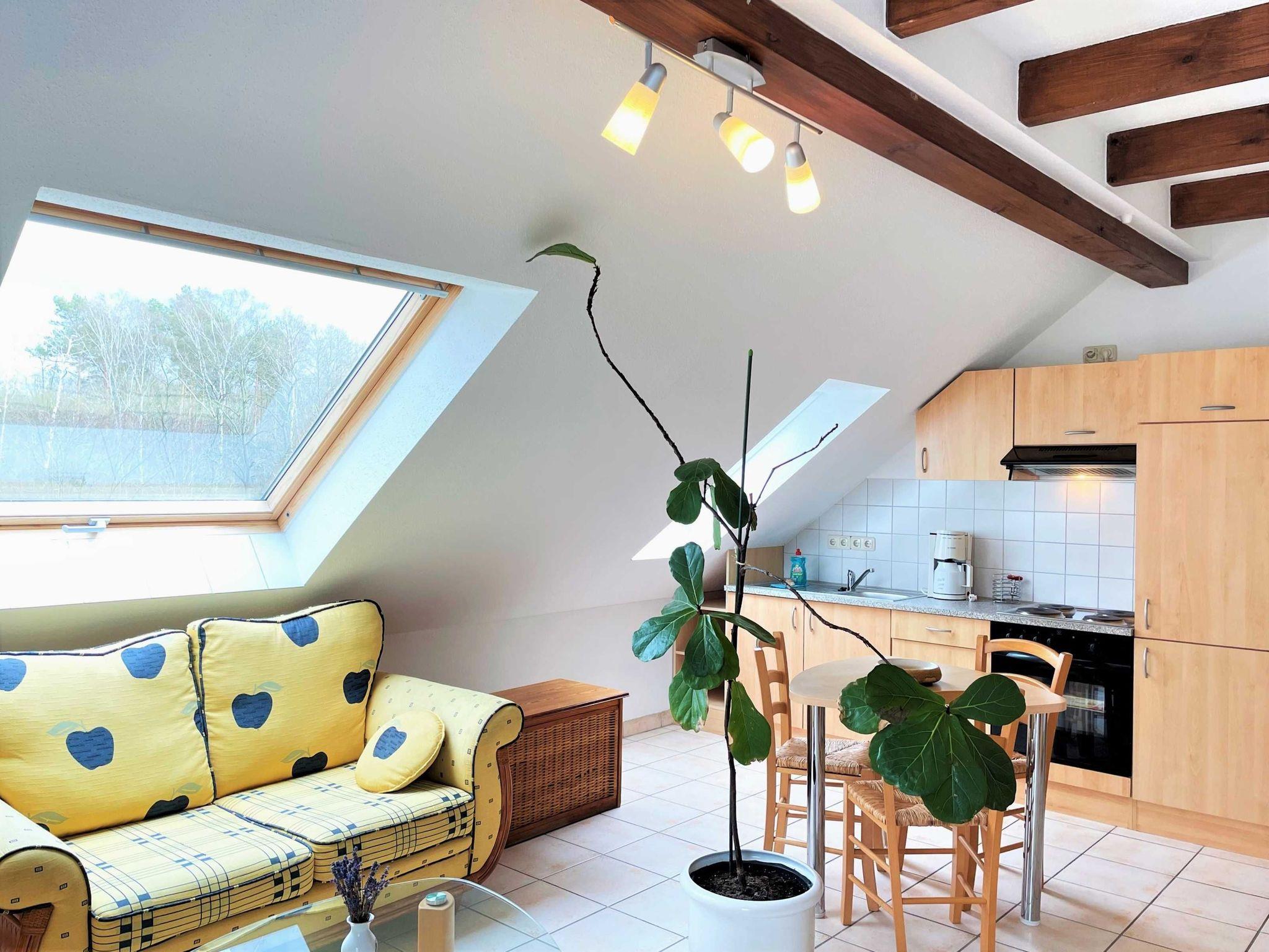 Die 54 qm große 2 Zimmer Nichtraucherferienwohnung befindet sich im Obergeschoß des Silberseehauses, sie ist modern eingerichtet und bietet Platz für bis zu 3 Personen. Das Schlafzimmer ist mit einem Doppel.- und einem Einzelbett ausgestattet. Weiterhin finden Sie in der offenen Küche einen Backofen und Kühlschrank zur Selbstversorgung. Bettwäsche und Handtücher gehören zum Service.