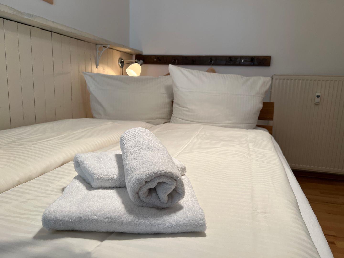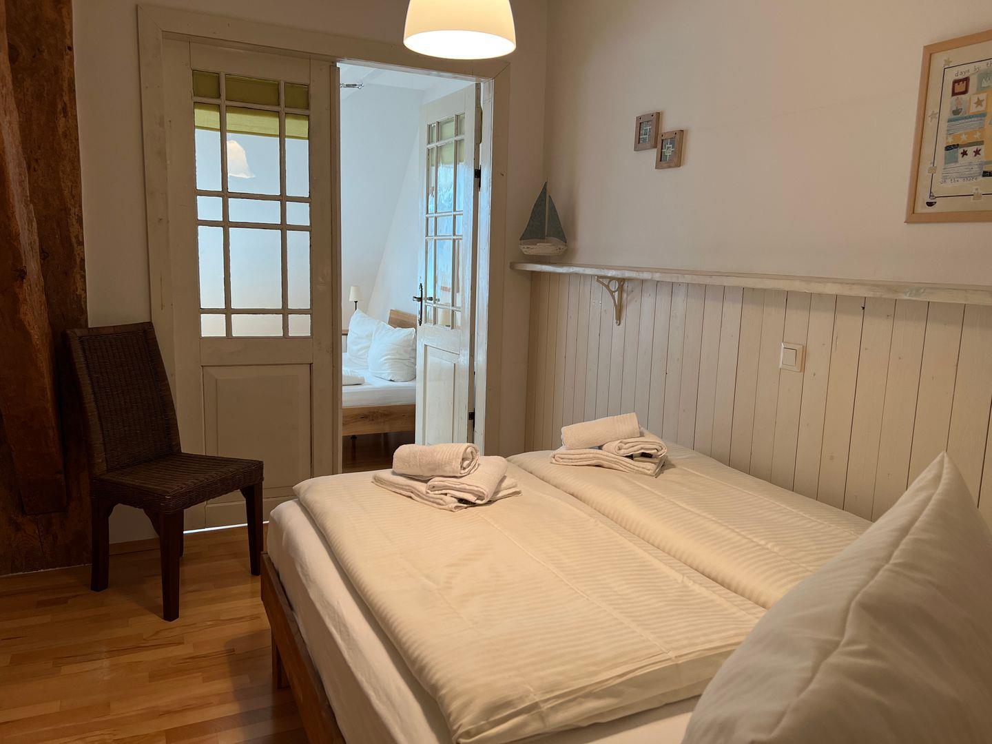 Die Milchkammer verfügt über drei Schlafzimmer im Obergeschoss. Zwei Schlafzimmer haben ein Doppelbett. Das dritte Schlafzimmer, die sogenannte "Butze", verfügt über ein 140x200 Bett, und ist angrenzend an eins der anderen beiden Schlafzimmer. Die Wohnung bietet zwei Badezimmer mit Dusche und WC. Ein Badezimmer befindet sich im EG, und eins im OG. Im Wohnbereich gibt es eine bequeme Couch, einen großen Smart TV, Internetradio und einen Esstisch für 6 Personen. Die Küchen ist mit allem ausgestattet, was man zum Kochen benötigt, einschließlich einer Filterkaffeemaschine, Senseo Kaffeemaschine, Wasserkocher, Toaster, Backofen und vielen praktischen Kochutensilien. Die Ferienwohnung verfügt über WLAN.
