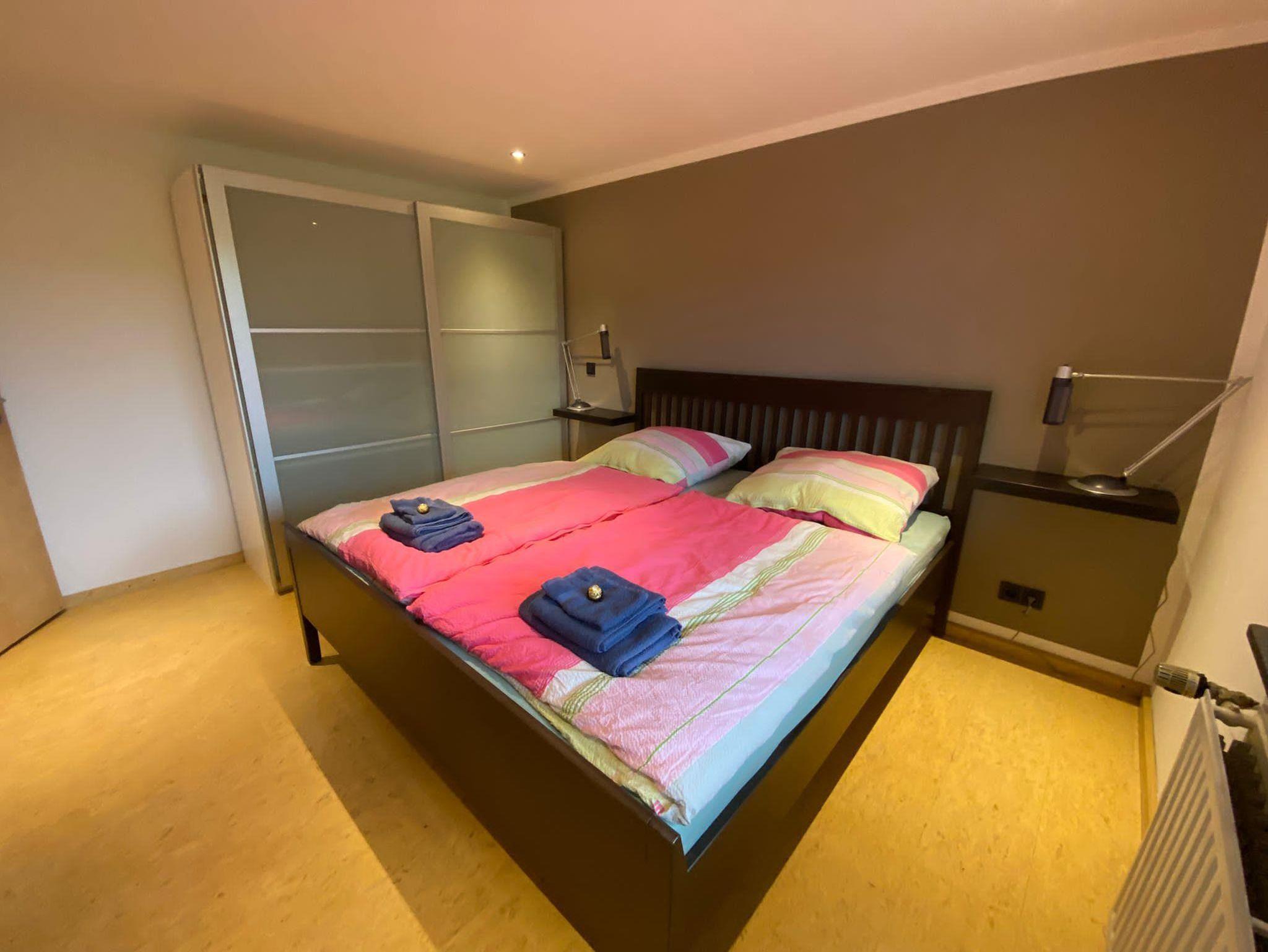 Die Wohnung liegt im Einliegerbereich und verfügt über 90 qm mit Doppelschlafzimmer, großem Wohn-Esszimmer mit Schlafcouch. Die Küche ist voll ausgestattet und verfügt über Herd, Backofen, Spülmaschine und diverse Elektrogeräte, und ausreichend Geschirr.Ebenfalls gibt es ein Bad mit Dusche und WC. Von der Küche aus kann man überdacht sitzen und gemütlich Garten und Draußen geniessen mit Grillecke. Carport für 2 Autos vorhanden. Ebenso kostenloses Wlan + Radio und TV.