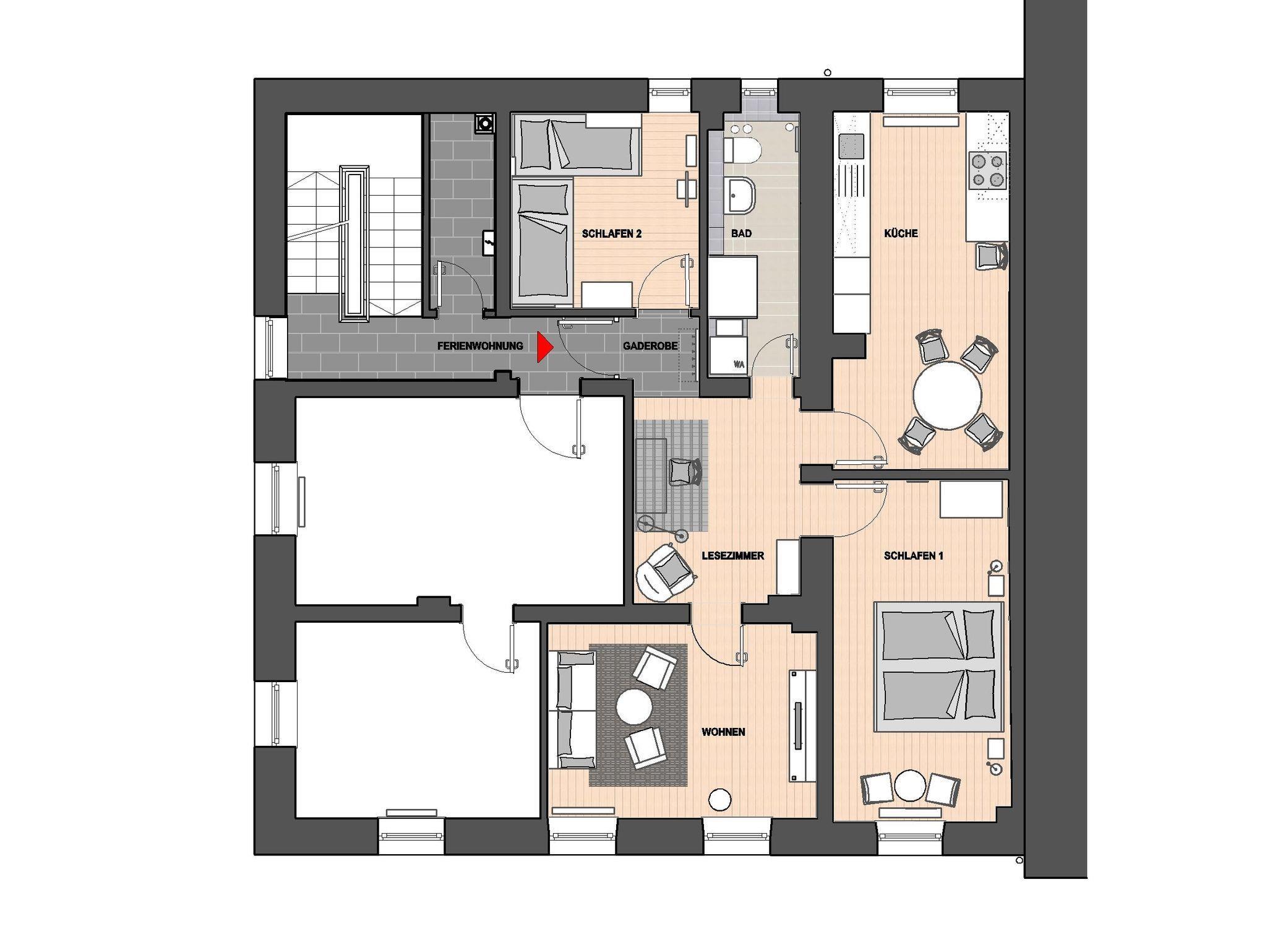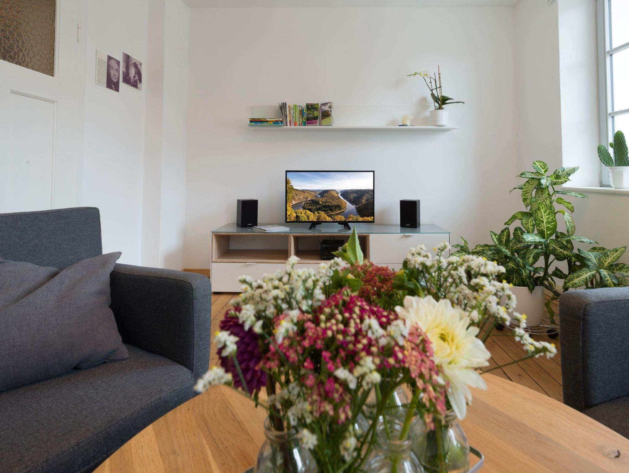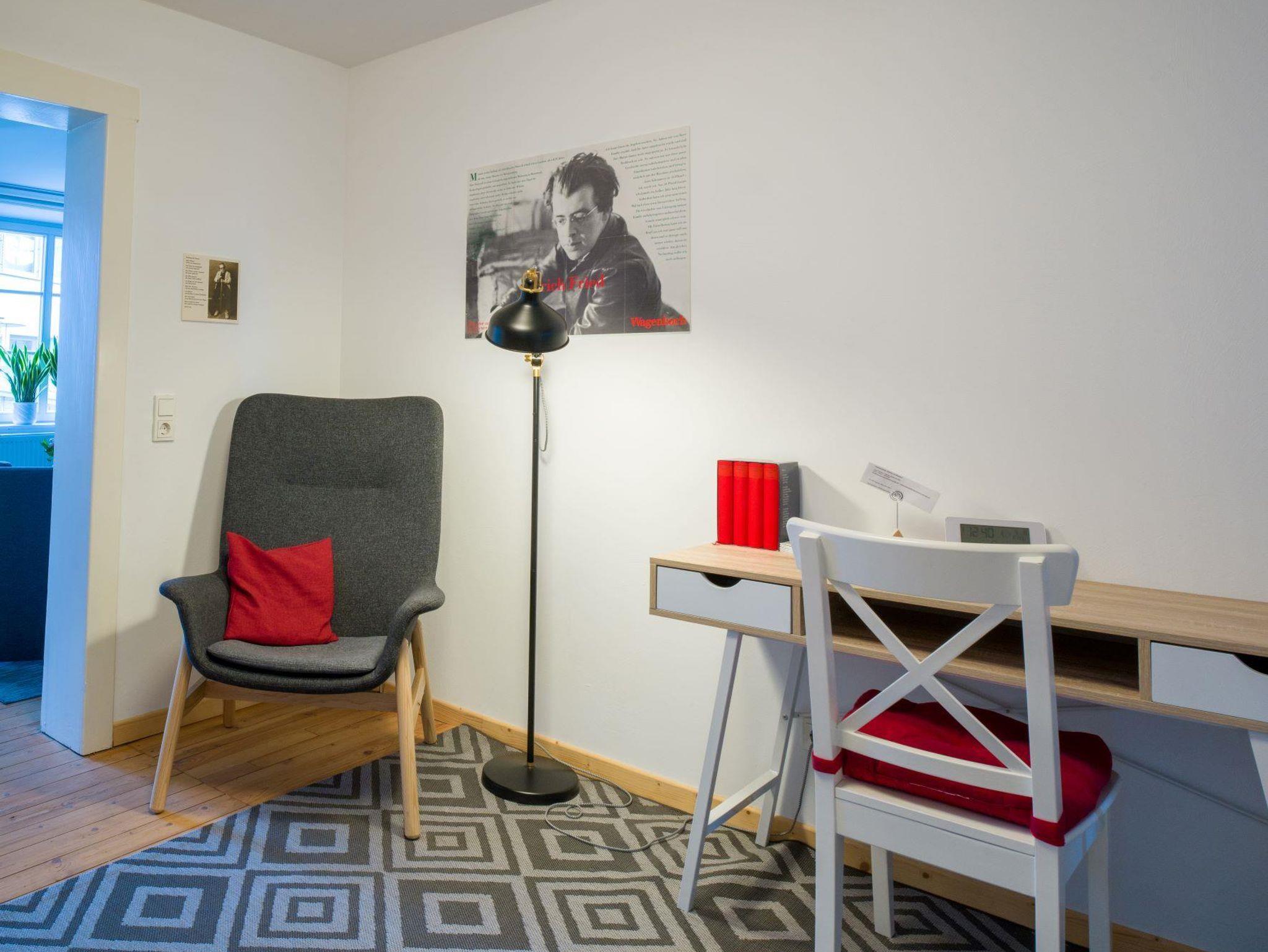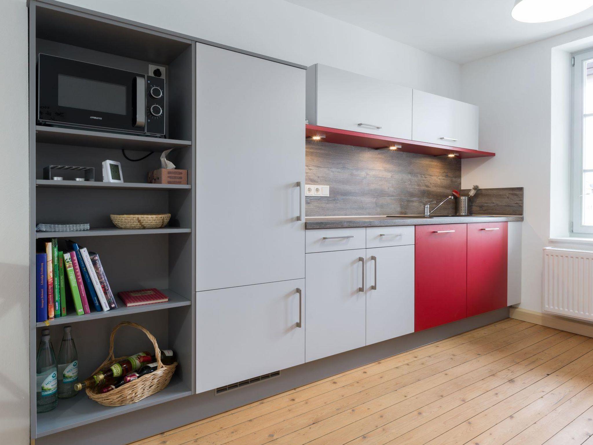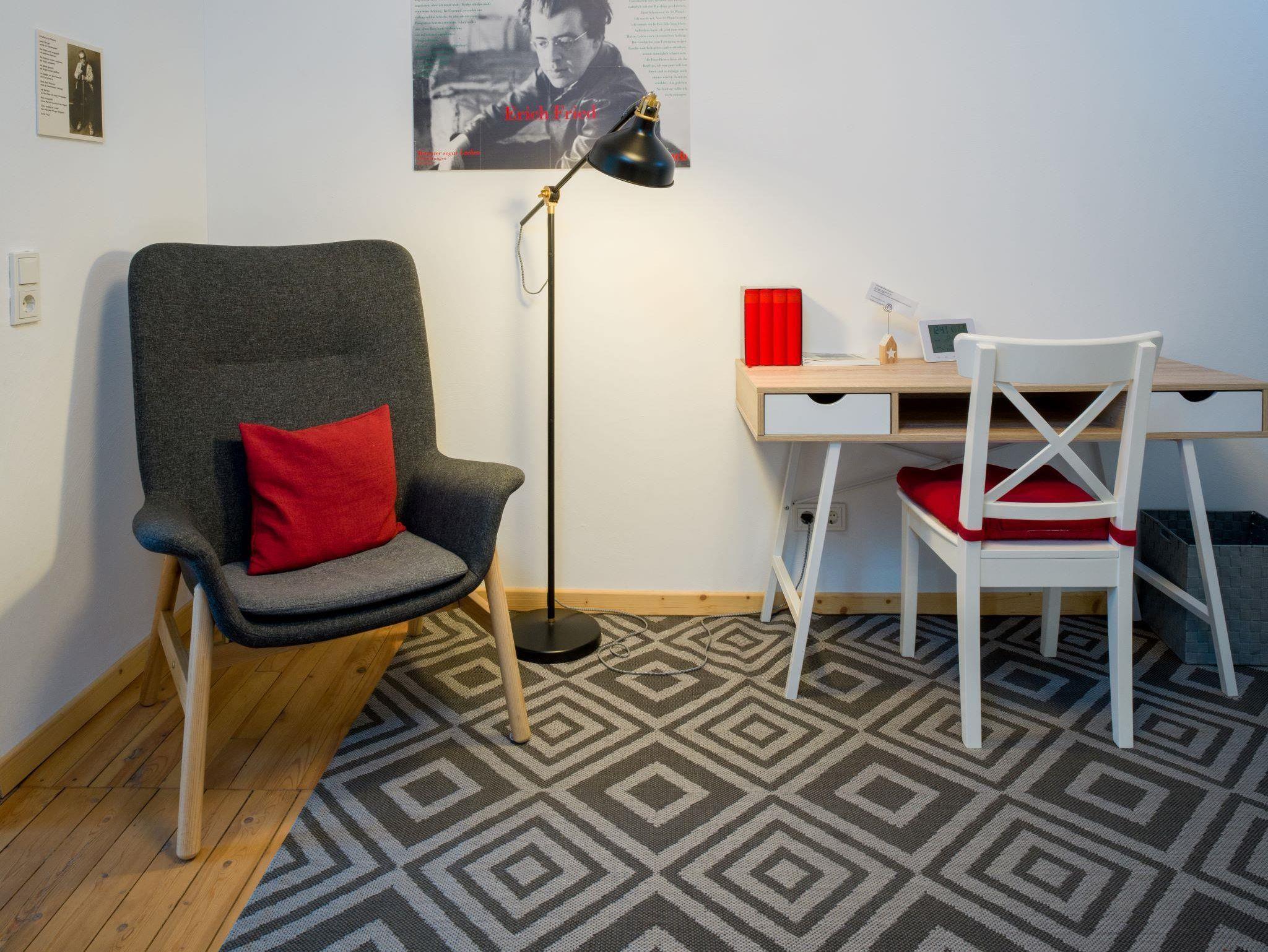 Neurenovierte helle und freundliche Wohnungen. Beide Wohnungen haben eine Einbauküche, Leseecke mit Schreibtisch und gemütlichem Sessel, Badezimmer mit Dusche/WC. WLAN, TV, Radio, großer Bücherschrank, Waschmaschine mit Trockner. Getränkekorb als Minibar.Wohnen mit Büchern hat eine Schlafzimmer mit Doppelbett und ein Schlafzimmer mit zwei Einzelbetten. Darüber hinaus existiert auch im Wohnzimmer eine Bettcouch, die bei Bedarf auch genutzt werden kann. Im Bücherloft gibt es ein doppeltes Schlafzimmer und zwei Bettcouchen im Wohnzimmer. Ein Babybett stellen wir auf Anfrage.