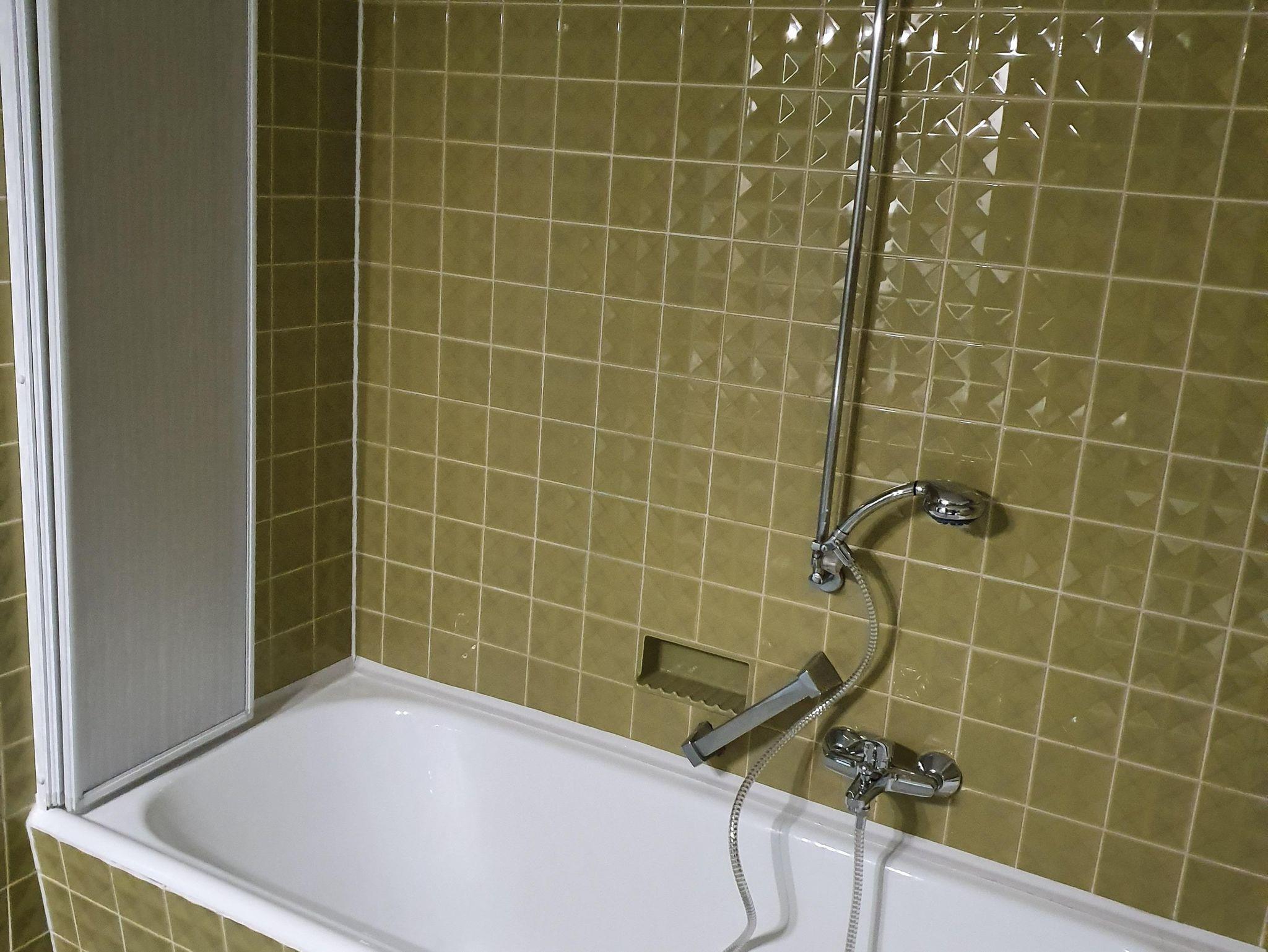 Das Badezimmer verfügt über eine Badewanne, Waschbecken und einer Toilette. Flur mit Klimagerät und Garderobe. Kleiner Balkon m Sitzmöglichkeiten. Kellerraum zum Abstellen von Fahrrädern usw. (incl. Steckdose)