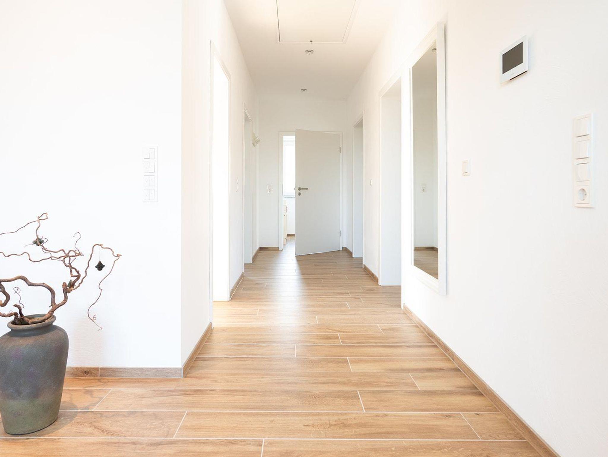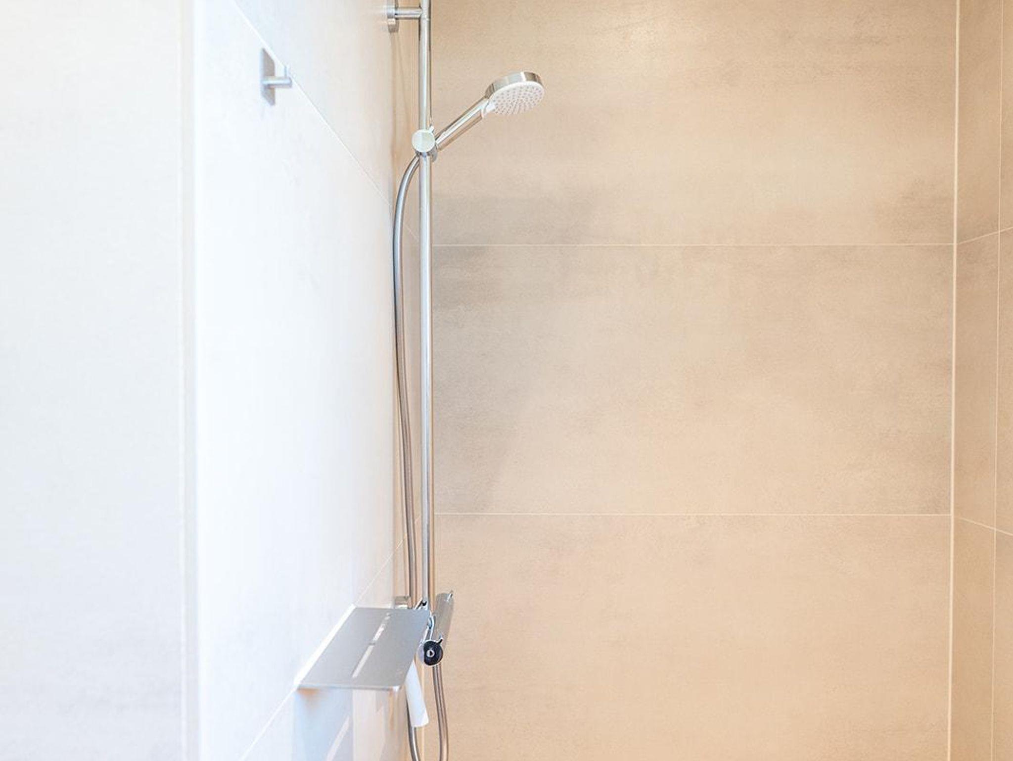 Außerdem befindet sich in der Wohnung 1 geräumiges Bad mit bodengleicher Dusche, Waschbecken und WC.