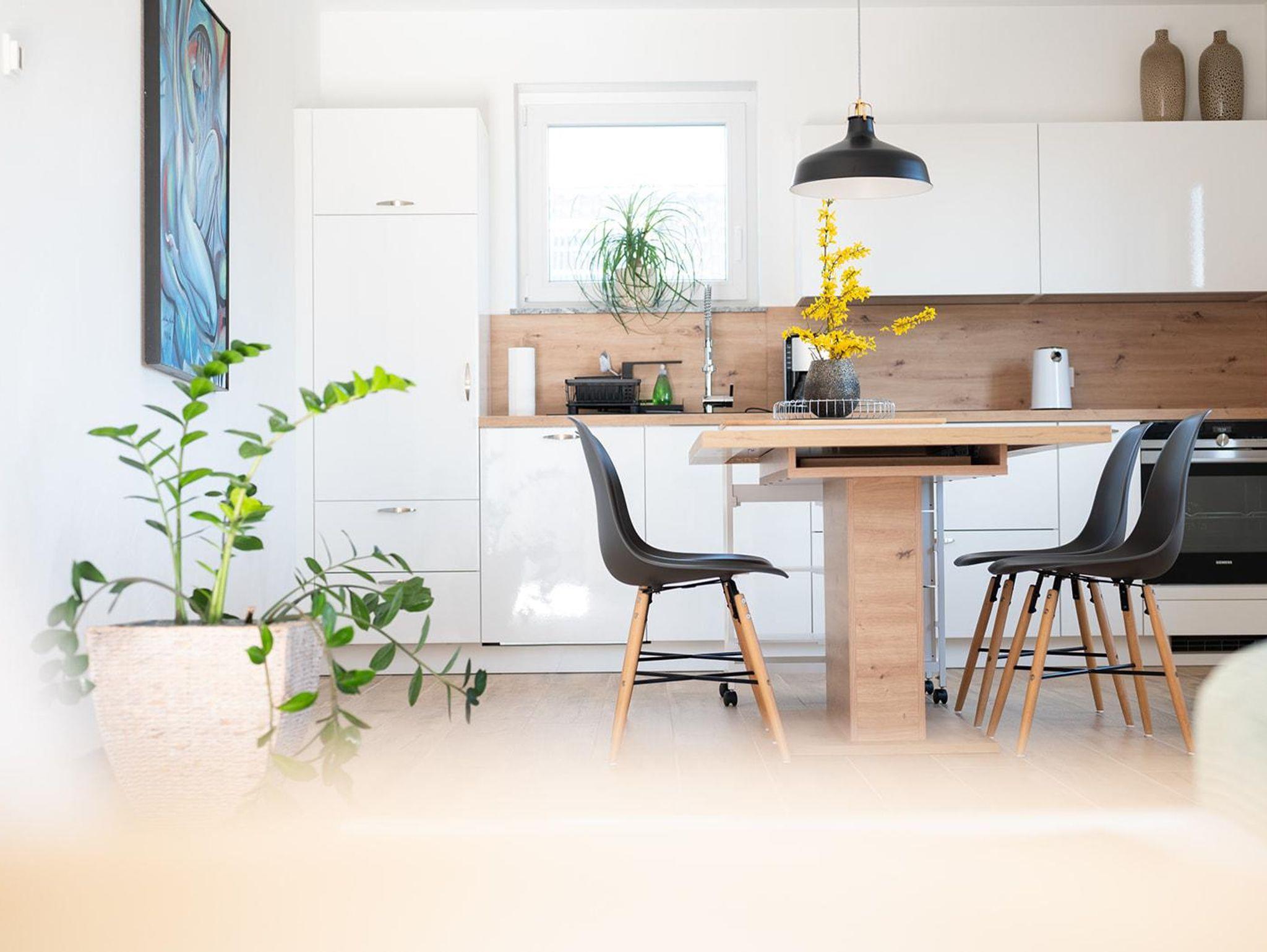 Die moderne Wohnung ist mit allen notwendigen Annehmlichkeiten ausgestattet, einschließlich einer offenen Wohnküche, einem hellem Wohn/Essbereich mit großem Eckschlafsofa über diesen gelangen Sie auf die sonnige, 50 m² begehbare Dachterasse, die mit bequemen Gartenmöbeln ausgestattet ist.