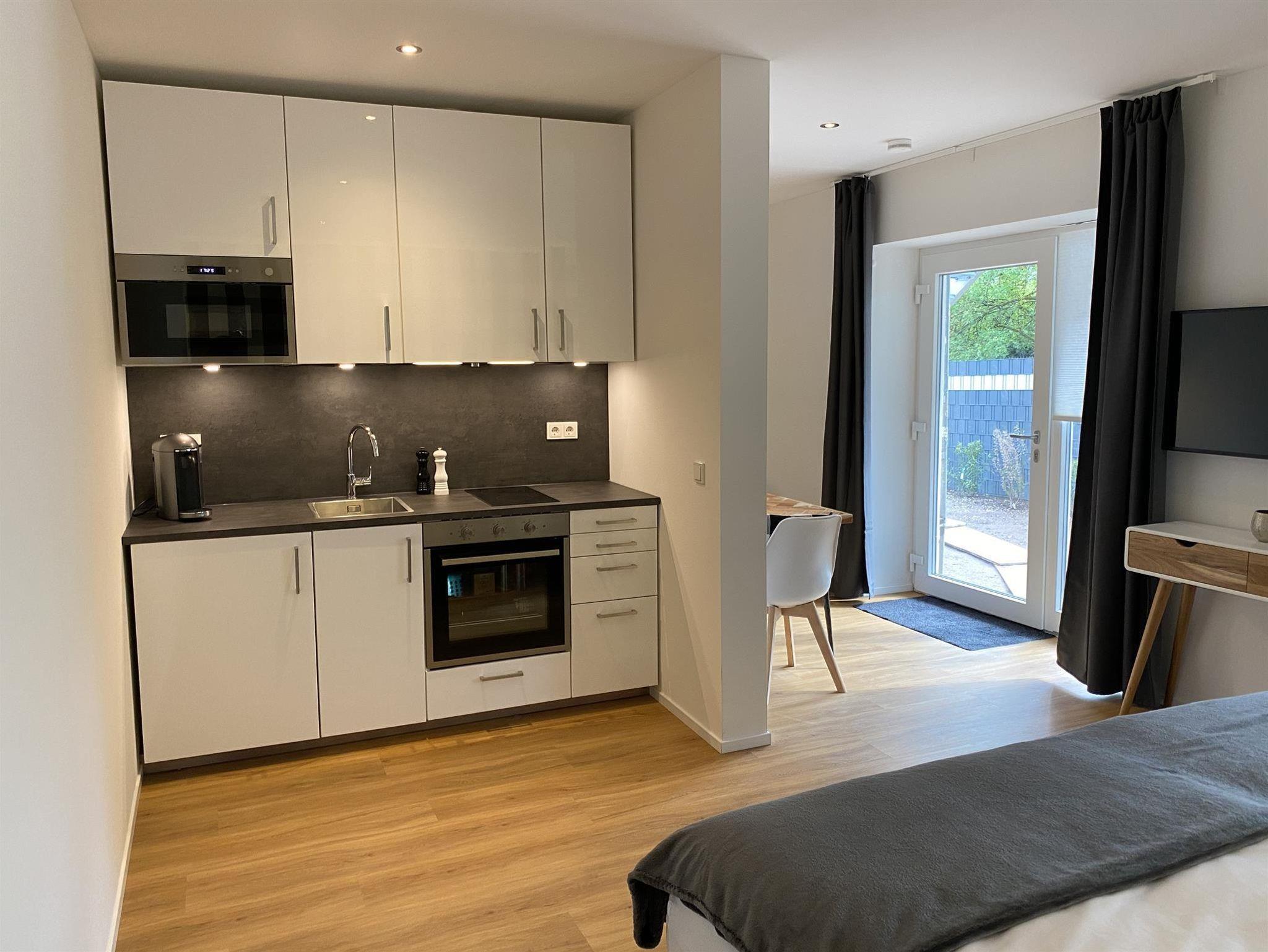 Dieses 45 m² große Studio in einem historischen Gebäude bietet Platz für 2 Personen. Hochwertig möbliert und mit Fußbodenheizung, Sitzgruppe, Smart/Sat-TV sowie einem Doppelbett (auch als Einzelbetten nutzbar) ausgestattet. Die Kochnische verfügt über Backofen, Cerankochfeld, Mikrowelle & Kaffeemaschine. Ein Bad mit Dusche, separates WC sowie eine eigene Terrasse sorgen für Komfort. WLAN, Parkplatz & Wellnessgarten mit Sauna & Whirlpool kostenlos nutzbar.