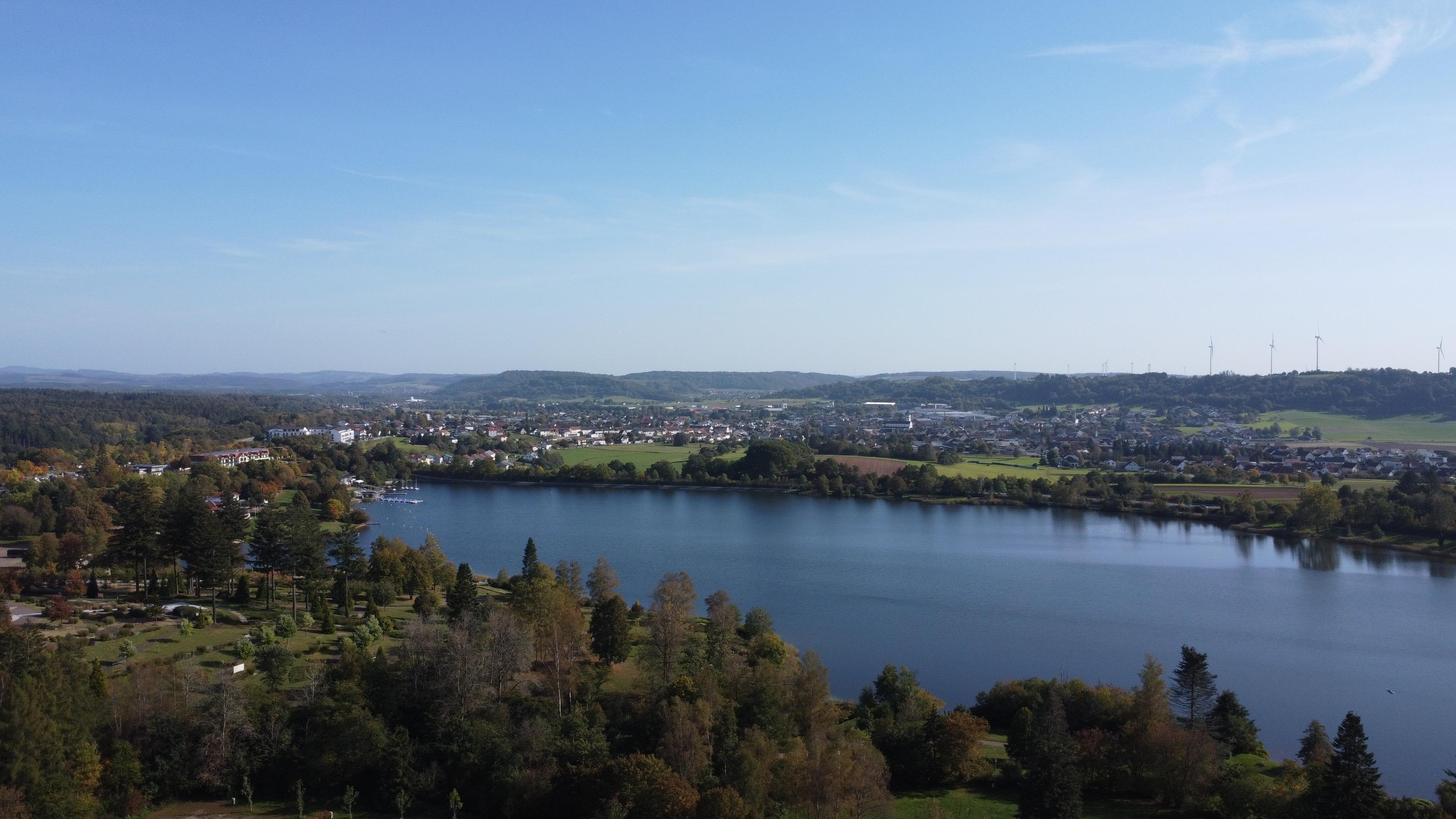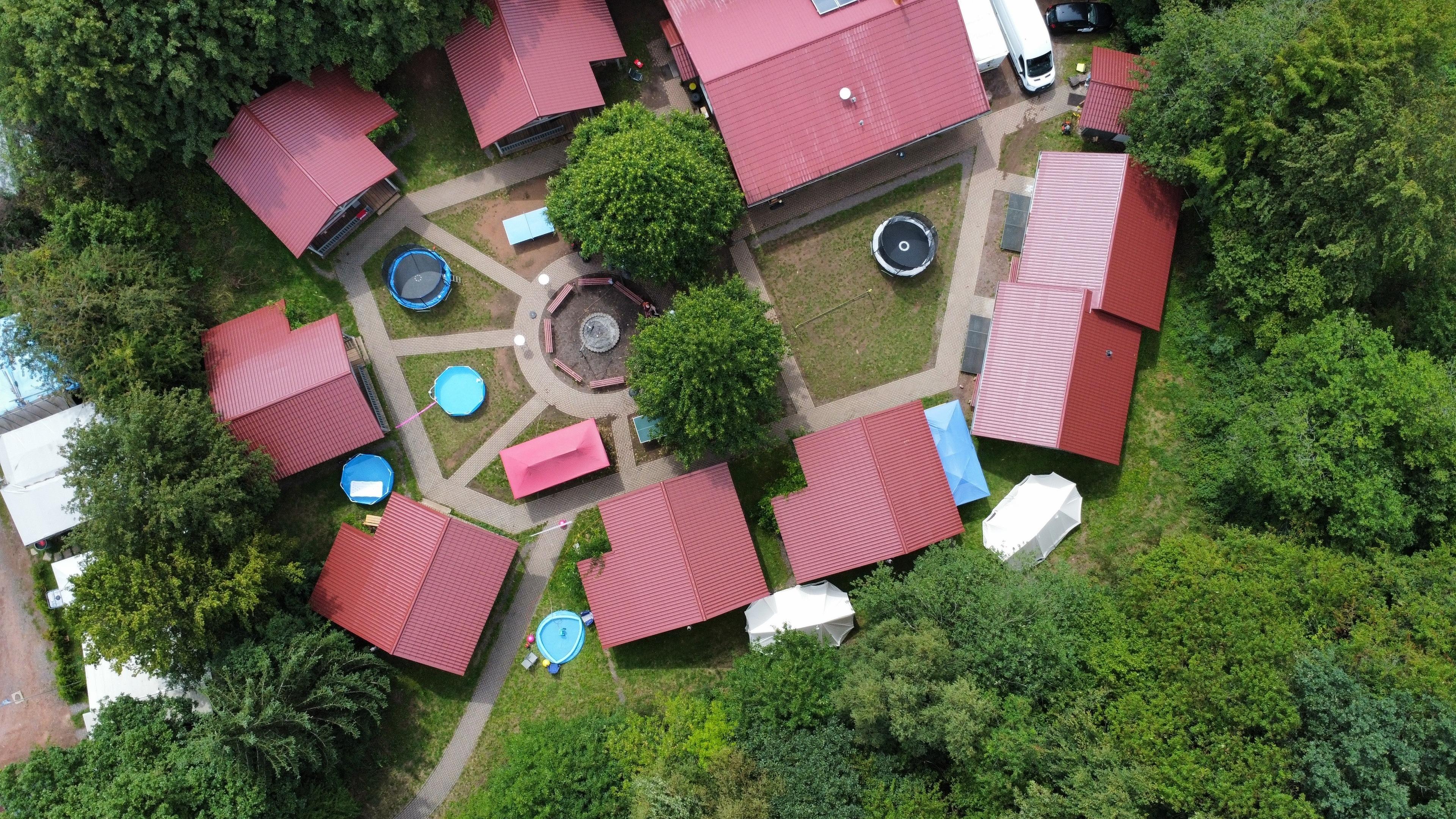 Mitten im Hochwald gelegen, umgeben von vielen prämierten Wanderwegen, findest Du das Ökodorf Losheim am See. Unweit des Stausees sind die Blockhütten wie ein kleines Dorf aufgebaut.